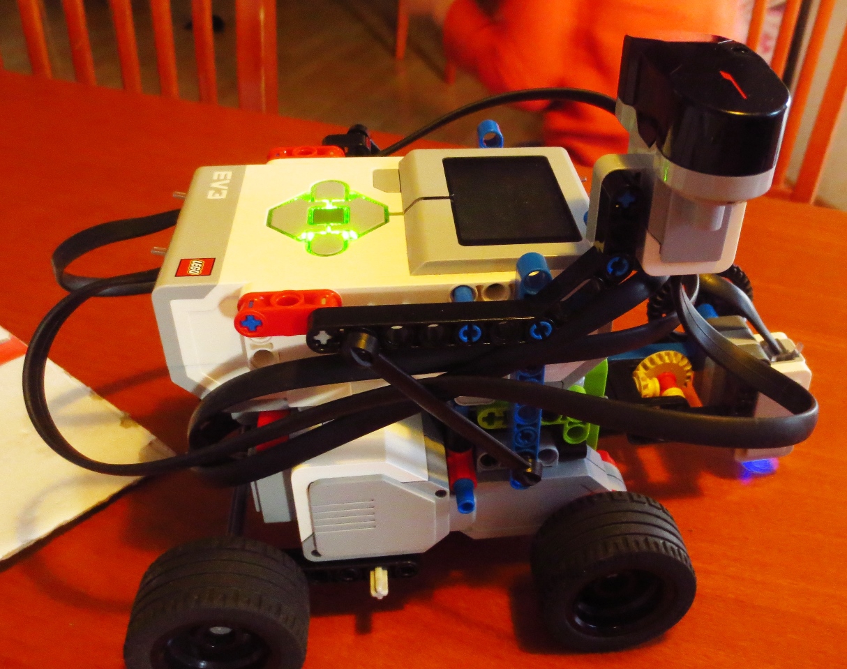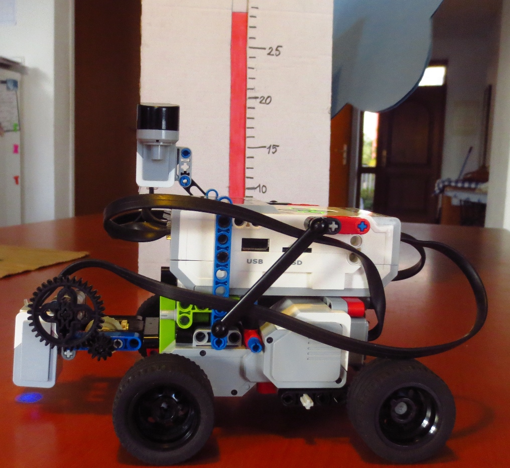 Robot používa na čítanie teploty svetelný senzor a otáčky kolies. Ak nájde na teplomeri inú farbu ako červenú vie, že to je aktuálna teplota na teplomeri. Potom preráta počet stupňov, ktoré prešli kolesá robota na stupne teploty (1 stupeň teploty = 27 stupňov otočenia kolesa/motora). Podobne meria oblačnosť. Ak je svetelnosť na svetelnom senzore vyššia ako 40 vie, že je jesný deň a svieti slnko, preto nemusí merať oblaky. Ak je odmeraná svetelnosť menej ako 40 vie, že je šero alebo prítmie a vtedy infrasenzorom odmeria vzdialenosť k oblakom a vyráta ich výšku nad robotom. Údaje sme uložili do troch súborov a vytvorili graf merania.