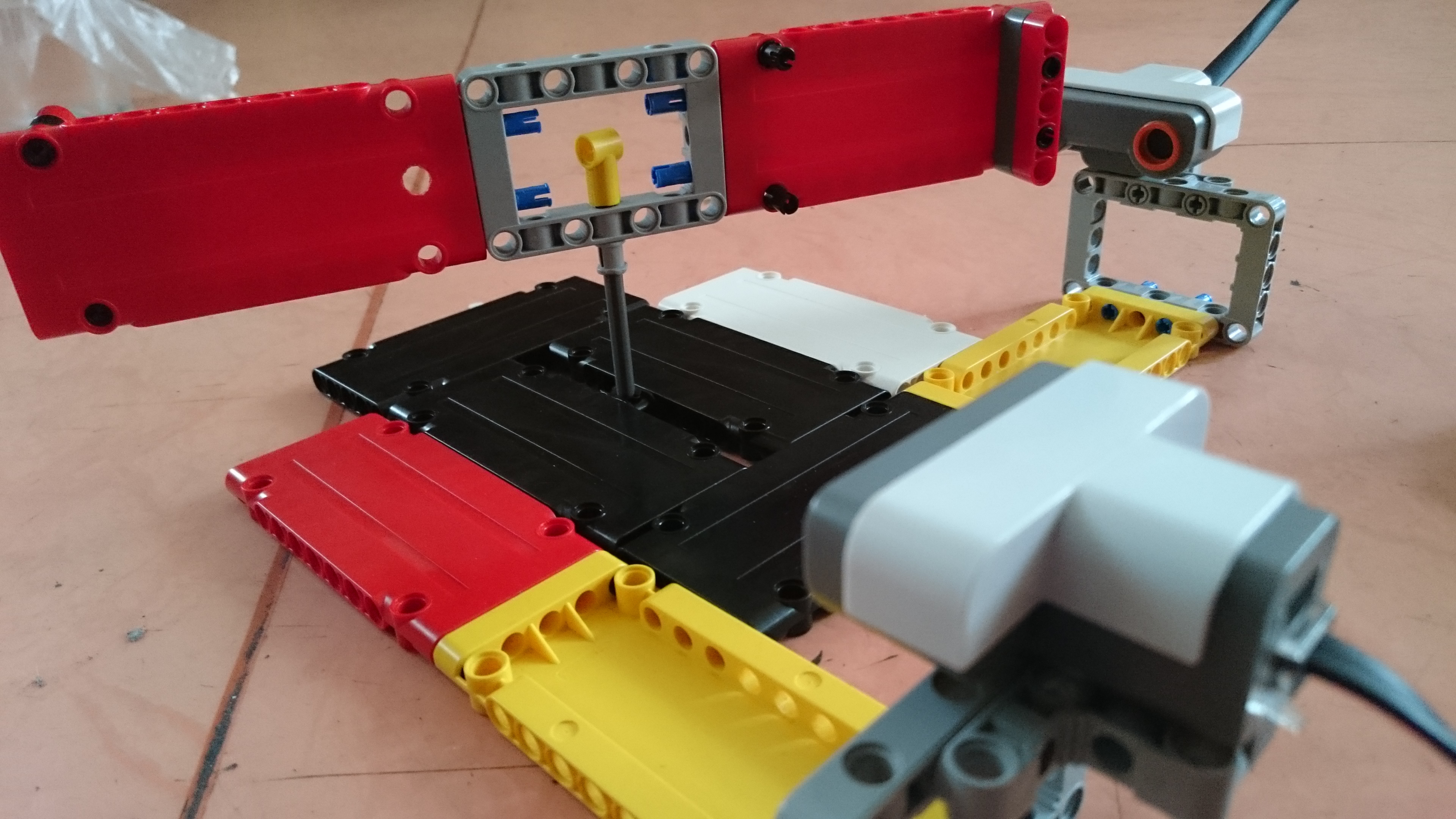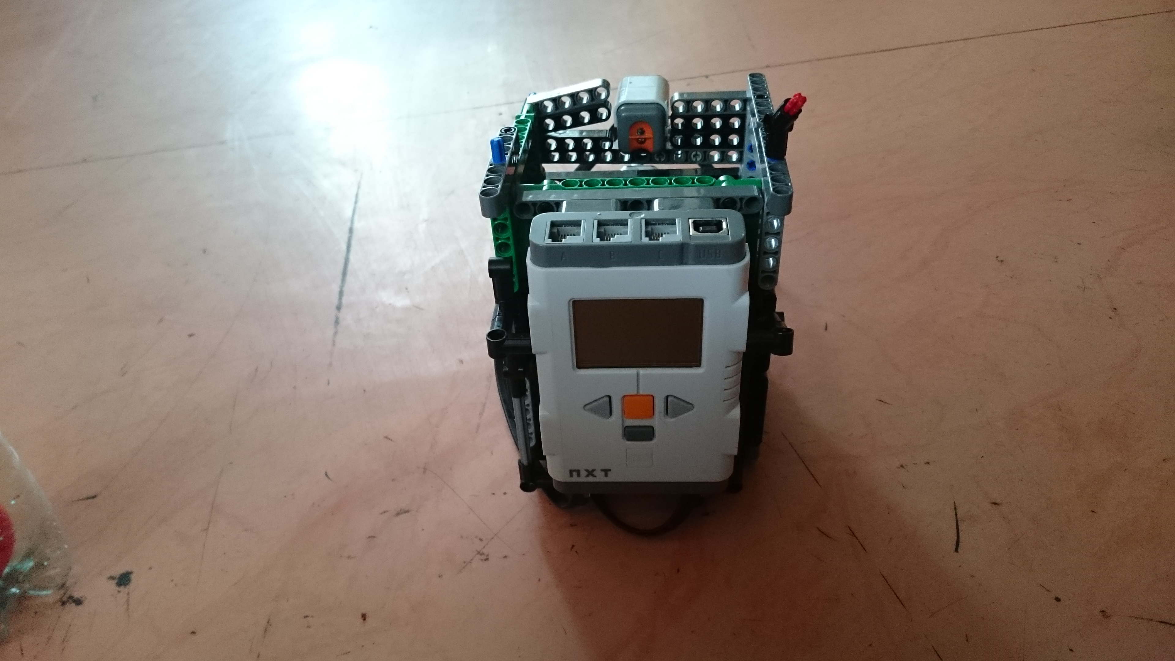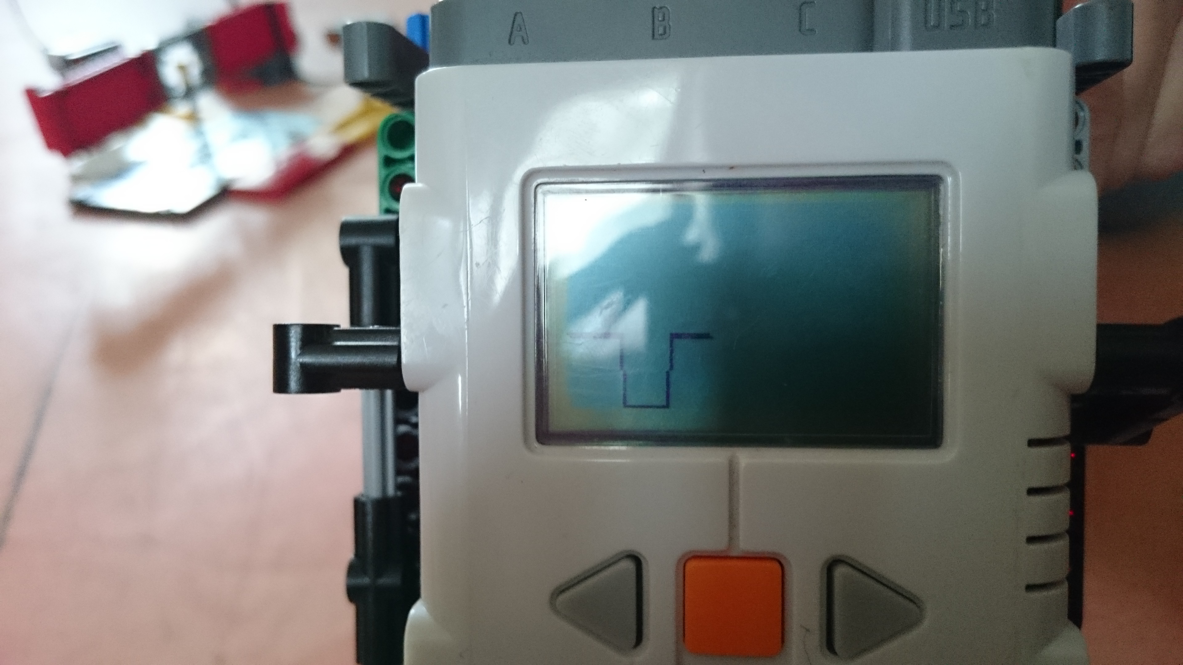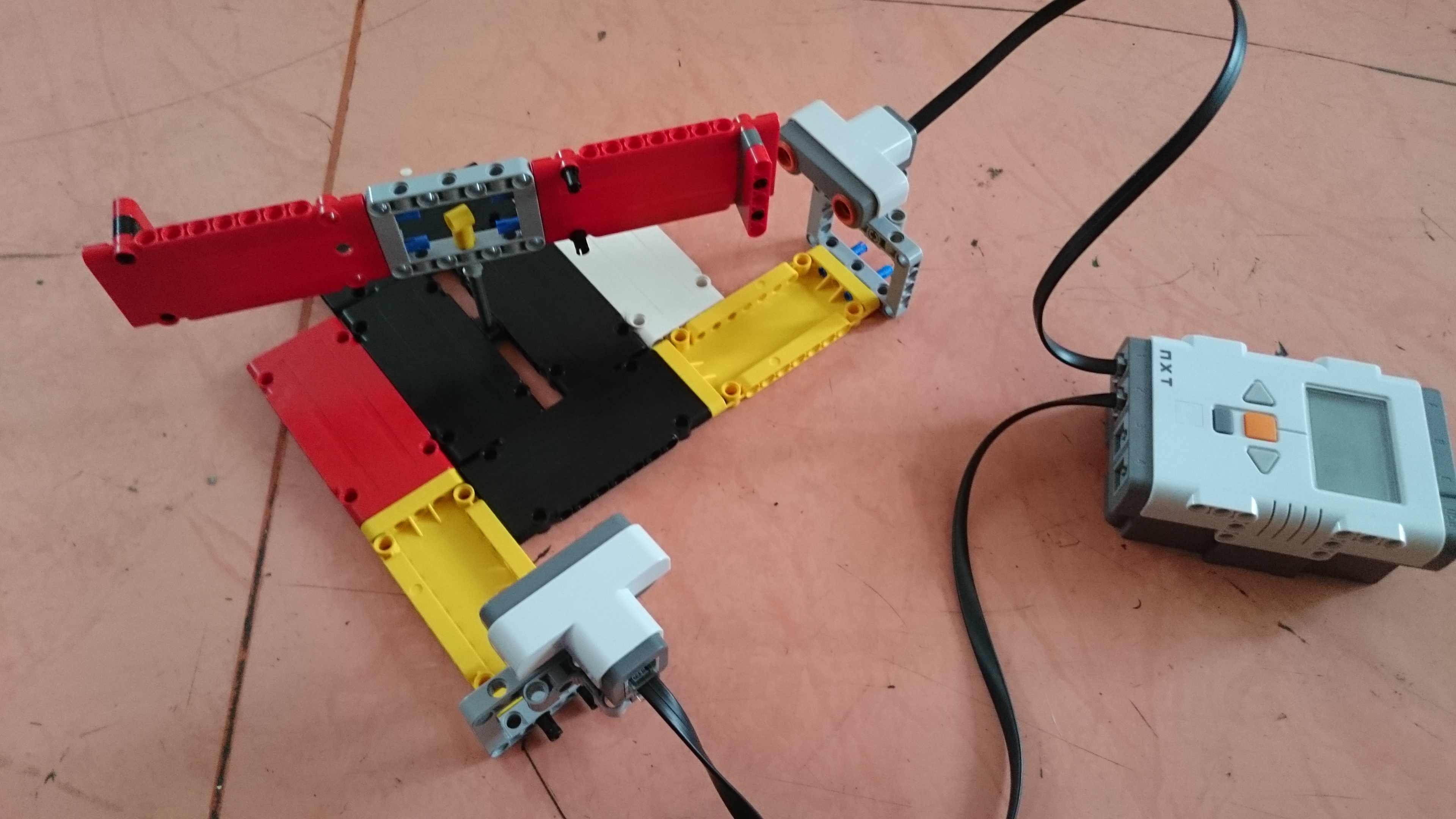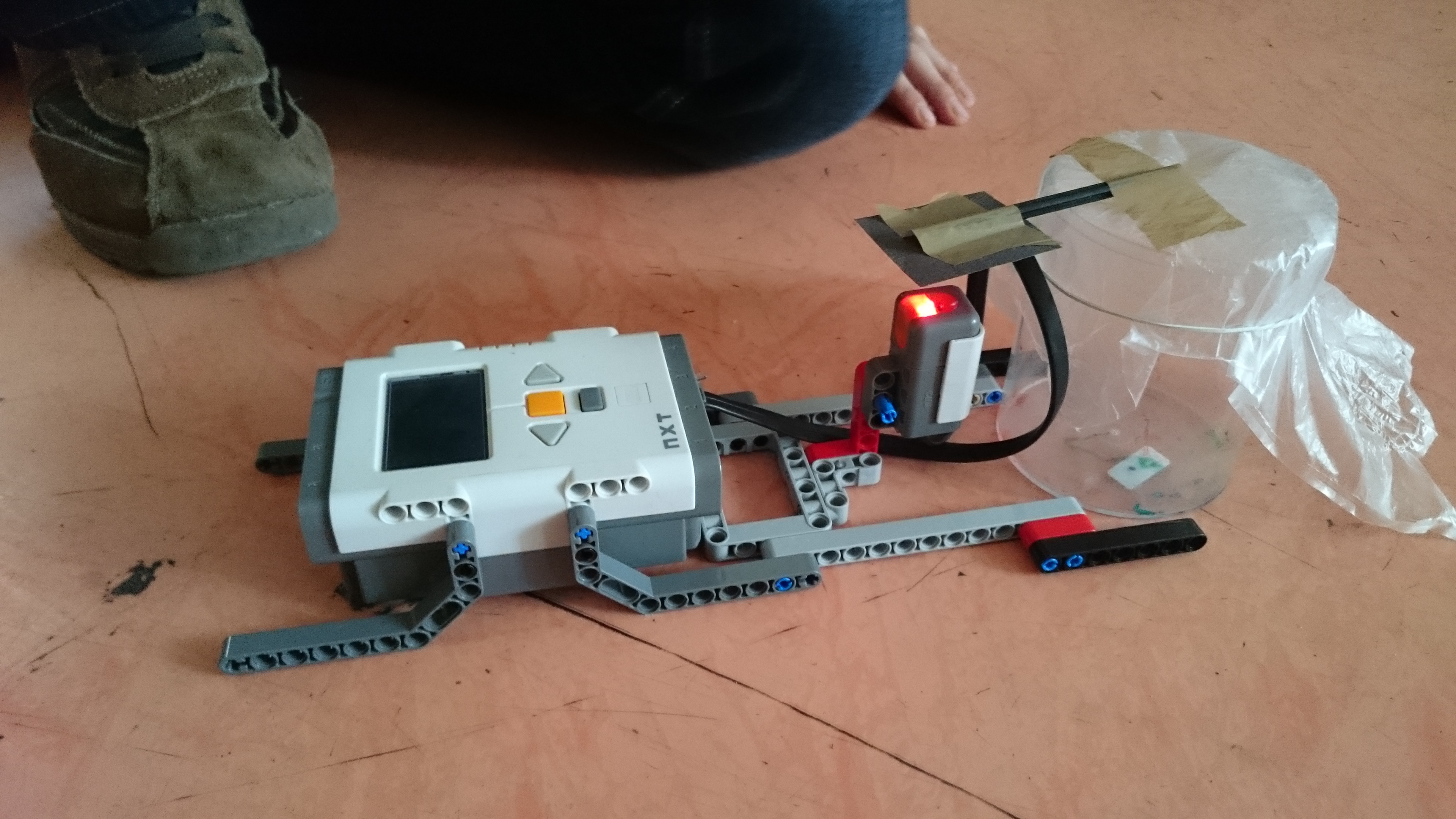 Zostrojili sme tri zariadenia: * na meranie hladiny vody - sústavou sveteľných senzorov, ktoré zaznamenávajú červenú guličku, keď je hladina a teda gulička v ich výške - v našom prípade sme pre jednoduchosť použili iba dva * na meranie tlaku vzduchu - v uzavretej nádobe, na ktorej je pružná blana, je stredný tlak. V prípade, že atmosferický tlak je vyšší, blana bude prehnutá dovnútra nádoby, ak je atmosferický tlak nižší, blana bude prehnnutá von. Na blane je pripevnená clonka, ktorá podľa prehnutia blany mení svoju polohu, sveteľný senzor silou odrazu svetla zisťuje v akej polohe je clonka. * na meranie rýchlosti vetra - lopatky vrtulky kladú vetru z jednej strany menší odpor ako z druhej a preto sa vo vetre roztočia a to vždy rovnakým smerom. Polohu lopatiek snímame dvomi ultrazvukovými senzormi - nameranú hodnotu určíme buď podľa jedného (alebo keď je lopatka ďalej), podľa druhého senzora. Programy pre všetky tri zariadenia zobrazujú na displeji NXT graf - každú štvrťsekundu sa nakreslí čiara medzi predchádzajúcim meraním a novým meraním, pričom sa graf posúva smerom vpravo.