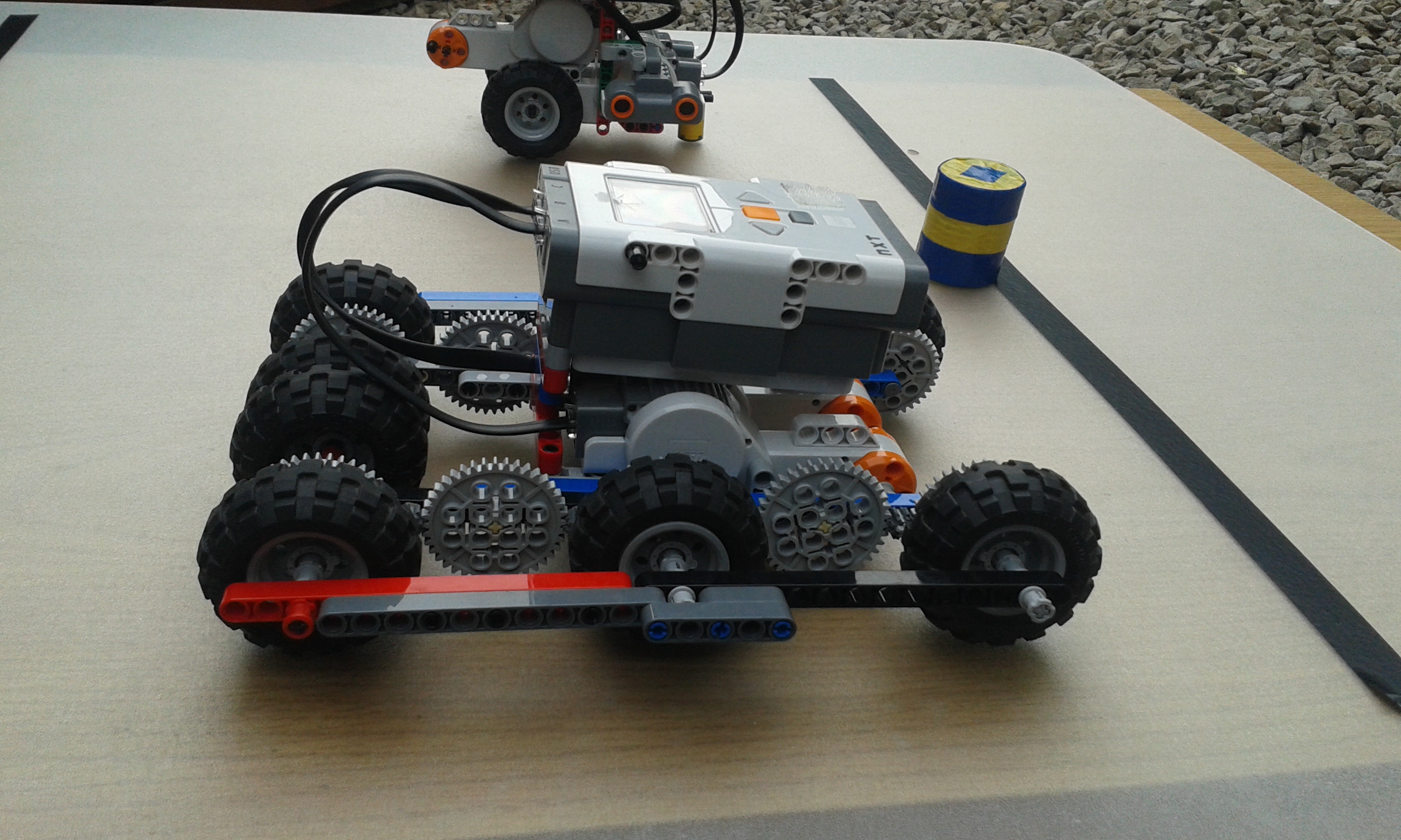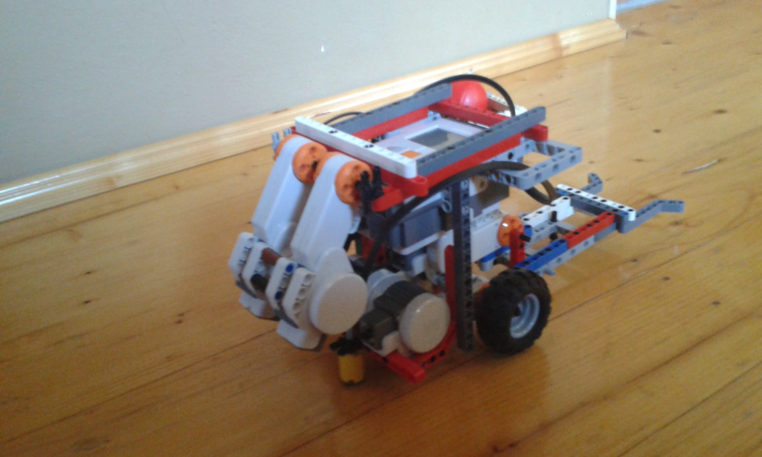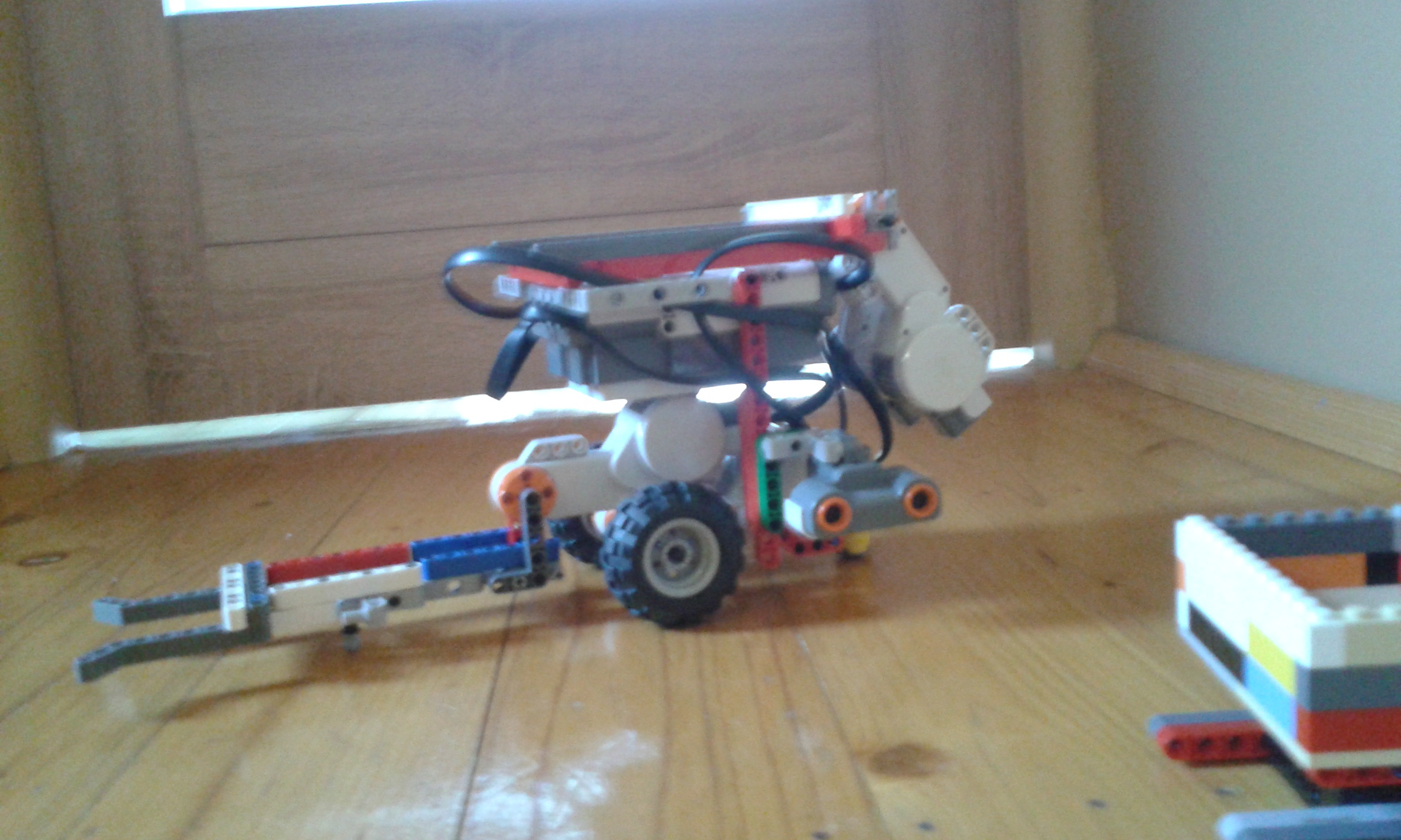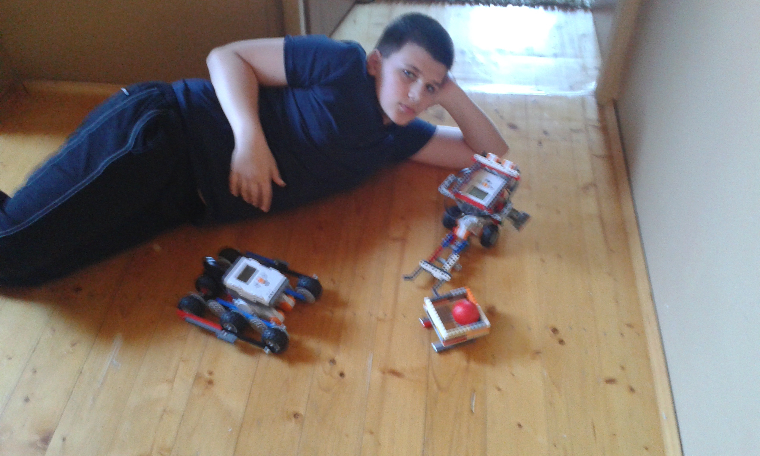 Náš robot na vyberanie guličky z nádoby má jeden ultrazvukový senzor na zaznamenanie nádoby . Má aj rameno ktorým nádobu prevracia. Nášprvý robot je robot z prvej úlohy a jeho rýchlosti sú v prílohe . Náš lepší robot je popísaný vo videu. Najskôr sme si mysleli, že závažie robota spomalí a to sa aj stalo.A ešte sme zistili že čím je večí uhol tím je robot pomalší .