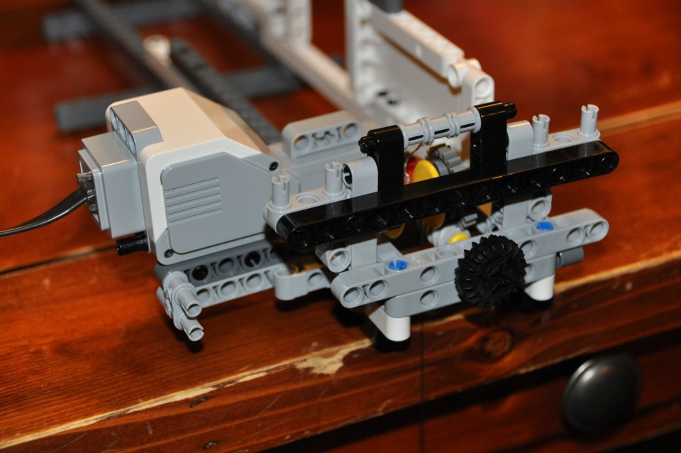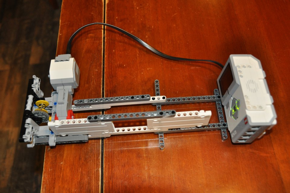 V tomto kole sme riešili úlohu zodvihnúť čo najťažší predmet za 1 minútu.Zostrojili sme preto žeriav, ktorý dvíha závažia z činky. Motor je pripojený k cievke pomocou prevodu so špirálou s pomerom 1:20. Cievka namotáva lanko, ktoré dvíha závažia. Úspešné pokusy sme mali do 8kg. Pri ťažších závažiach nám začali preskakovať prevody. Kvôli tomu sme spravili v programe aj trojsekundové postupné zrýchľovanie motora na maximum, aby nám to na začiatku tak nepreskakovalo. Na videu máme pekný pokus so závažím 7,5kg. Celkom rýchlo sa nám pri tom vybíjali baterky a na konci sme mali skoro rozpadnutú cievku, do ktorej sa nám zarezávalo lanko... :-)