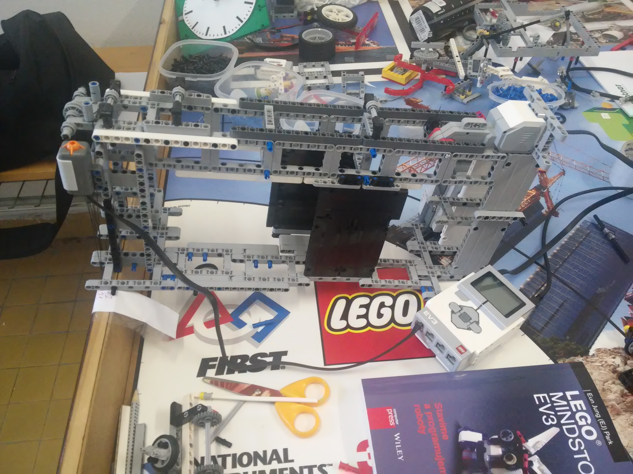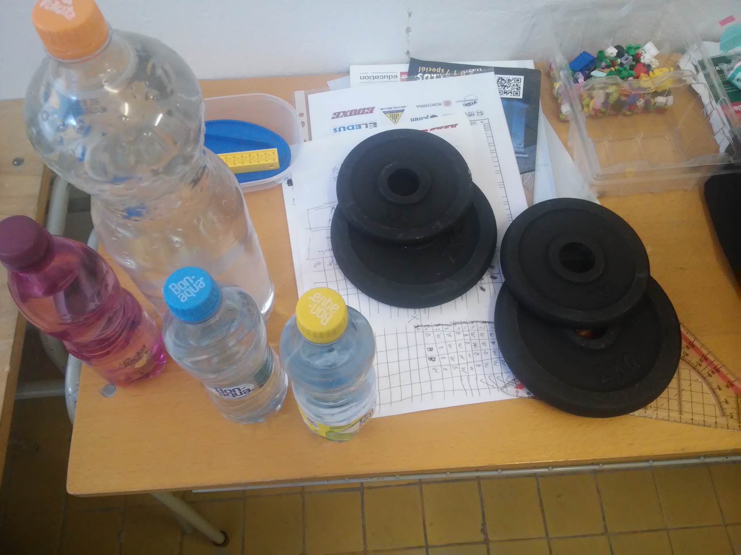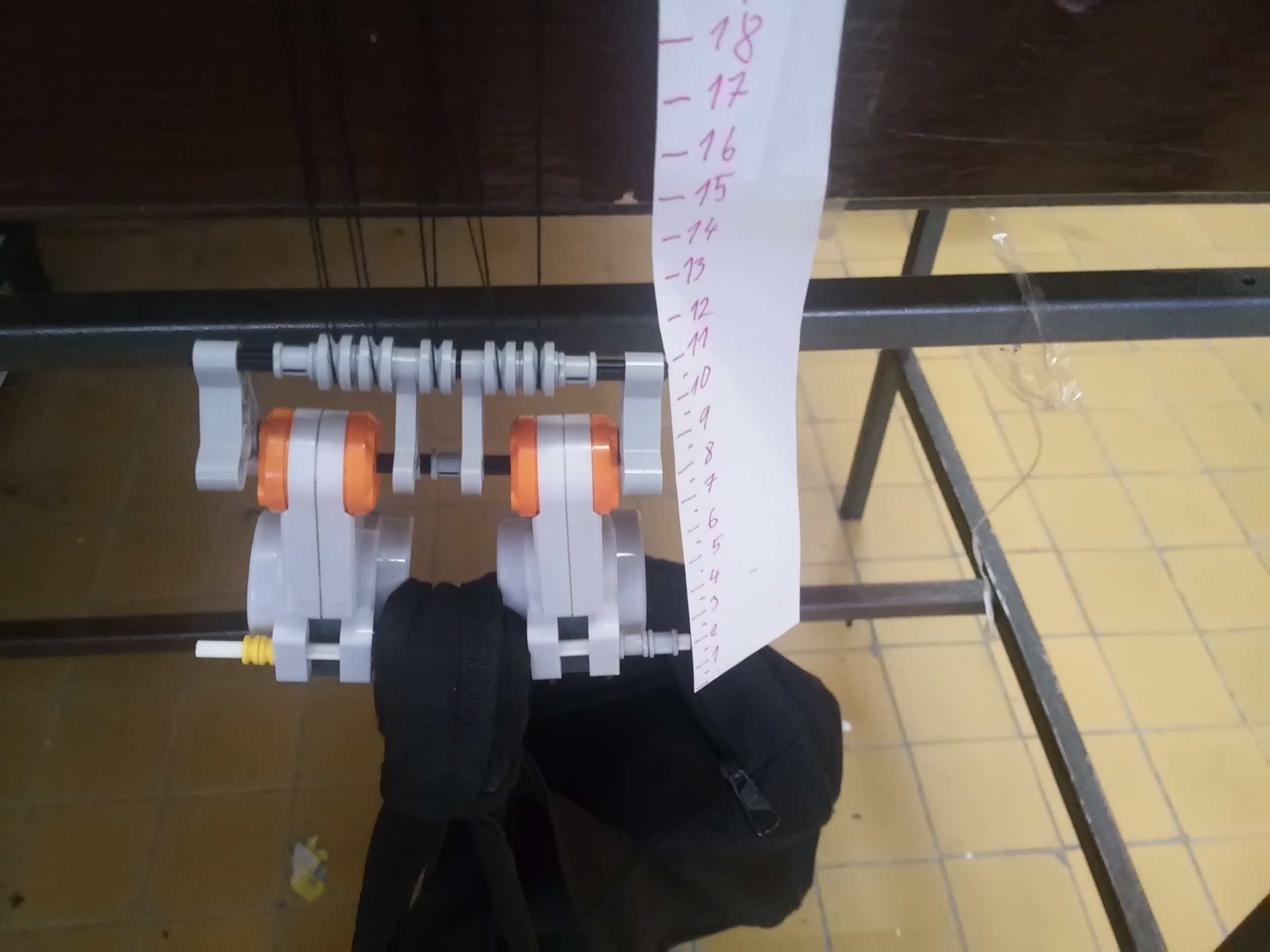 Náš vzpierač najprv dvihol 5 kg, 7 kg a na záver zdvihol 7,5 kg + 2 motorčeky(váha jedného je 80 g takže sme zdvíhali 7,66 kg. Náš vzpierač funguje na princípe kladkostroja s 11 kolieskami, t.z. váhu 7,5 kg rozdeľujeme na 11 koliesok, na každé pôsobí 6,9 N. Toľko zdvíha aj motor A použili sme vzorec F=Fg/n (n=počet koliesok). A pri poslednom pokuse to vzdalo lanko bolo zničené trením ale už sme nemali čas ho meniť lebo bola streda a ja odchádzam na výlet vo švrtok :)