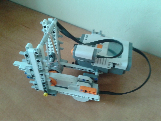 Robot ma jeden motor a NXT kocku. Rozhodli sme sa merat, aku najvecsiu vahu dokaze zdvihnut ak je power 20, 30, 40, 50, 60, 70, 80, 90, 100. vysledky merani mozete bydiet v excel prilohe. Kocky: detske drevene kocky, hmotnost-37/38 gramov. Video bude mozno sekat.