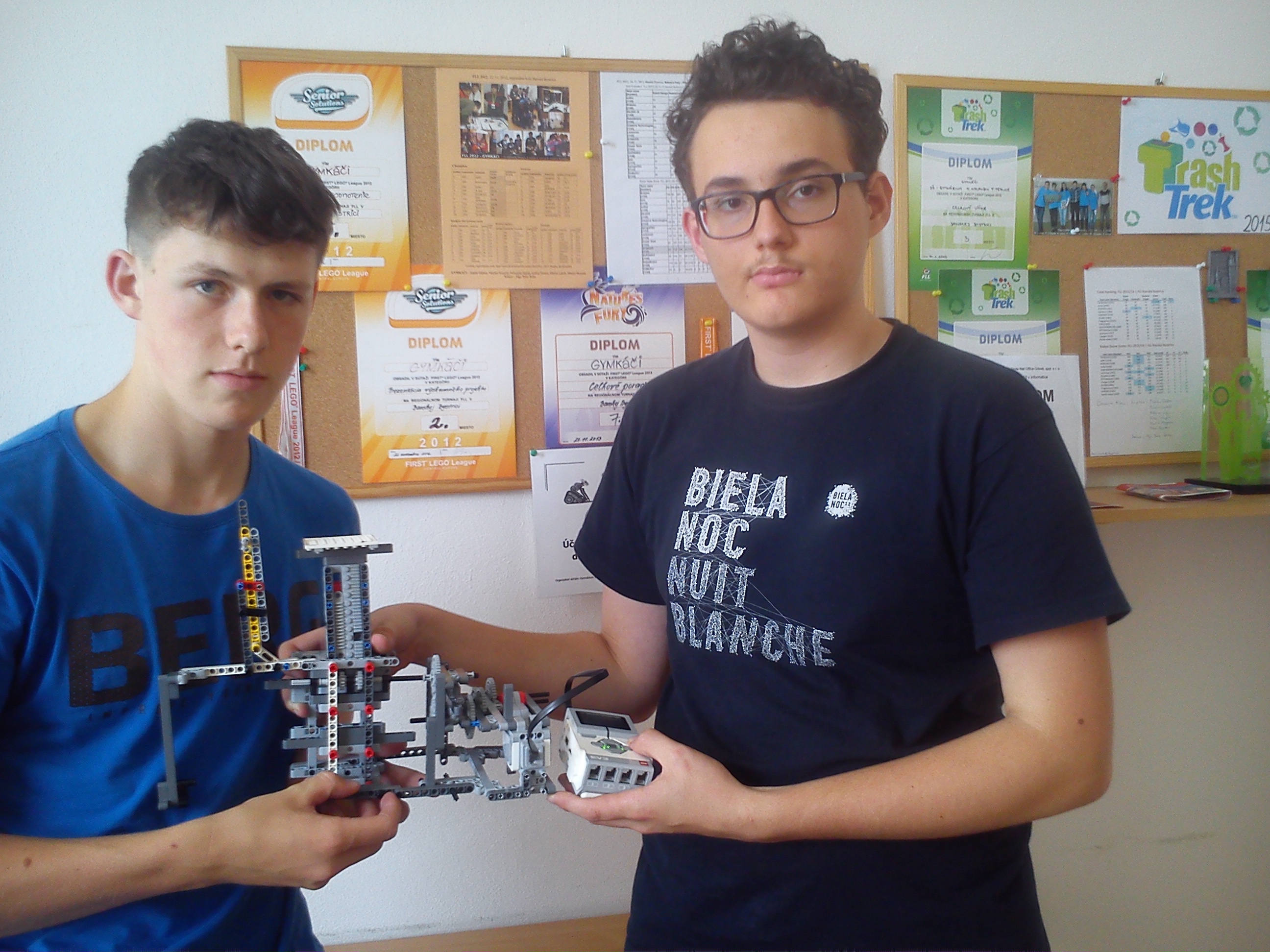 Dobrý deň, dnes sme Vám poslali riešenie siedmej úlohy. Náš robot v nej dokázal udvihnúť 1,5 kg. Vo videách som popísal presné fungovanie tohto zdviháku. Neviem či je to presne na videu vidieť, ale robot to zdvihol do onej výšky 10 cm (po tú osku). Robot dokázal udvihnúť aj 2 kg, ale vtedy sa nám už kazila oska na ktorej to šlo... A to je všetko... Dovidenia.