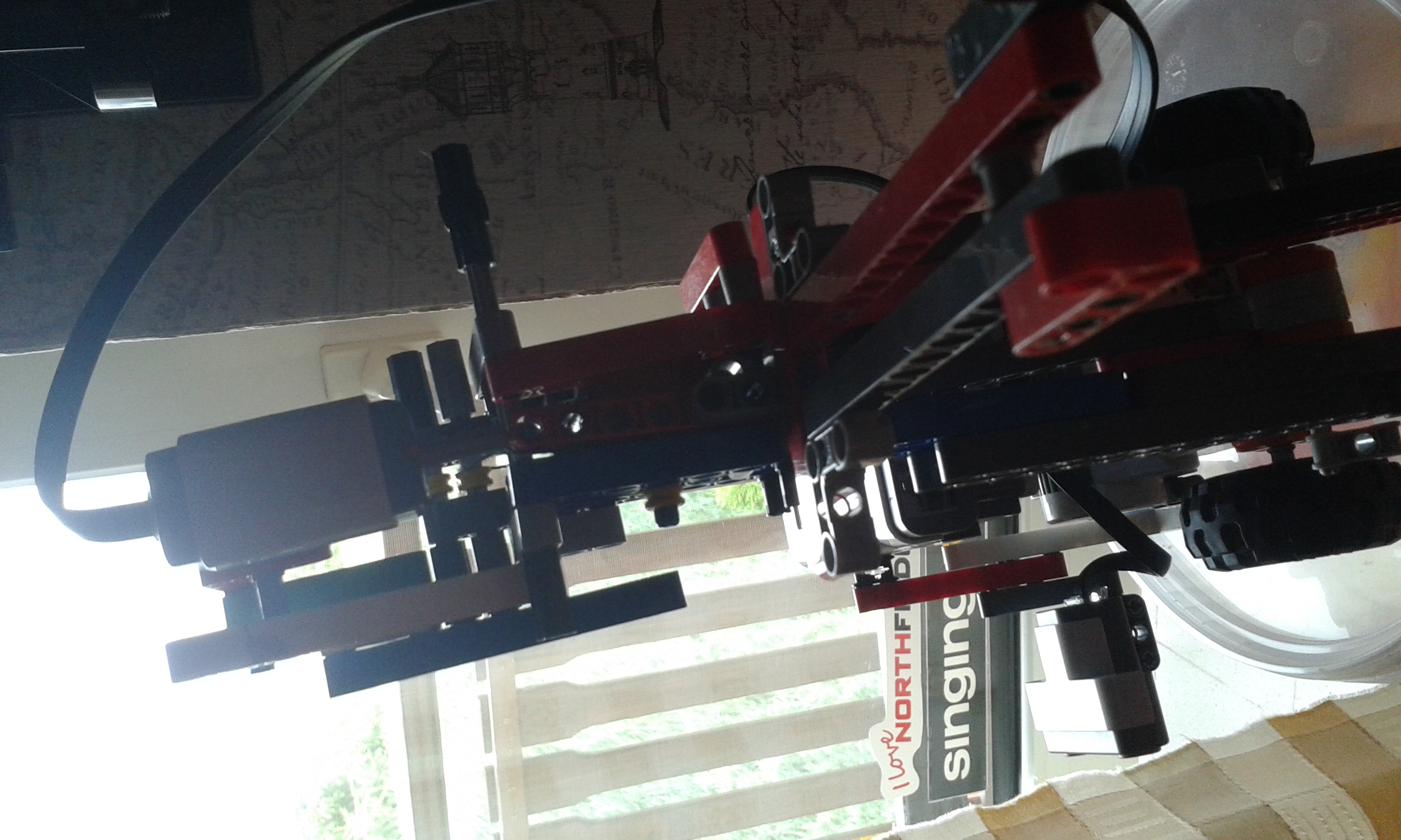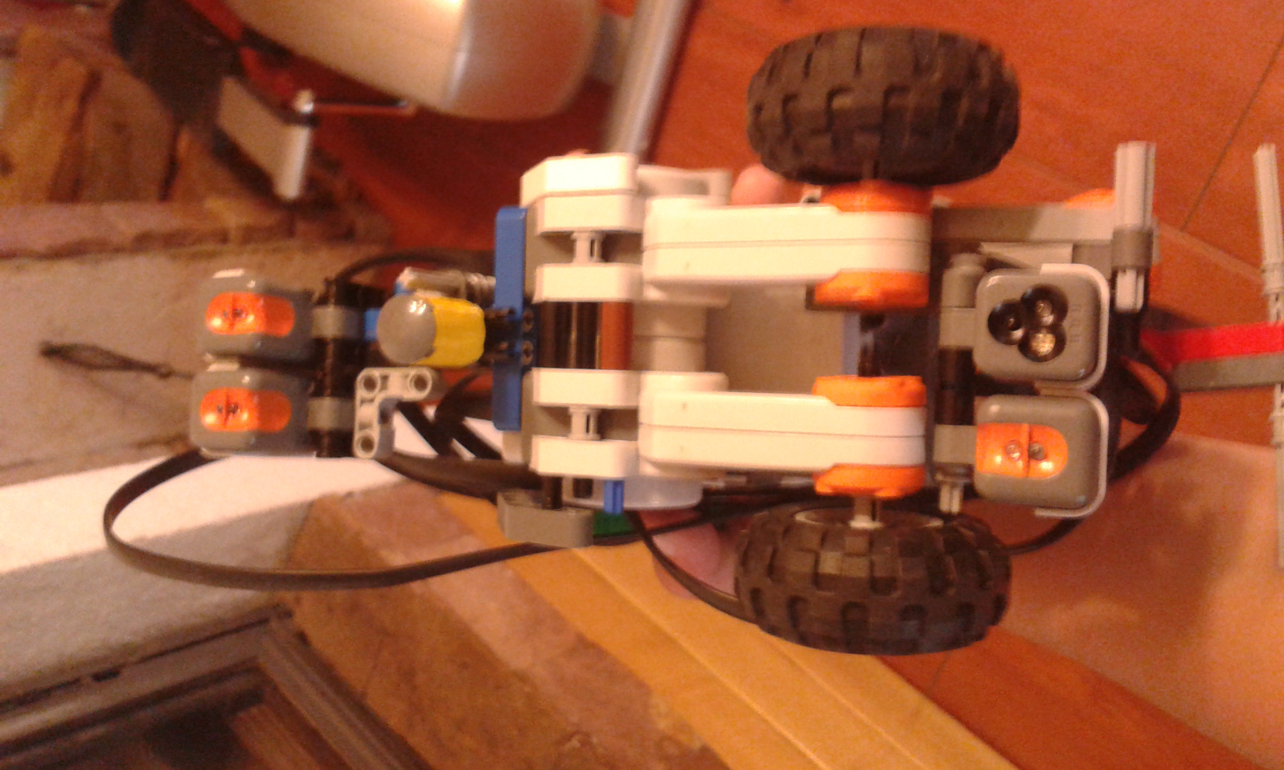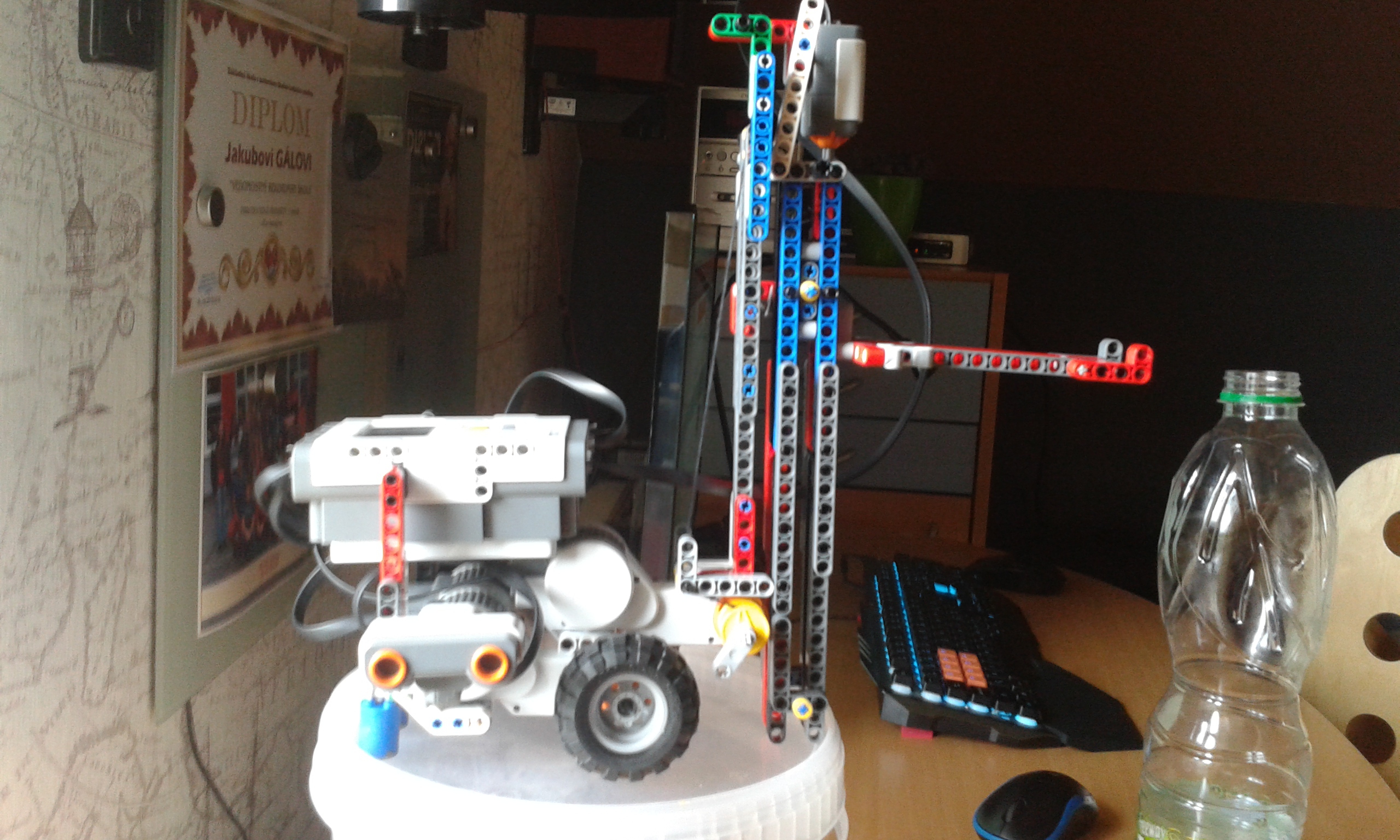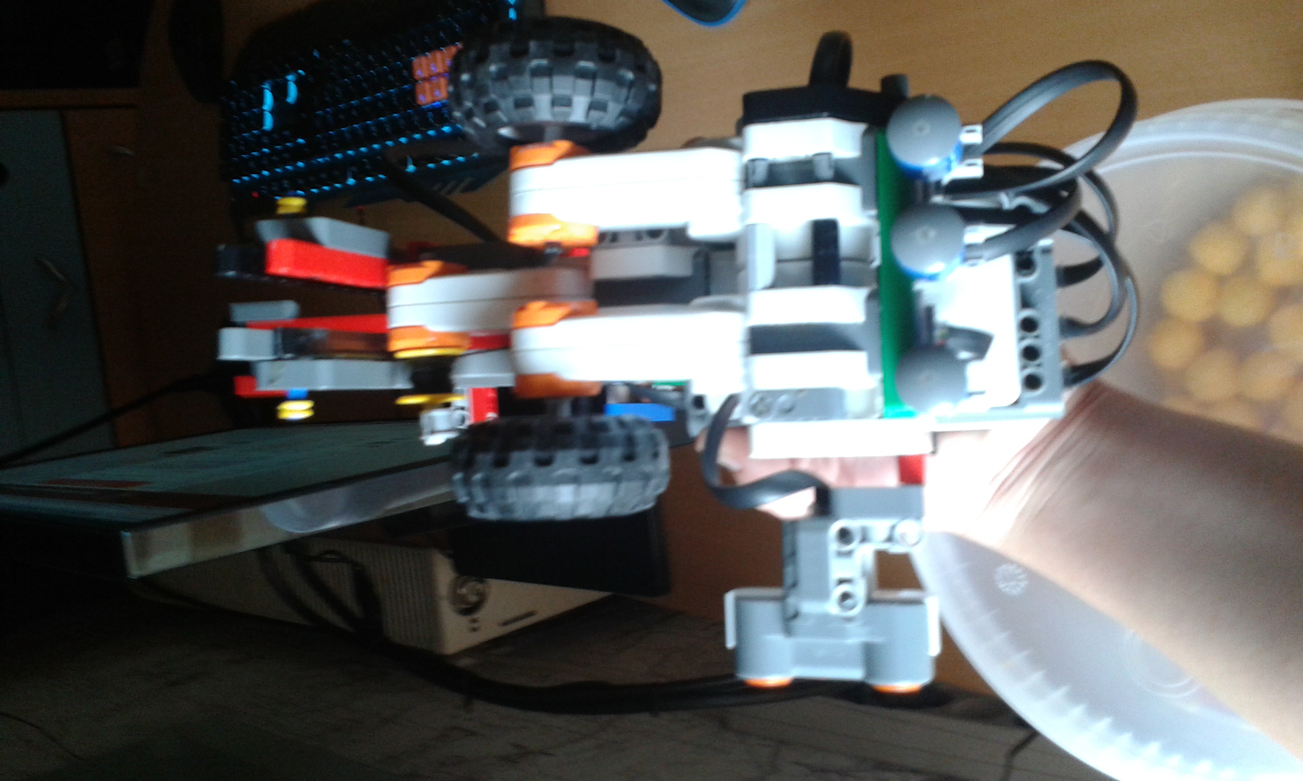 Náš prví robot ktorí slúži na vyhľadávanie Polárky pomocou veľkého voza . Skladá sa s dvoch motorov na pohyb a s jedného na pokladanie značky . Na spodku má 4 senzory ktoré snímajú čiernu čiaru . Tieto senzory sú usporiadané tak aby zachytil všetky čiernu len keď sa robot dostane na predom určení uhol . Potom odmeria dĺžku čiary a vynásobí ju 5 lebo Polárka je 5*ďalej a potom umiestni značku . Náš druhí robot má dva motory na pohyb a jeden na zdvíhanie jednotlivých stupňov torty . Má ešte dva senzory jeden ultrazvukoví a druhý tlačidloví . Ultrazvukoví slúži na meranie veľkosti jednotlivých stupňov torty . Tlačidloví slúži na zistenie polohy zdvižnej vidlice .V programe sme použili My block aby sme sprehladnili program . Video neposielame lebo sa nám ho nepodarilo nahrať na yotube . Lebo bolo dlhšie ako 15 minút a keď sme zríchlyli robota nemeral presne .