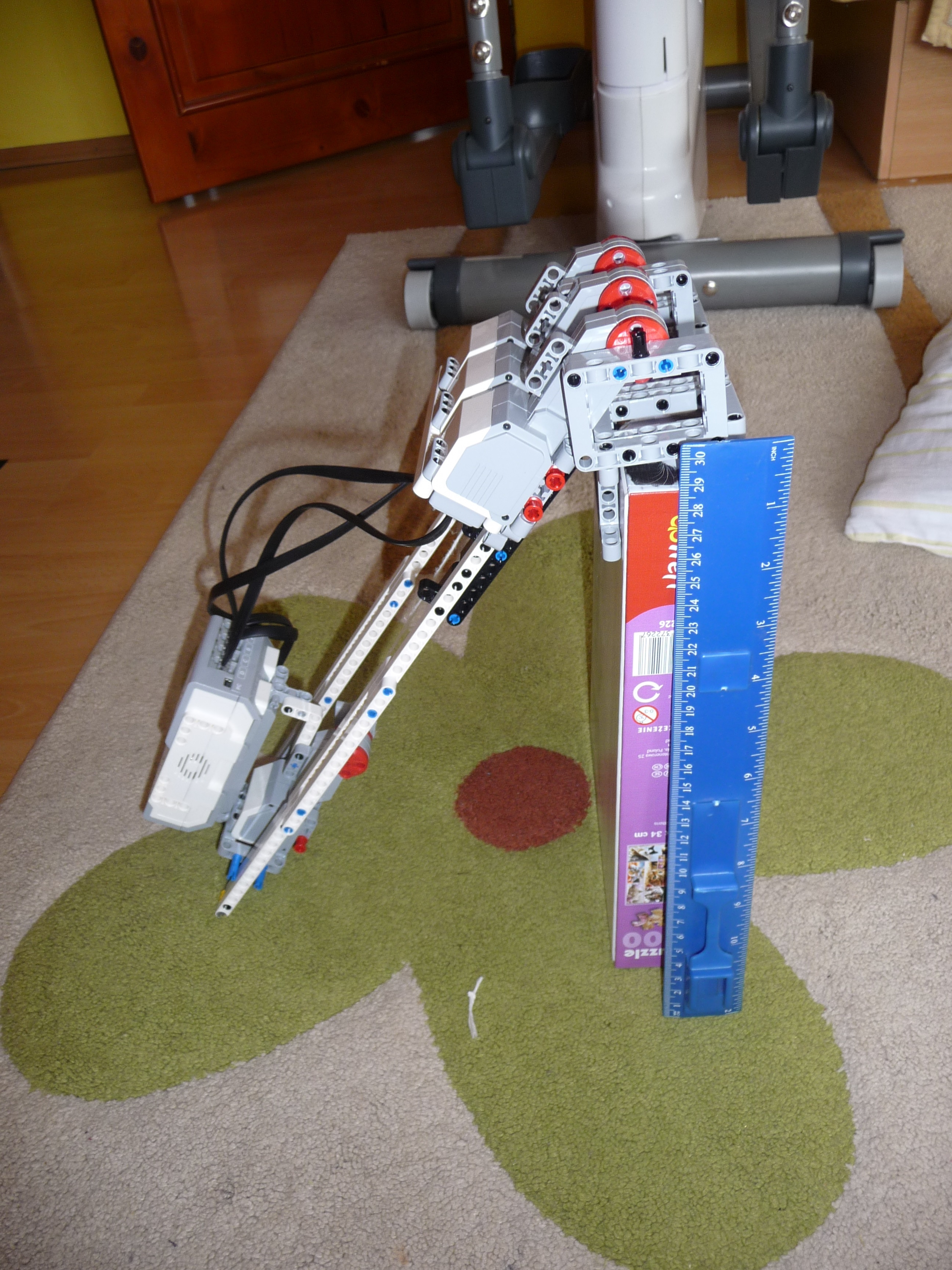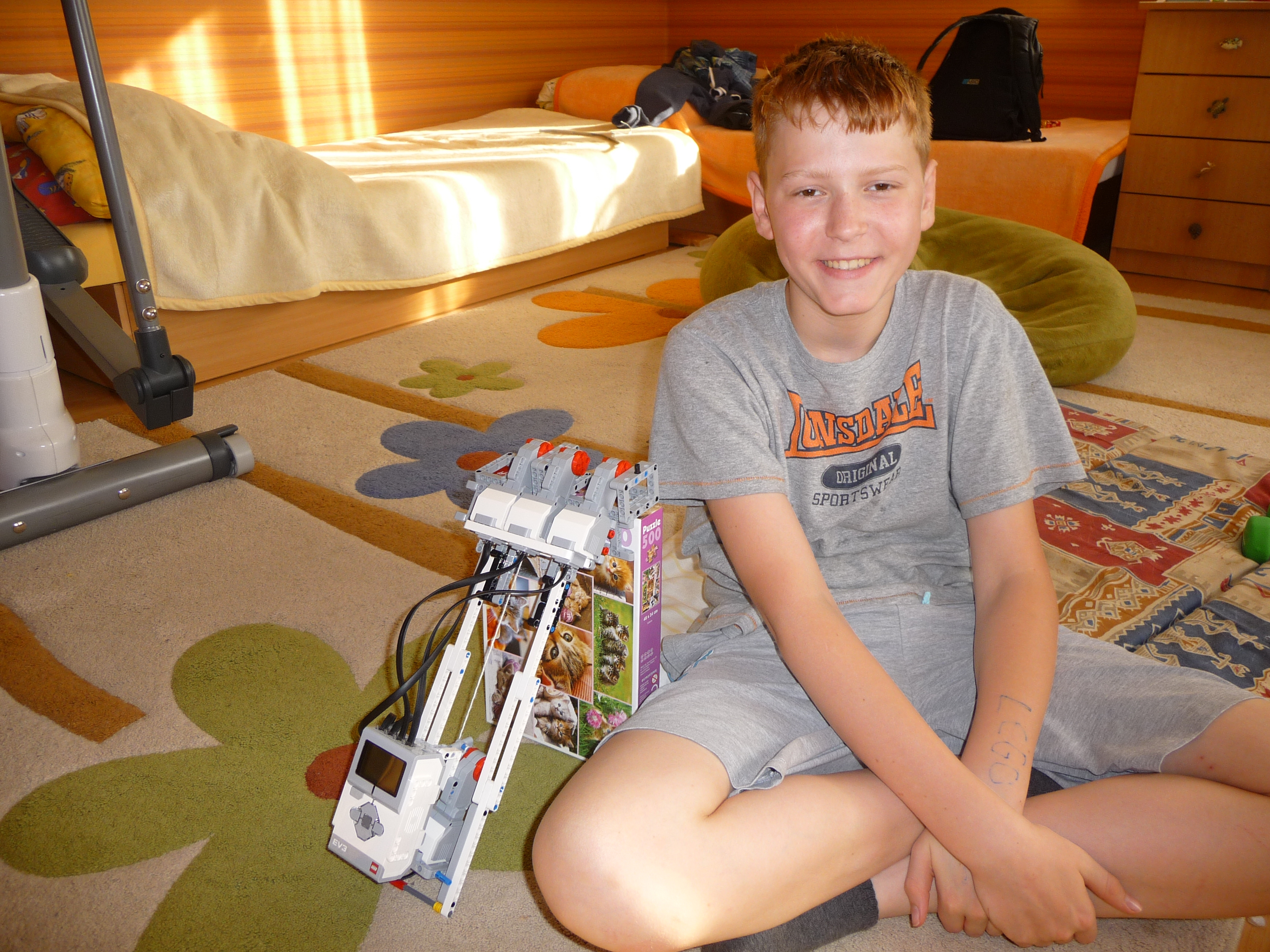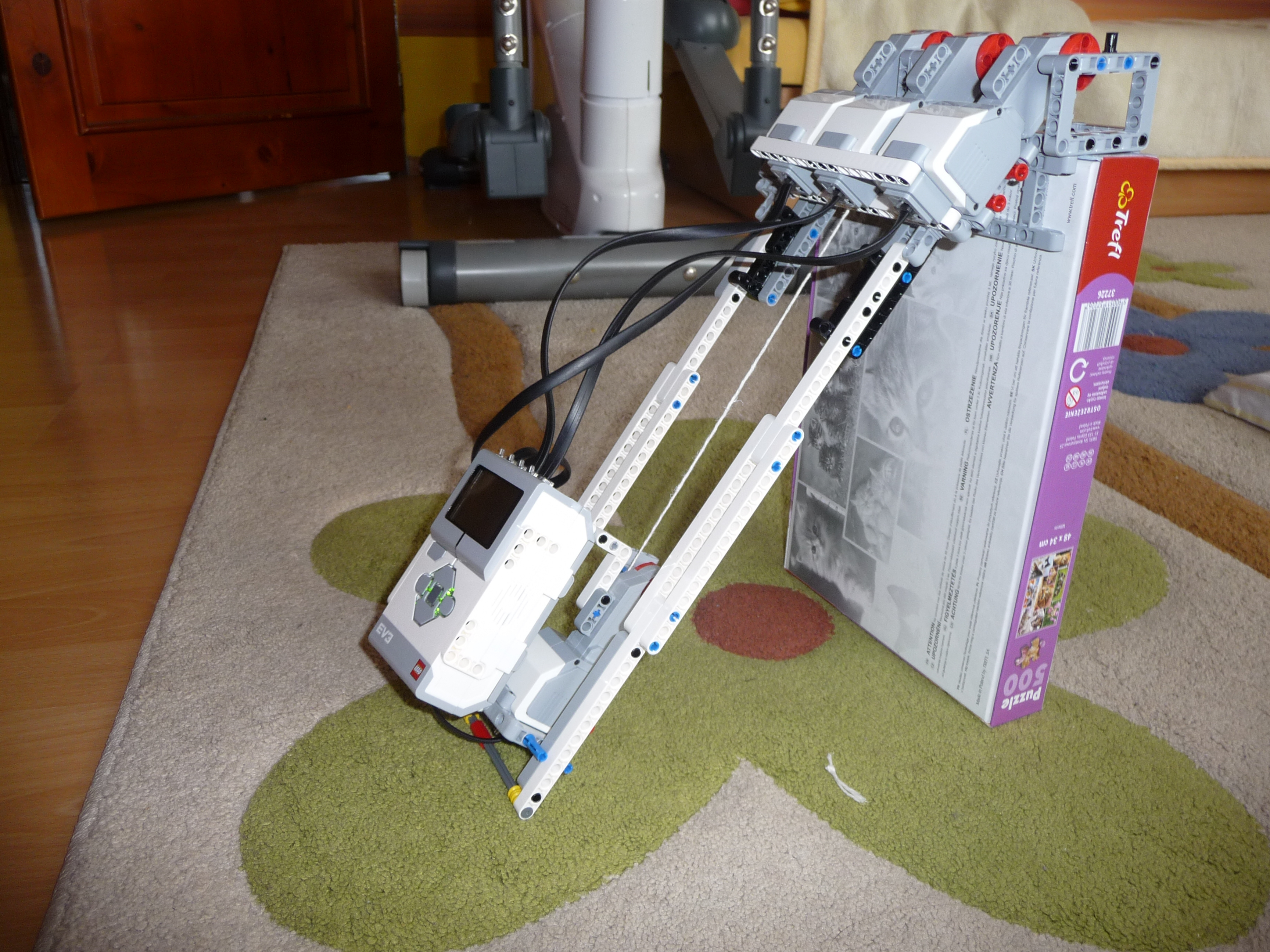 Preliezač: Robot príde k stene tým, že sa vytiahne za pomoci navijaka a vylezie po rebríku. Pomocou 3 motorov (trochu nevládali preklopiť rebrík) preklopí rebrík na druhú stranu steny a znova za pomoci navijaku a lanka zlezie po rebríku na zem. Aby mäkko zoskočil na prázdniny, má tam pripravený vankúš. Potom môže robot isť smelo na prázdniny. Ospravedlňujeme sa, video je na začiatku trochu trhaná ale zvuk je možné počuť. ----- Konštrukcia: Navijak, ktorým robot vylezie po rebríku je urobený z malého motora a lanka upevneného k k rebríku. Celý rebrík sa preklopí pomocou 3 motorov (viac sa nedalo použiť - iba štyri výstupy). Robot sa vojde do kocky 30 x 30 cm - síce po uhlopriečke. ------- Program: jednoduchý program na točenie motorom navijaka a na preklopenie rebríka. ---- Keďže sa na konci školského roka finišovalo kvôli známkam a tiež sme boli na koncoročnom výlete, nedokázali sme robota dostatočne vylepšiť. Pôvodne mal rebrík priniesť a zavesiť ho na stenu pomocou hrebeňa, ale ten nebol dostatočne dlhý. Preto sme použili rebrík zavesený na stene a navijak.