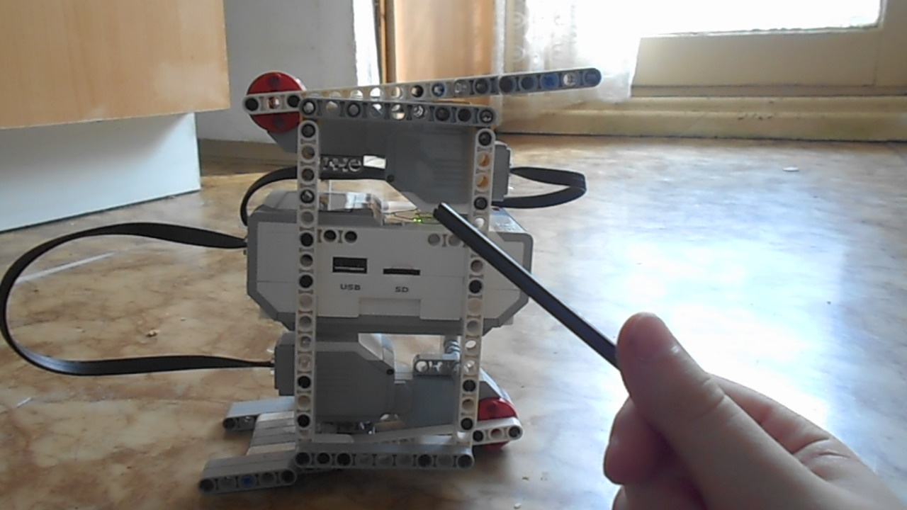 Ako sa ukázalo, úloha, ktorá sa mi na začiatku zdala veľmi zložitá, bola nakoniec veľmi jednoduchá a ku dosiahnutiu výsledku stačila jedna verzia robota. V priebehu 30 minút som mal robota, ktorý dokončil úlohu bezchybne. program je úplne jednoduchý, vďaka tomu, ako motory mindstorms fungujú (mal to byť dočasný program, ale ukázalo sa, že funguje perfektne). Program len otočí a vráti motor, zatiaľ čo sa snaží otočiť motor na opačnej strane do uzavretej polohy, aby sa náhodou neotvoril, keď na neho bude pôsobiť všetka váha robota.