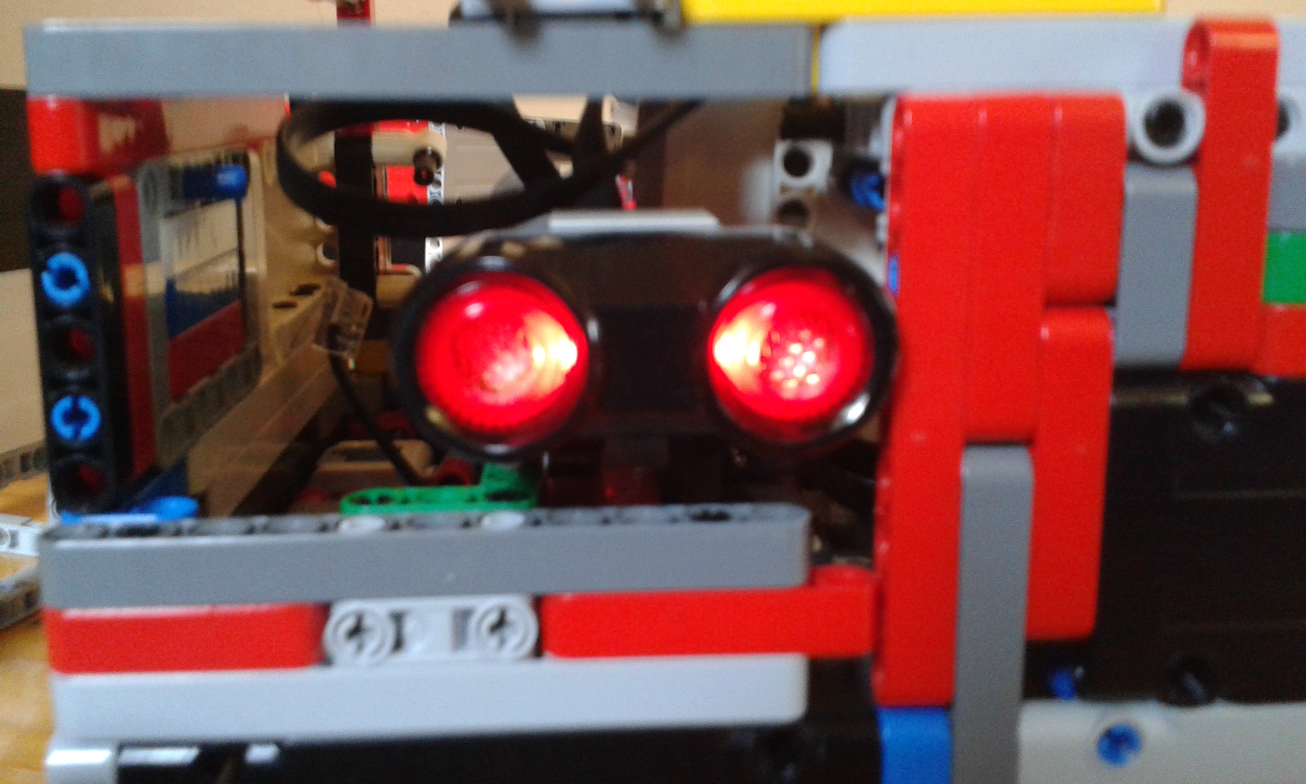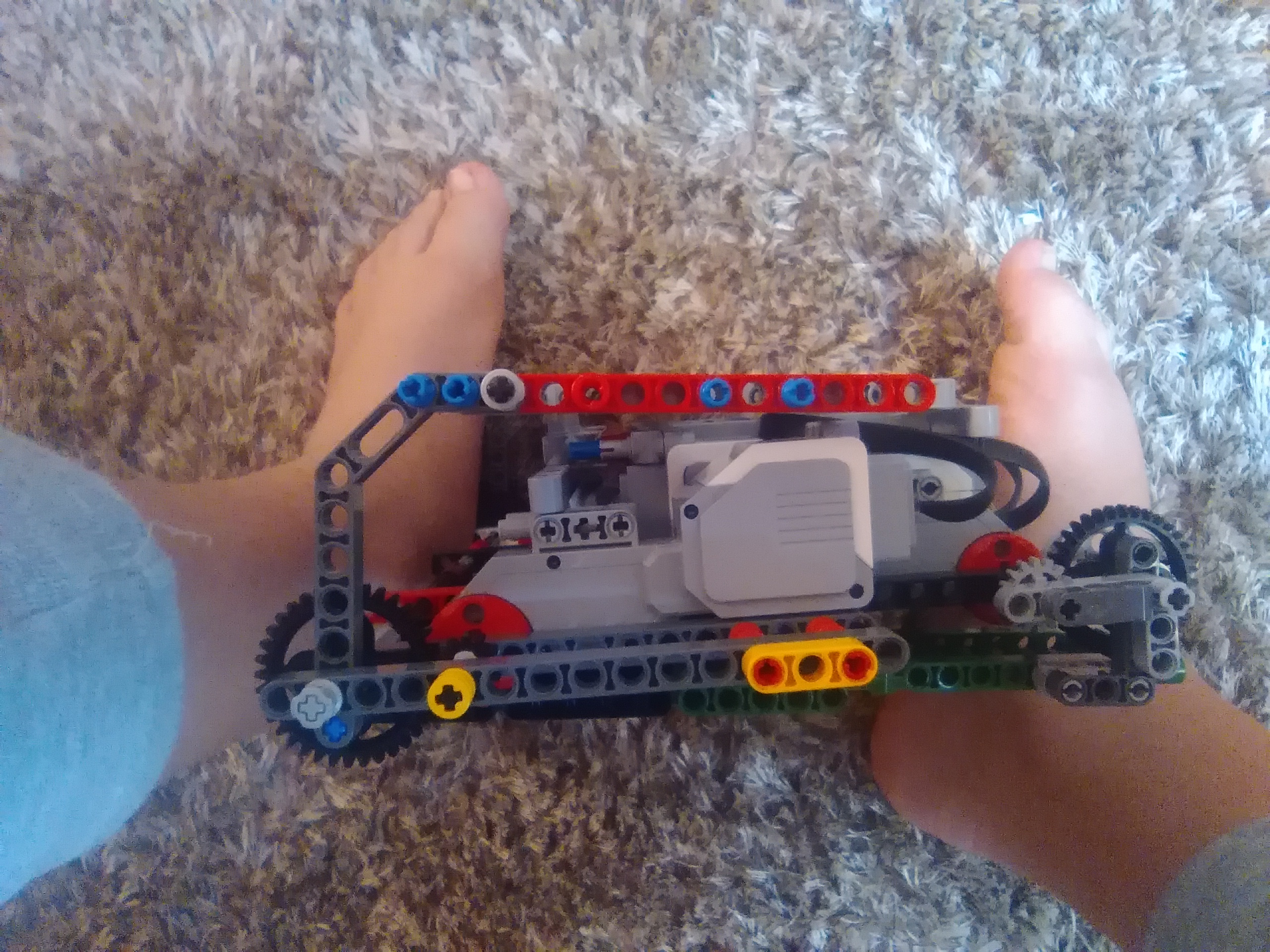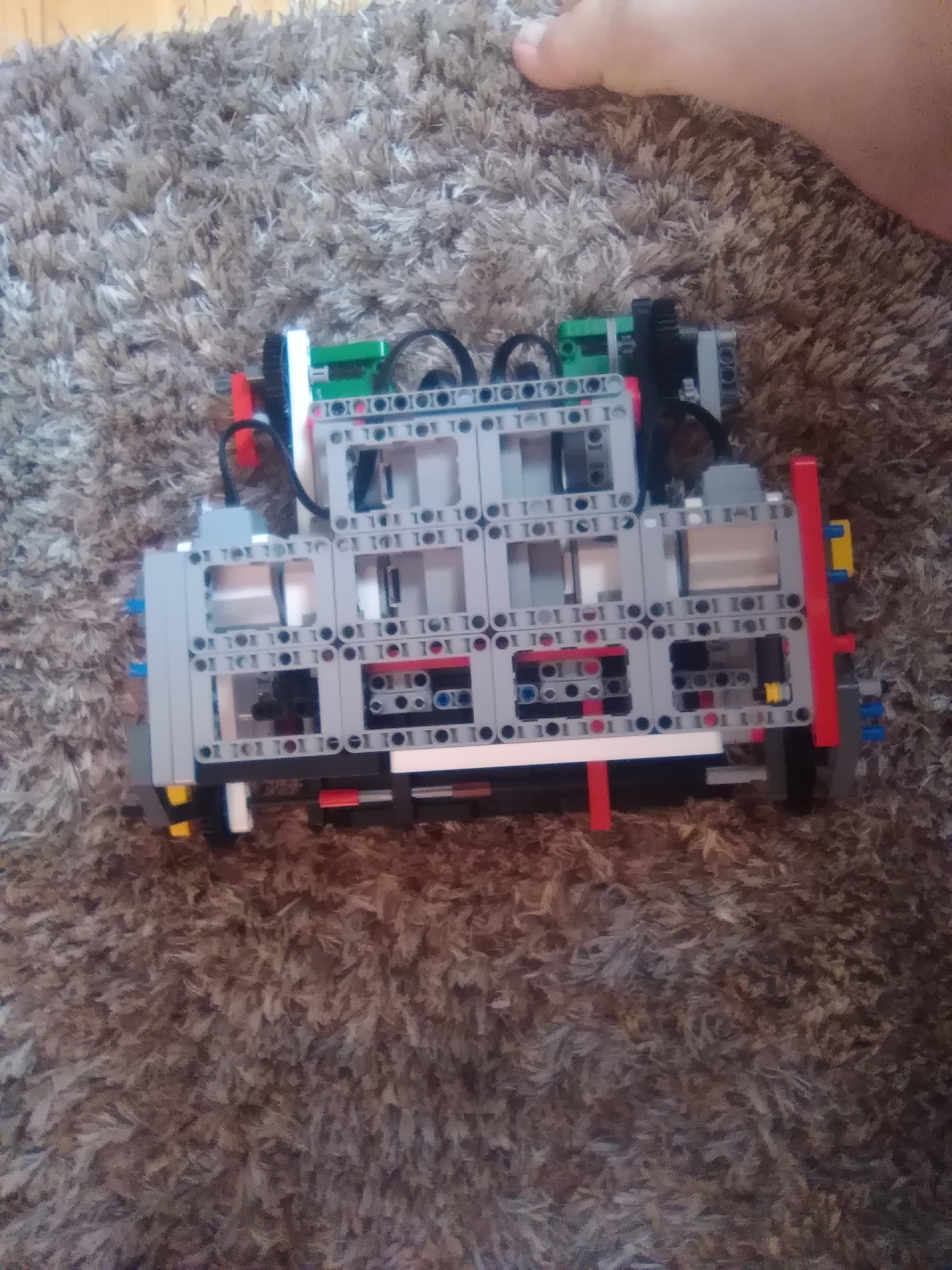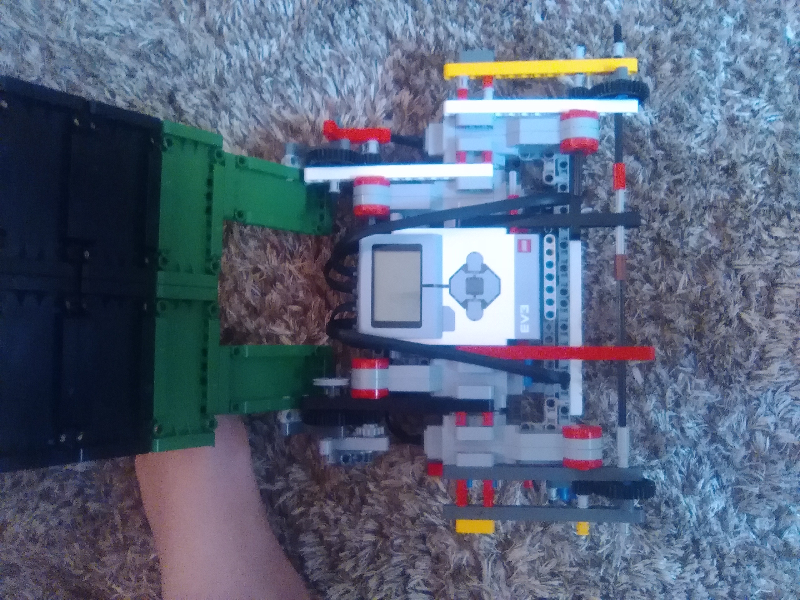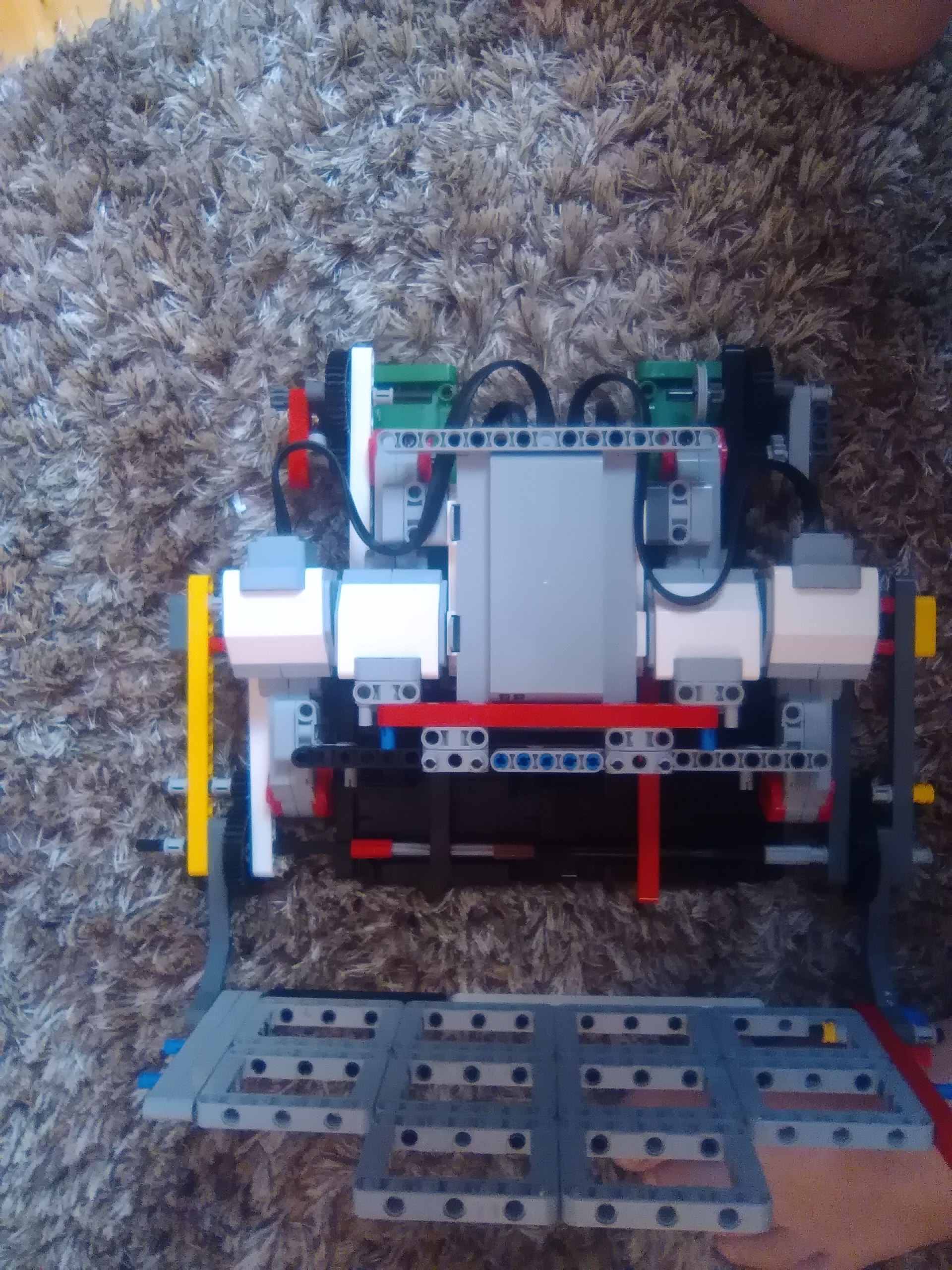 Náš robot sa skladá z: 2 veľké motory, 2 ultrasonické senzory, 1 gyroskop, 1 medium motor