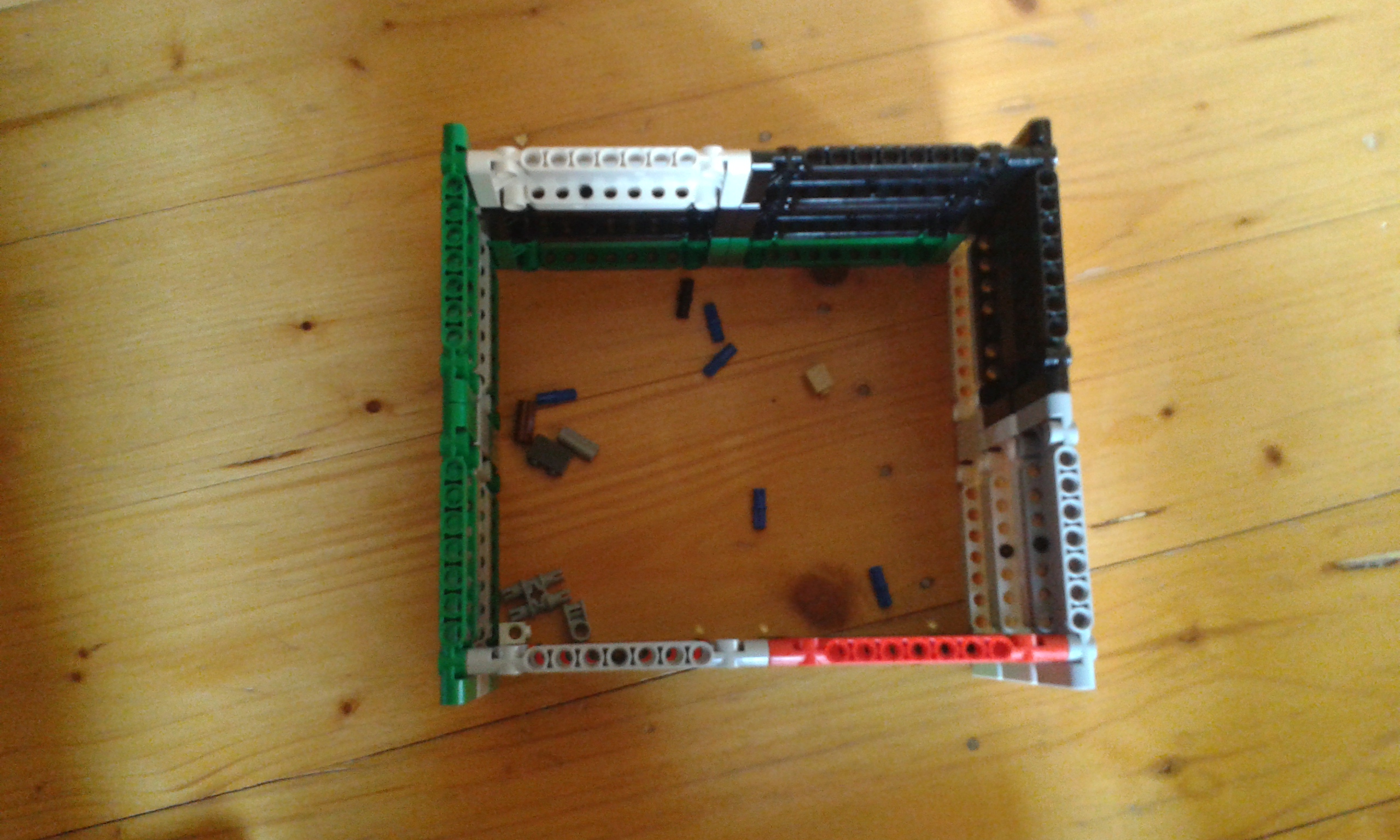 Robot sa skladá z 2 ramien, ktoré sú napájané dvomi sprevodovanými motormi. Je v tvare placky. Ramená sú blízko kocky pre efektívnejšie využitie sily.