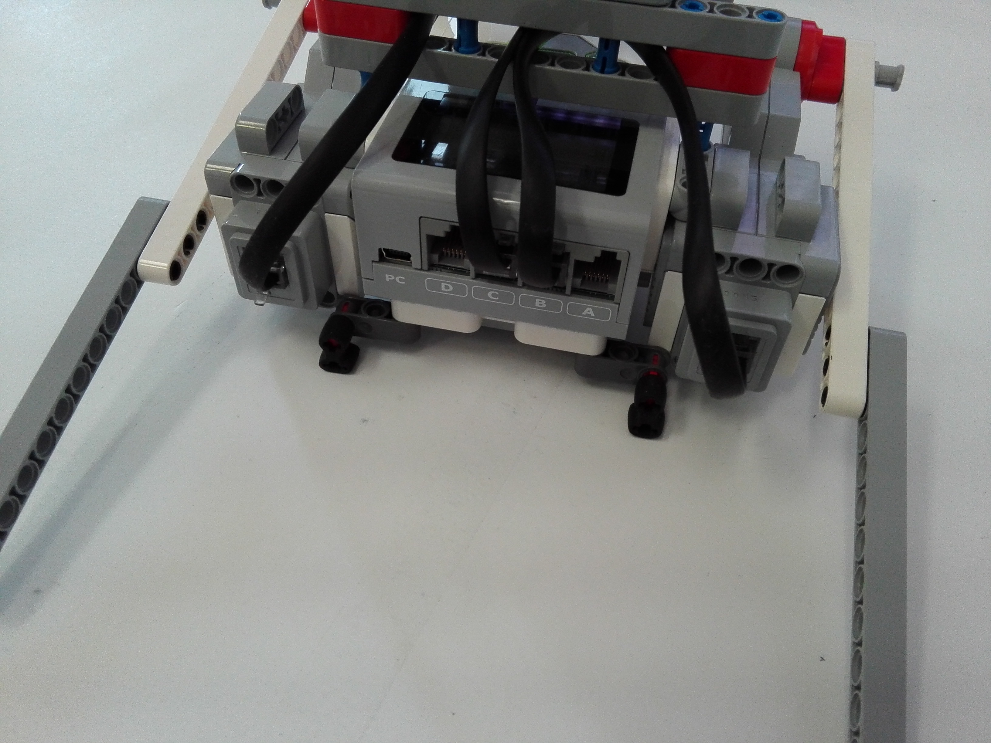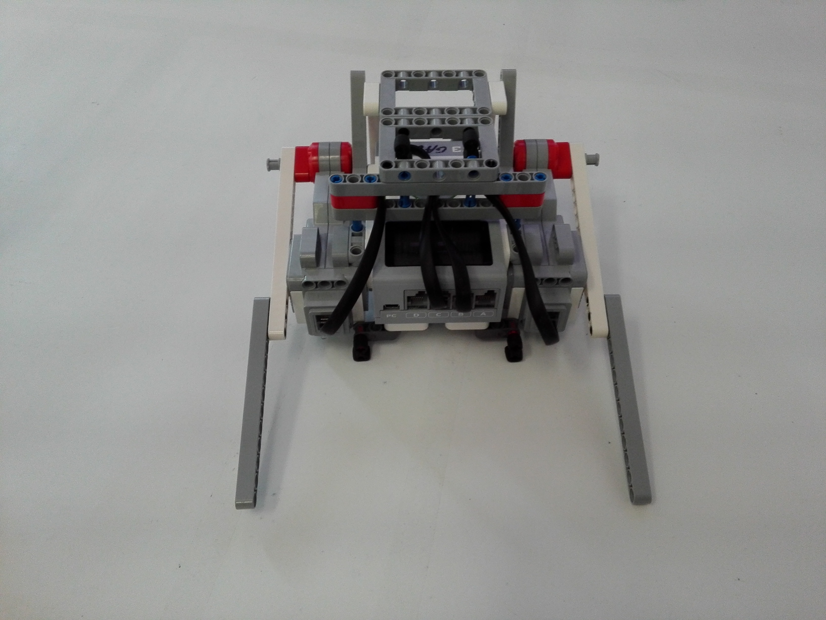 Robot je postavený z kocky, ktorá je spojená s dvomi veľkými motormi. Motory sú pripevnené ku kocke a z motoru idú 2 tyče - "ruky", ktorými sa robot pretáča. Program je jednoduchý, je v ňom iba pohyb motorov.
