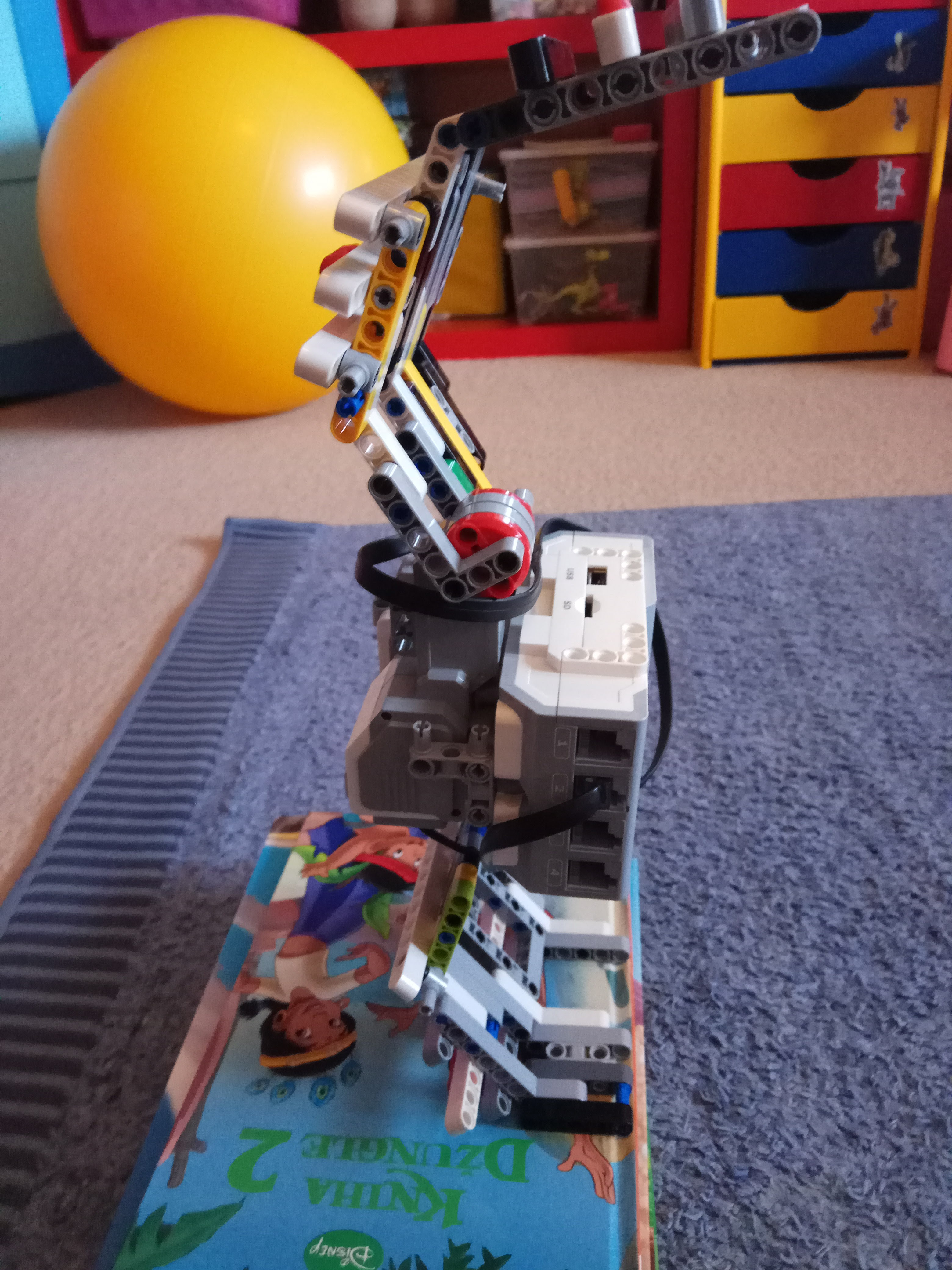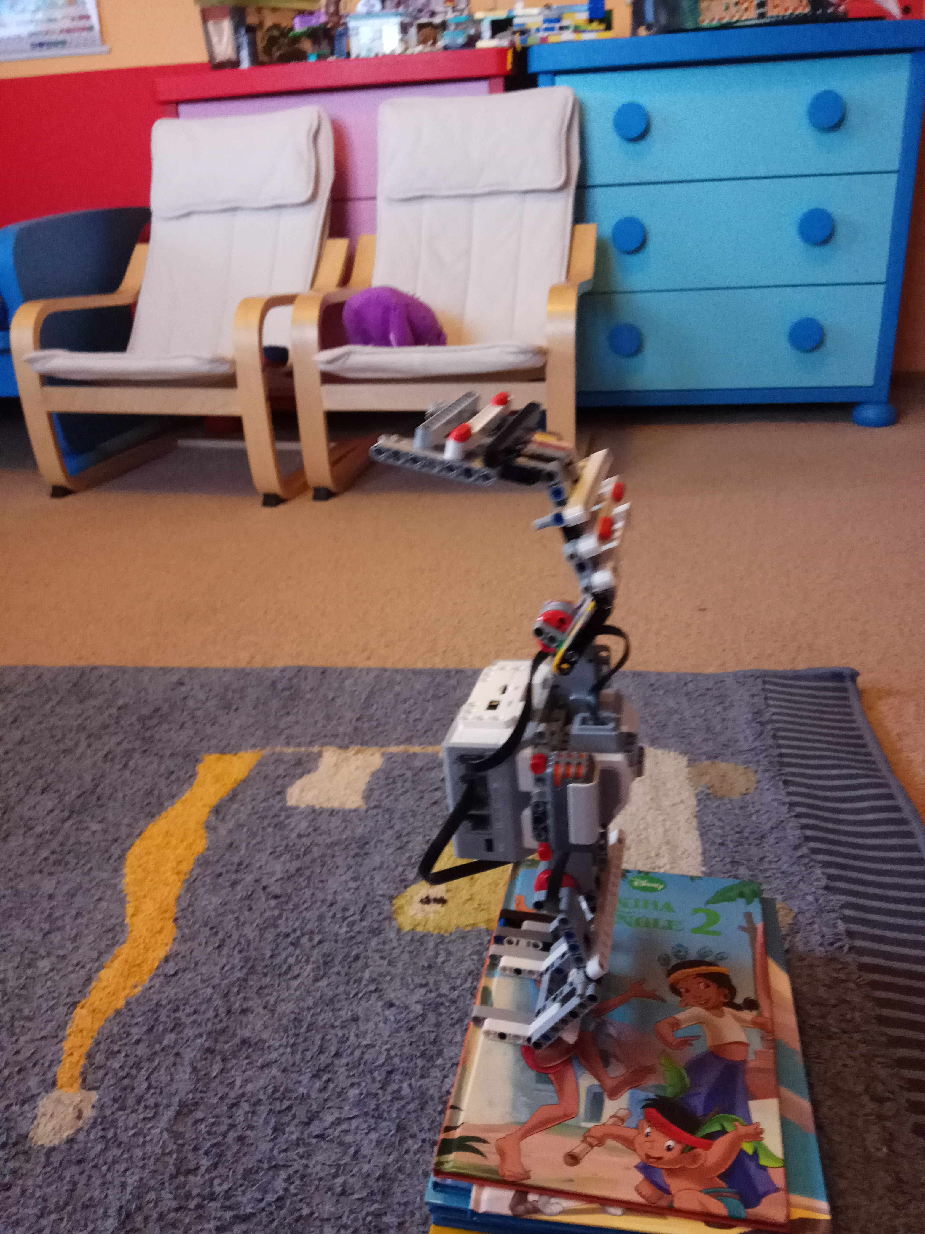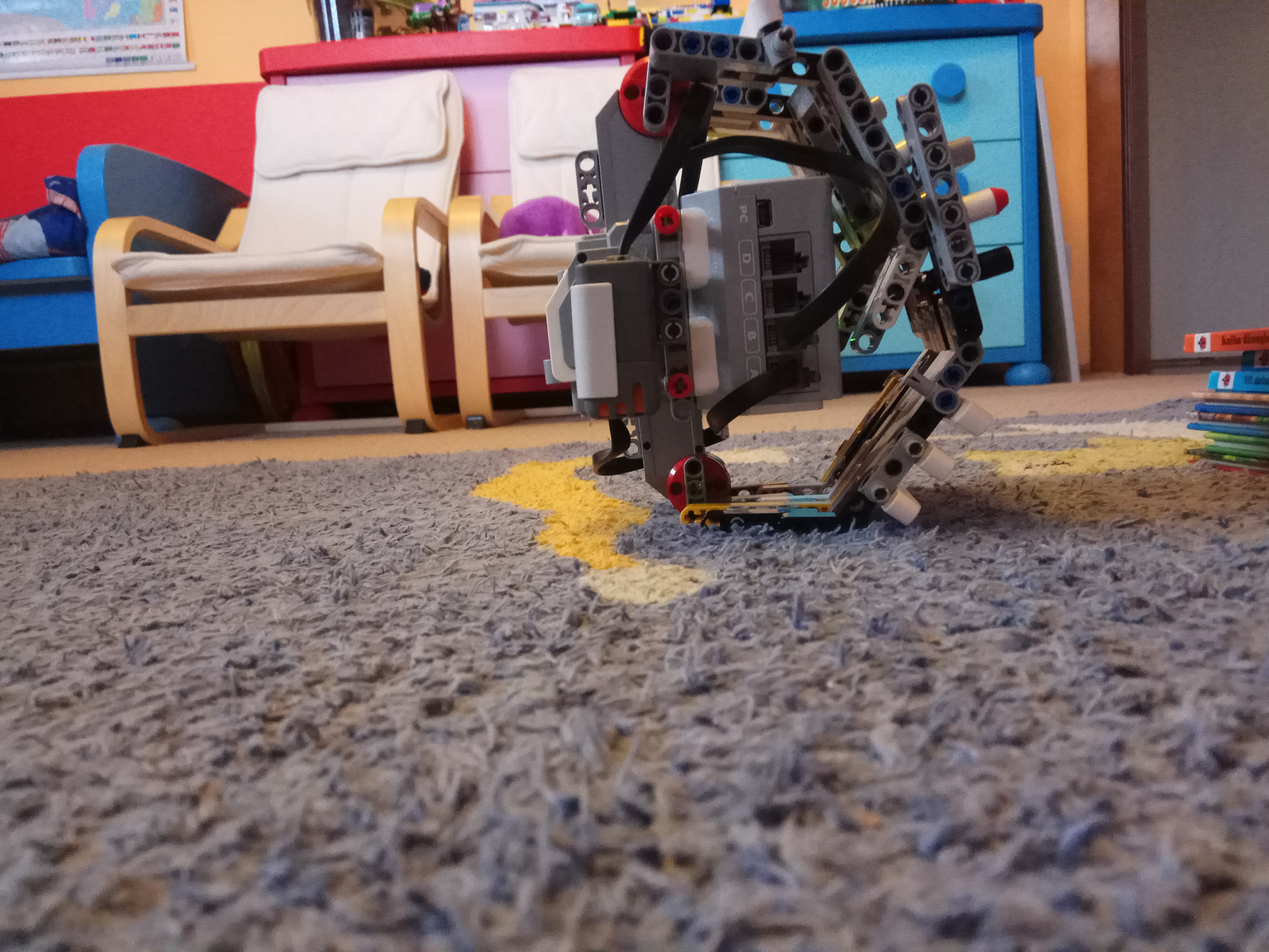 Robot má dve ramená, pri kotrmelci sa schúli do klbôčka a potom sa postaví (skoro☺).