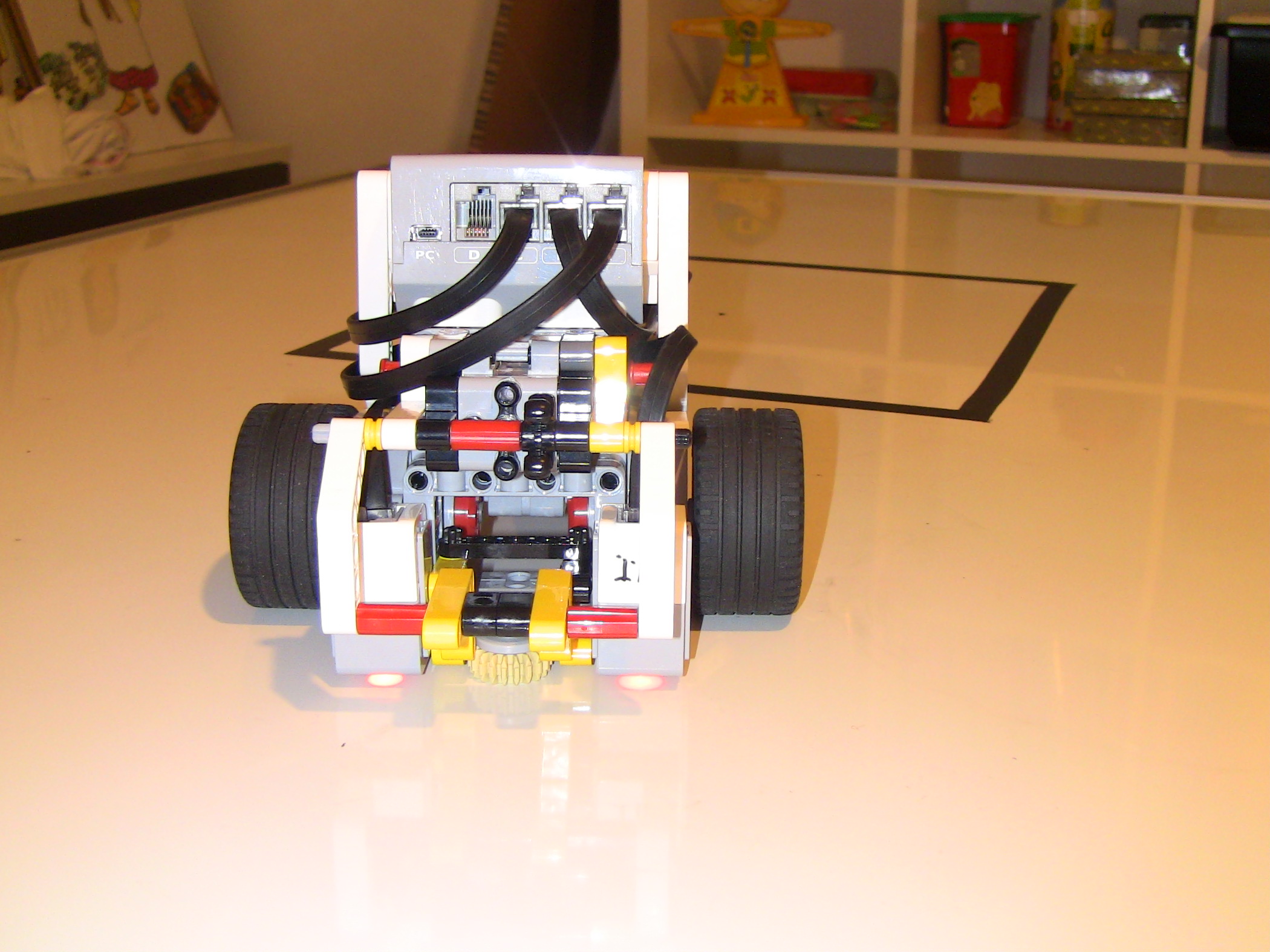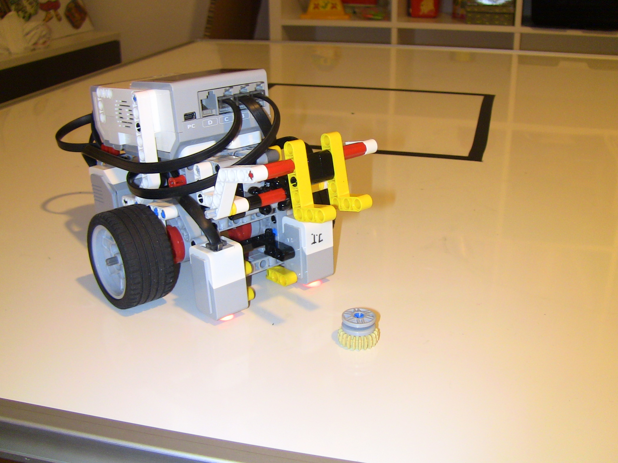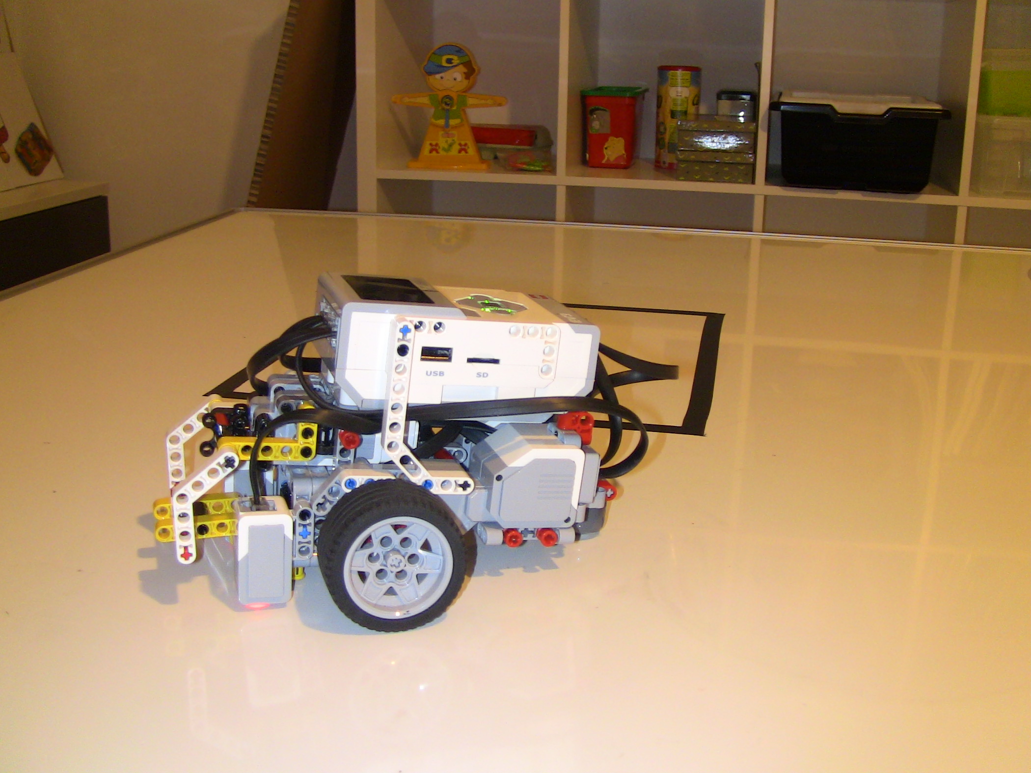 1. Za úlohu presné umiestnenie získavate 2,7b. Popis, video a program je v poriadku, ale chýba mi fotka tímu. Body: 2.7 2. Myslím, že tam máte zopár zbytočných pohybov, napríklad pri prvom určení stredu sa predsa nemusí robot vracať na základnú čiaru, už na konci by mal vedieť, o koľko má zacúvať. A ešte je škoda, že ste neukázali viac ako jeden prípad. Body: 2.2 3. Dobrá práca. Páči sa mi, že ste použili gyro senzor na otáčanie a nepoužívate pevnú hodnotu. Body: 3 4. Oceňujem hudobné osvieženie, ktoré robot vydáva. Viacnásobné premeranie vnútornej strany štvorca je zaujímavé, nie som si však istá, nakoľko prispieva k presnejšiemu výsledku. V konečnom dôsledku však ovca naozaj bola položená na stred. Bolo by zaujímavé vidieť na videu aj riešenie pre inú veľkosť štvorca. Body: 3 Celkový počet: 2.73