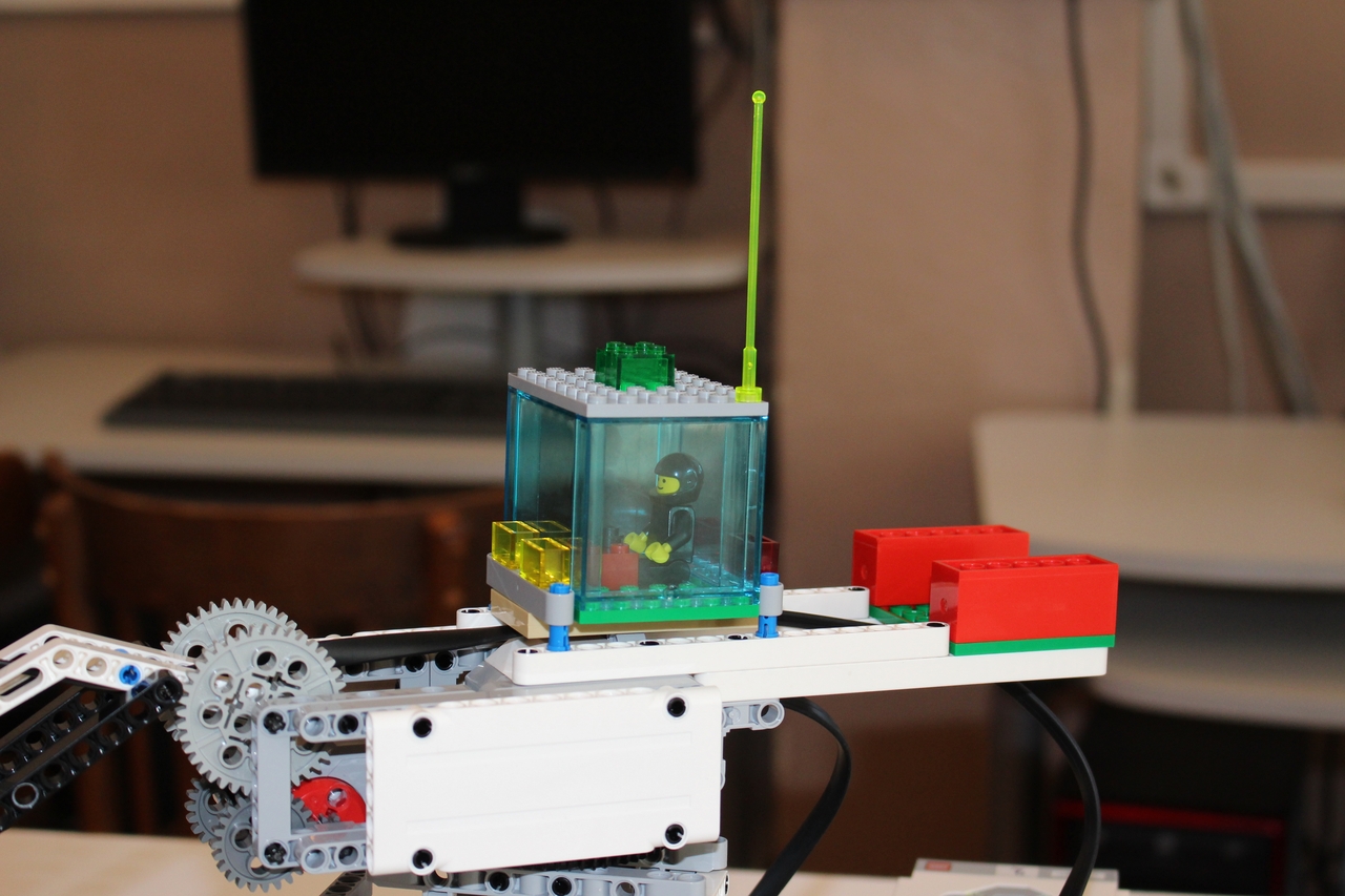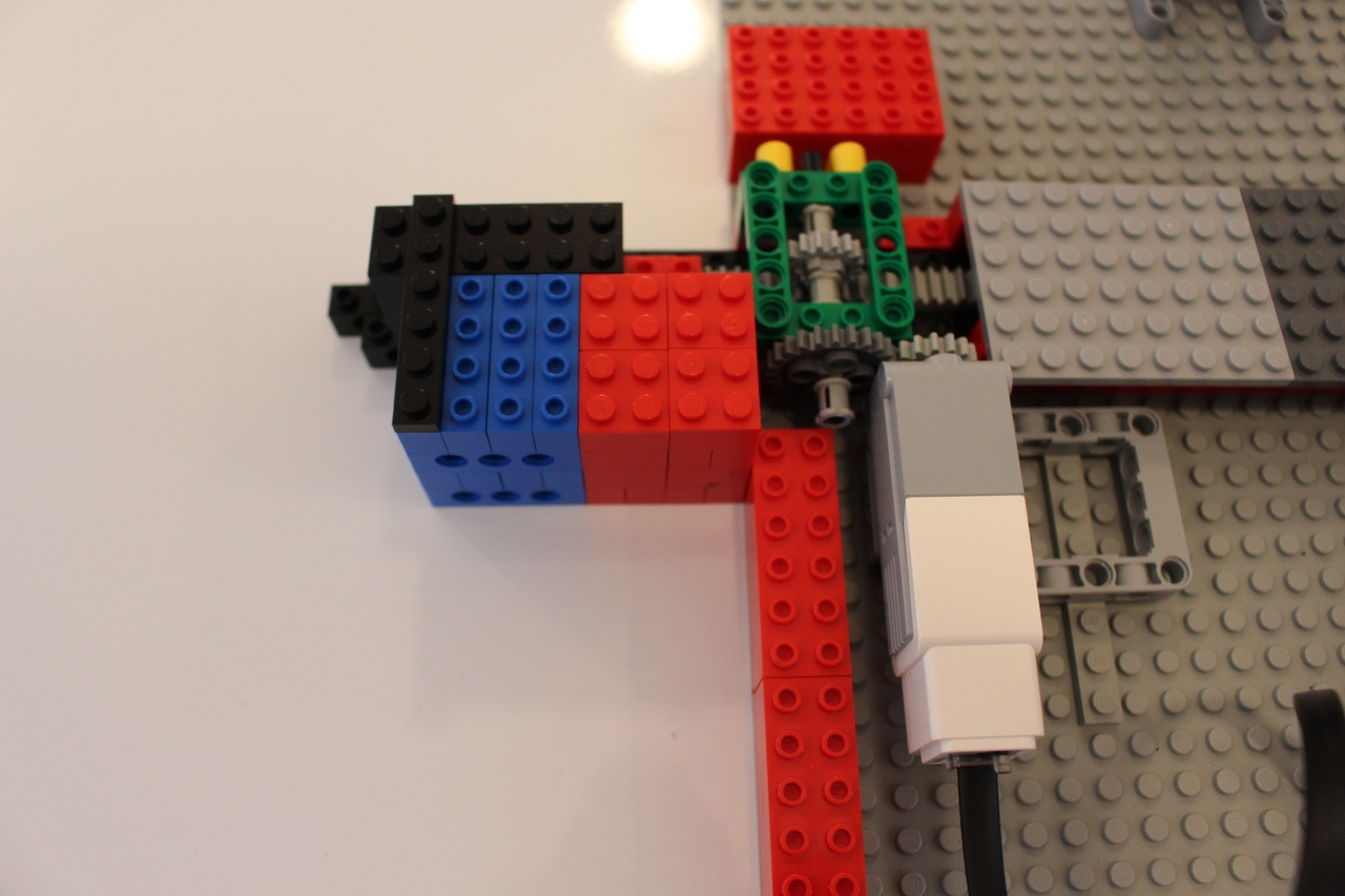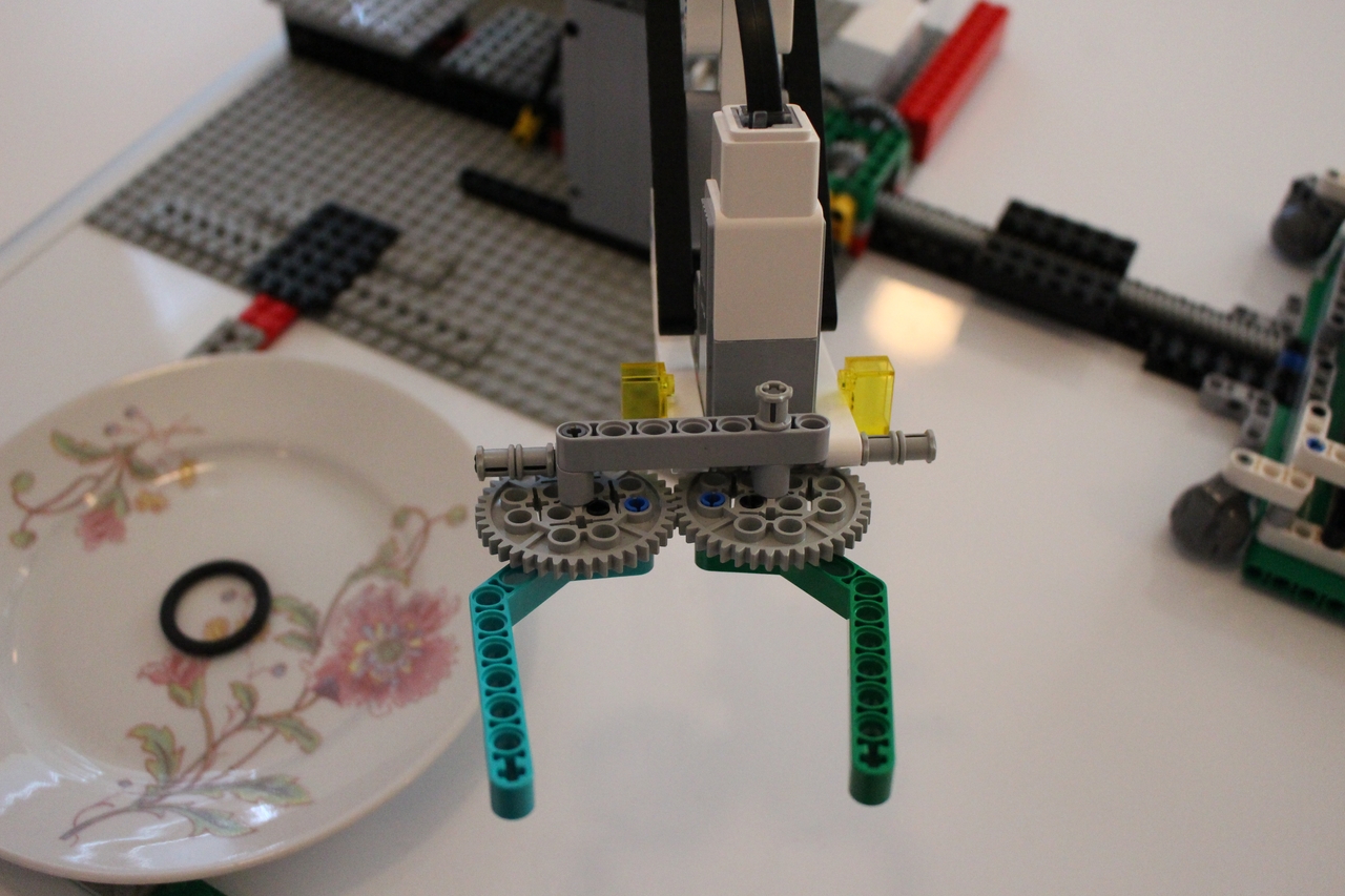 Pri tejto úlohe sme postavili robotický žeriav, ktorý ukladá vajíčka do krabičky. Využili sme 4 motory: