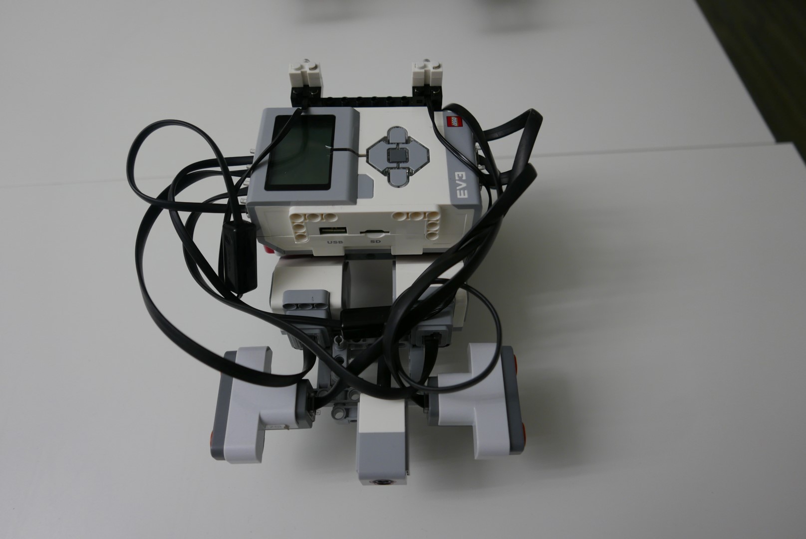 Prijímač dekóduje správu. Ak je údaj platný, tak skončí, ak je neplatný, skúsi čínanie a dekódovanie znova. Na čítanie jednotiek a núl som použil svetelný senzor. Prenos funguje maximálne na 8cm. Skúšali sme aj taký vysielací blok, ktorý motorčekom otáčal kocku a z každej strany mala inú farbu (to boly jednotky a nuly), ale fungovalo to iba na menšiu vzdialenosť a roboty sa museli úplne presne stretnúť. So svetlom je to spoľahlivejšie.