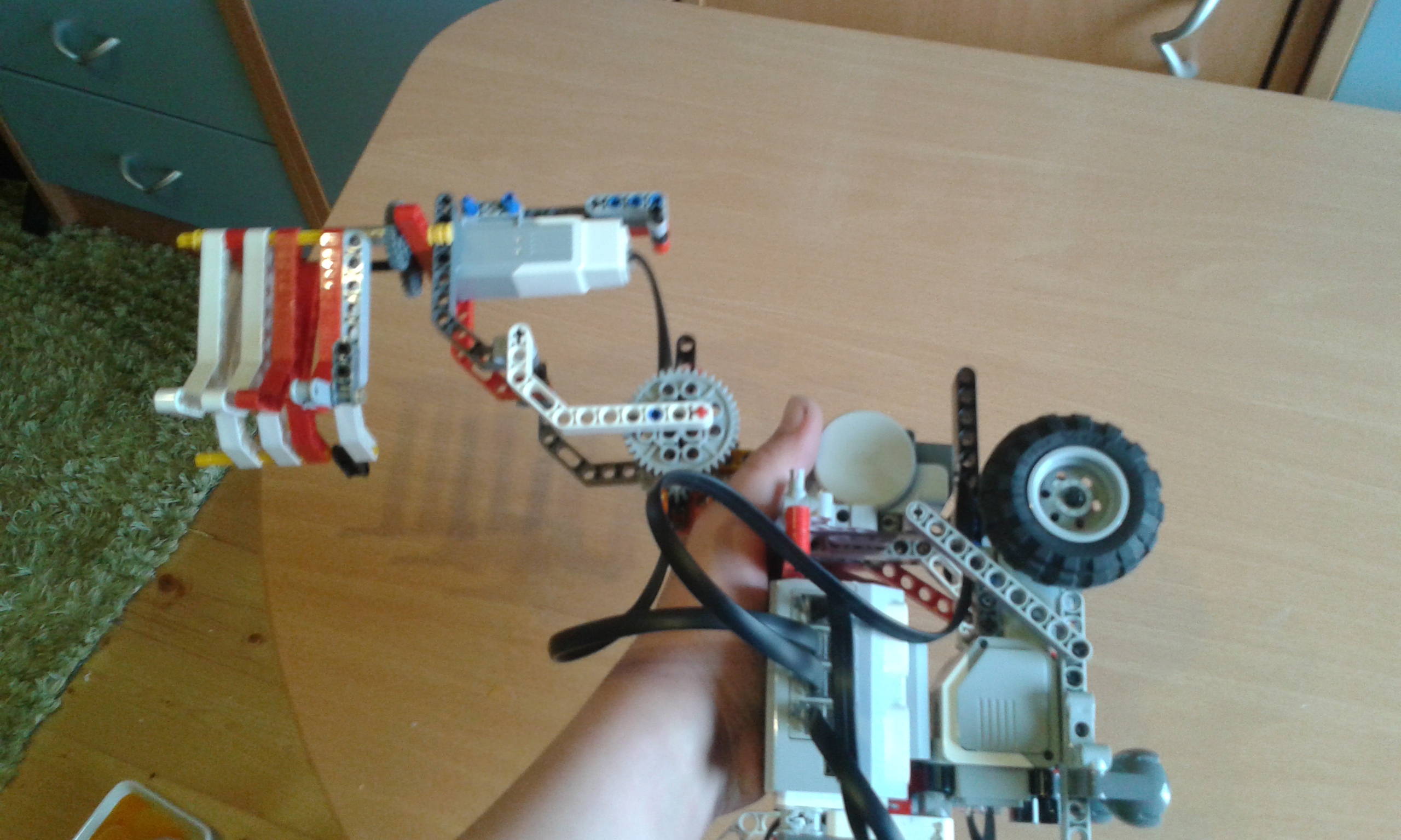 Robot má umiestnenú riadicu jednotku a vivažovací motor v zadnej časti robota na viváženie predu robota kôli 2 motorom na phib vajca. Má aj medium motor na otváranie a zatváranie čelustí . V zadnej časti čelustí je poistka ktorá otočí vajce tak abi správne dopadlo do nádobi na vajcia. Motor na zdvihanie vajec je napojení na prevod v pomere 5:1 kôli lepšej sile a presnosť.