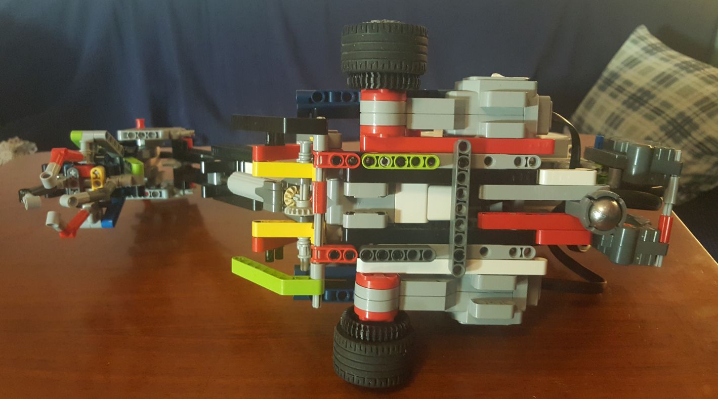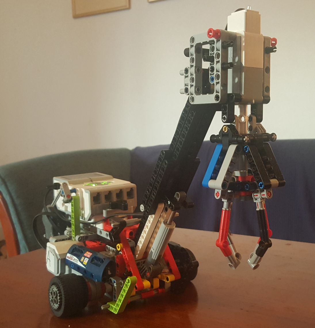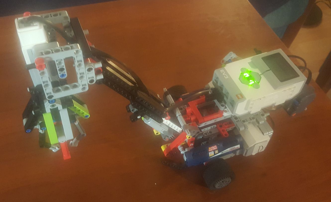 Robot má dva motory na pohon dopredu a dozadu + guličku namiesto zadných kolies. Má rameno na ktorom zvdíha chápadlo. Rameno sa zdvíha stredným motorom a chápadlo sa otvára a zatvára ďalším stredným motorom. Po každom vajíčku robot čaká na dokalibrovanie a spustenie ďalšieho cyklu stlačením klávesy. Keď skončí zaznie zvukový signál.