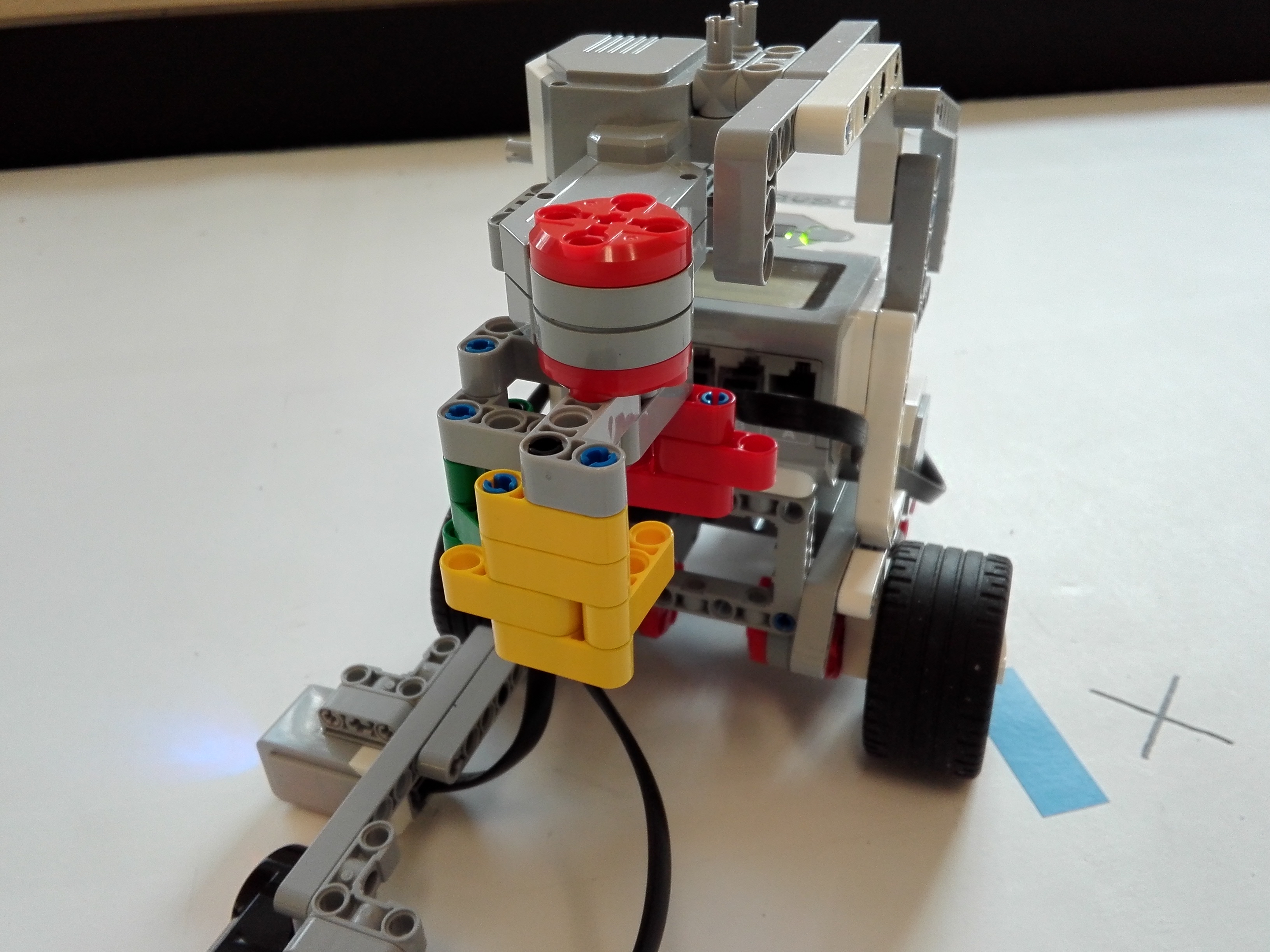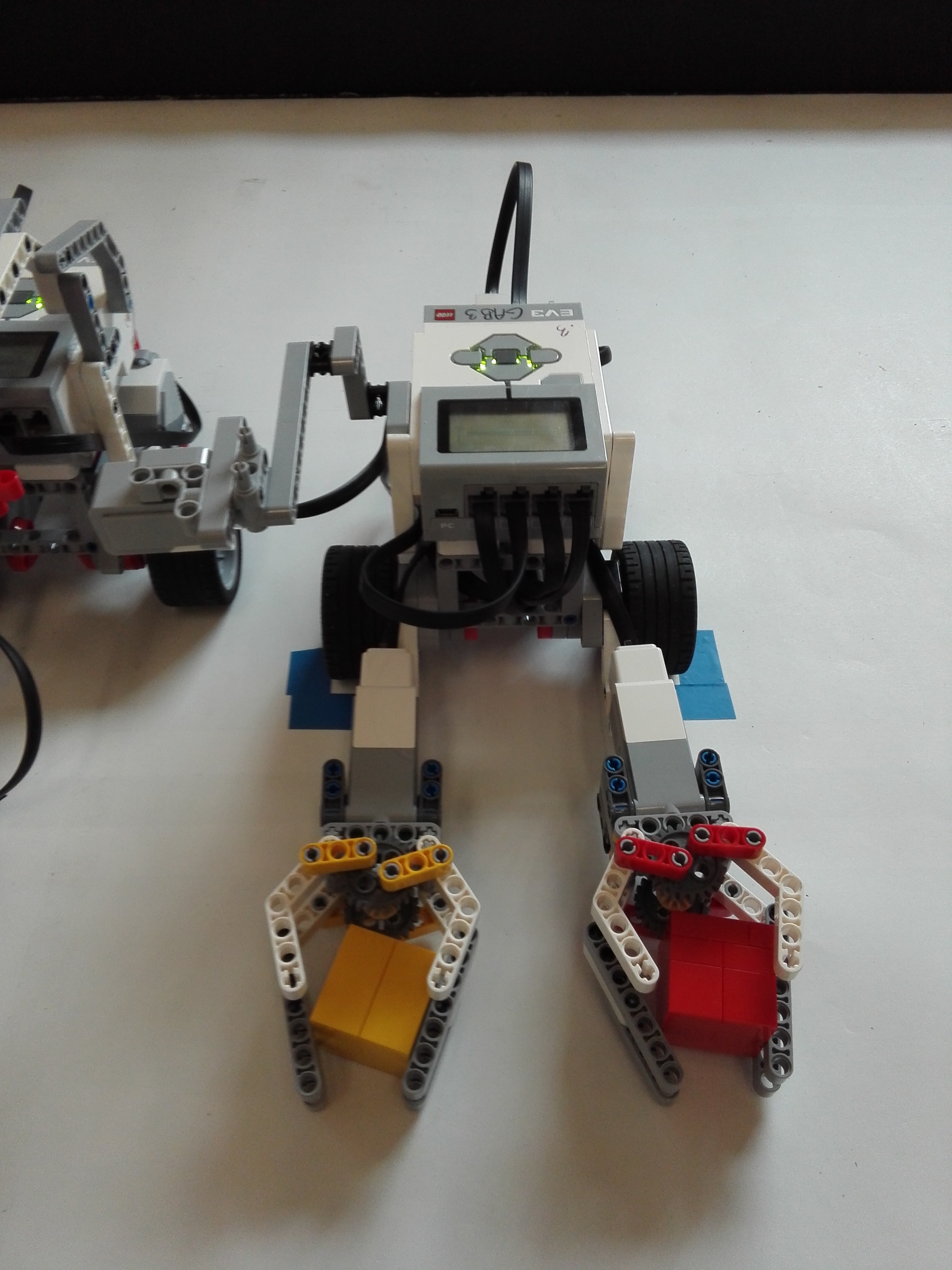 Poznámka: Použili sme červenú a žltú kocku, nakoľko sme nemali dostatok súčiatok modrej farby. Kocky snímané robotom I.T. majú polovičnú hĺbku, sú to len také "steny" :-)