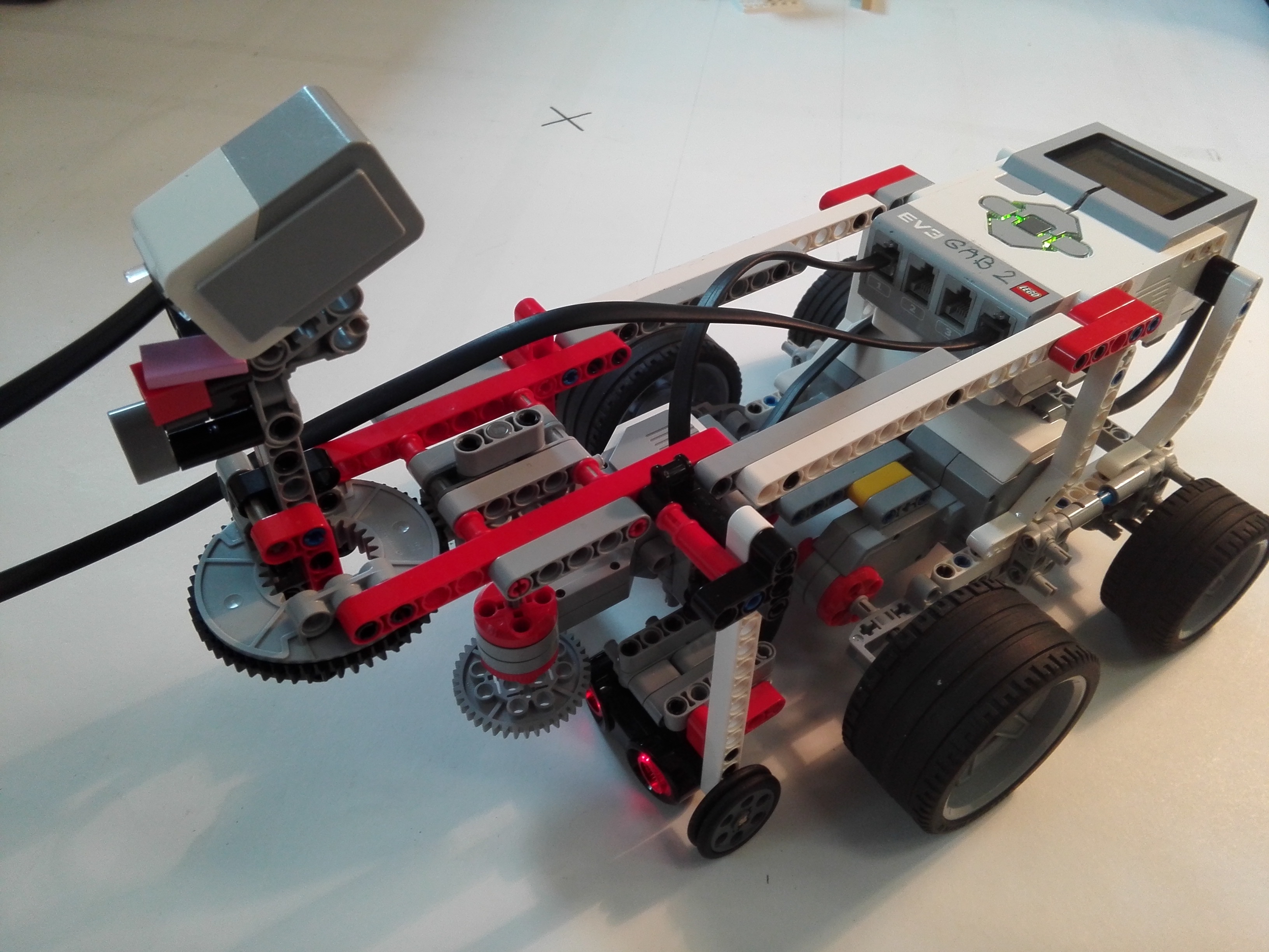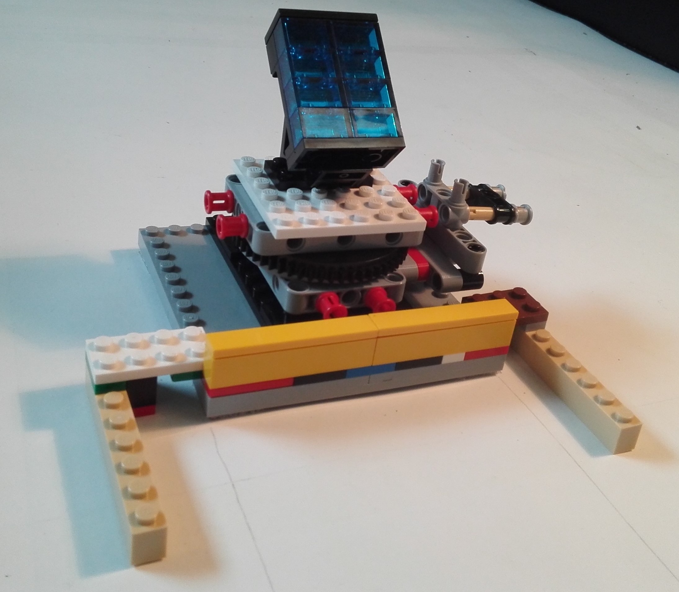 Robot má 3 motory a 2 senzory. 2 veľké motory slúžia na pohon 2 kolies z 6 (2 malé predné sú pomocné - na udržanie stability). Tretí motor roztáča sústavu dvoch rovnako veľkých ozubenýck kolies. Prvé z nich sa napája na ozubené koleso panela a druhé sa napája na veľké ozubené koleso farebného senzora. Vďaka tomu sa farebný senzor dokáže otáčať zároveň s panelom a tak zaznamenávať, kedy zachytí Slnko. Ďalší senzor je ultrazvukový, ktorý zisťuje vzdialenosť medzi robotom a panelom.