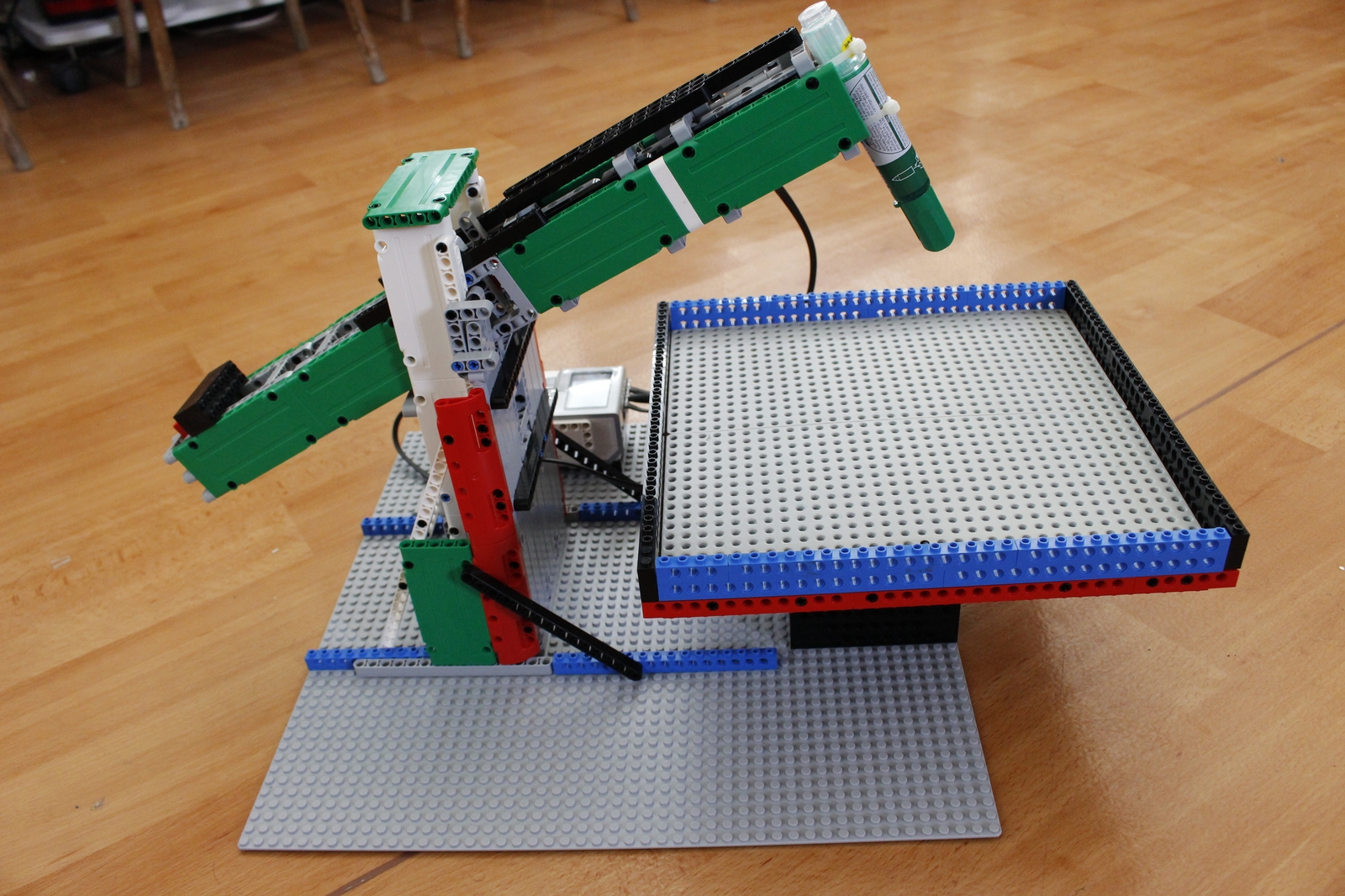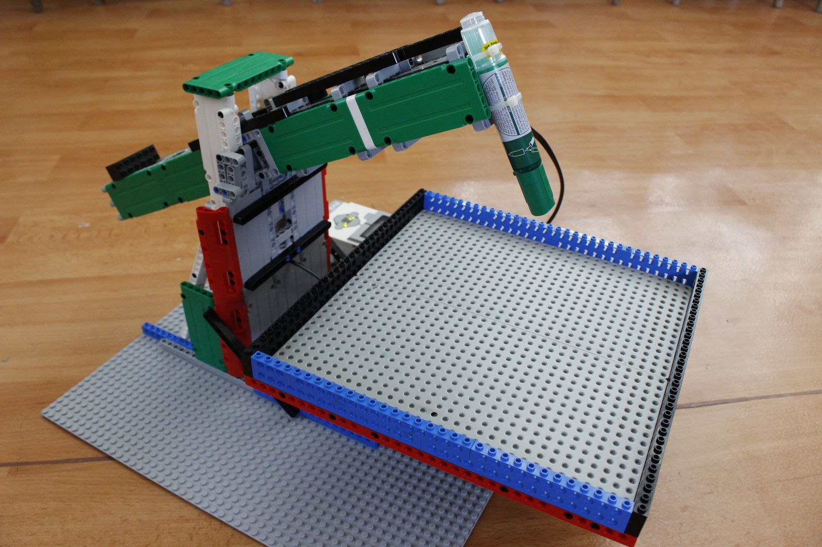 1. Po zapnutí programu sa rameno s fixou zodvihne a robot čaká na stlačenie dotykového snímača.