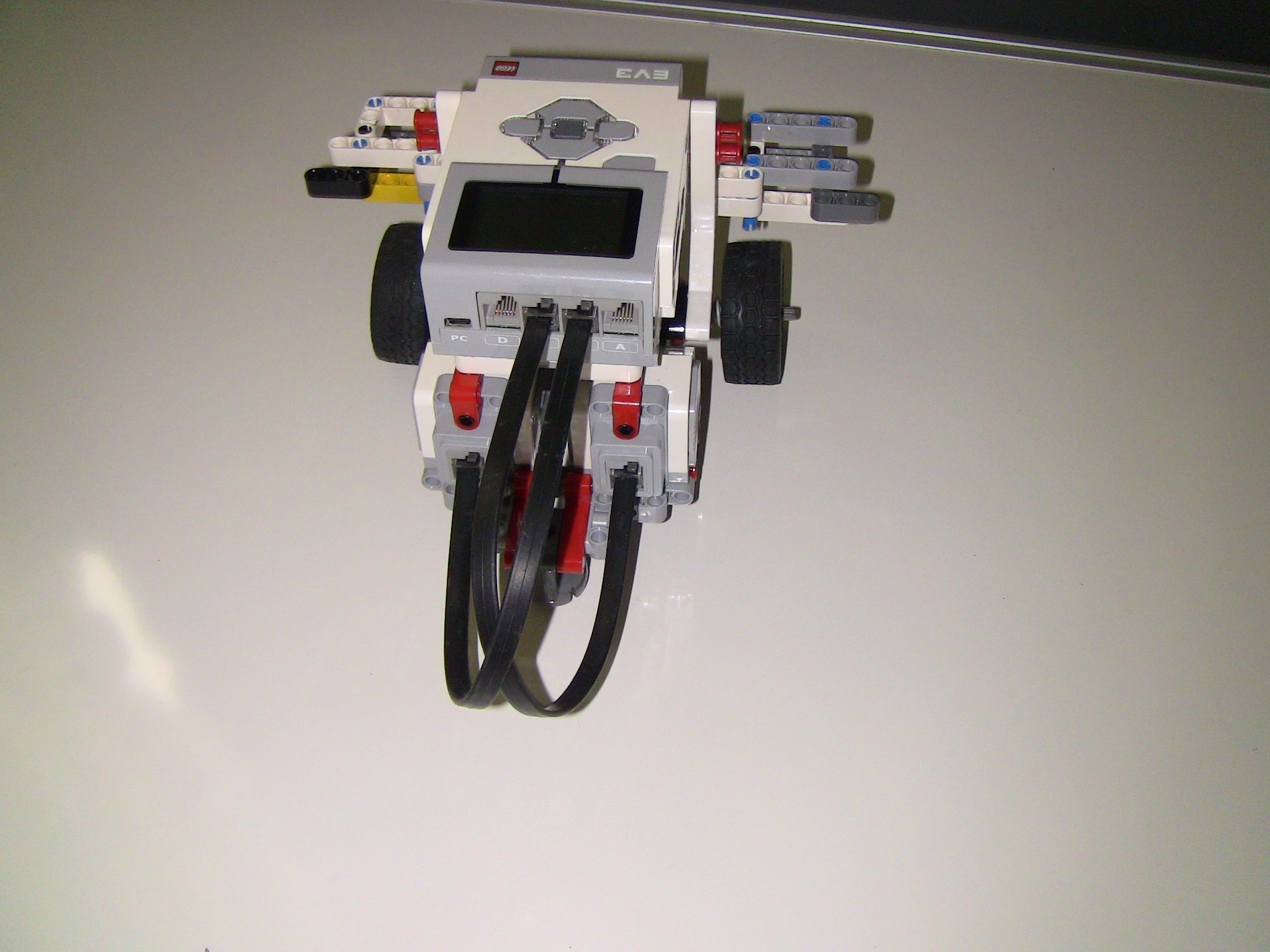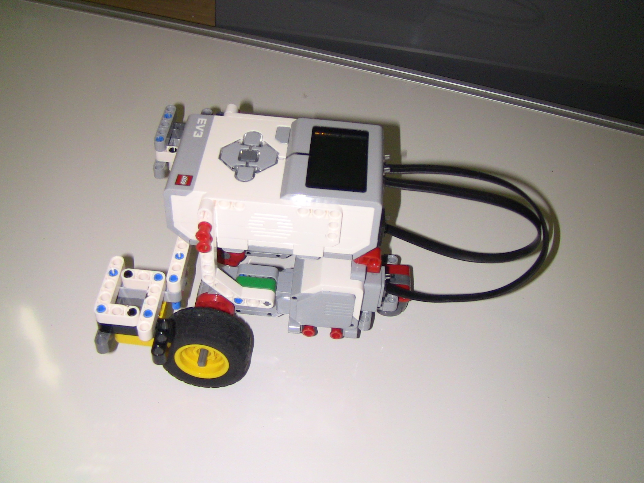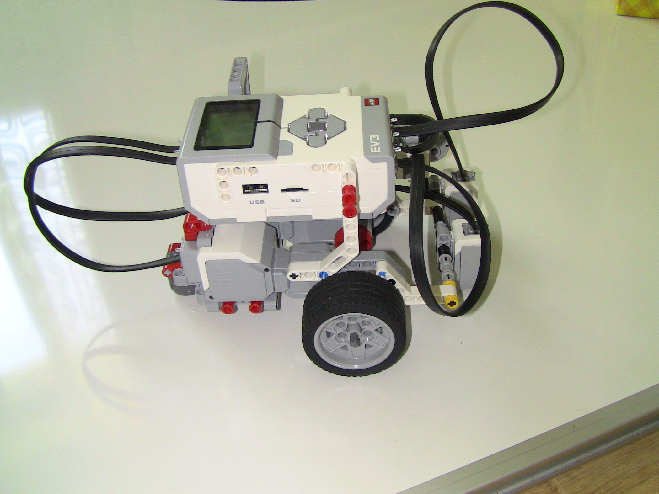 Na splnenie ulohy sme si postavili jednoducheho rovera a pridali v predu dva svetelne sensory a na bok jeden ultrazvuk.