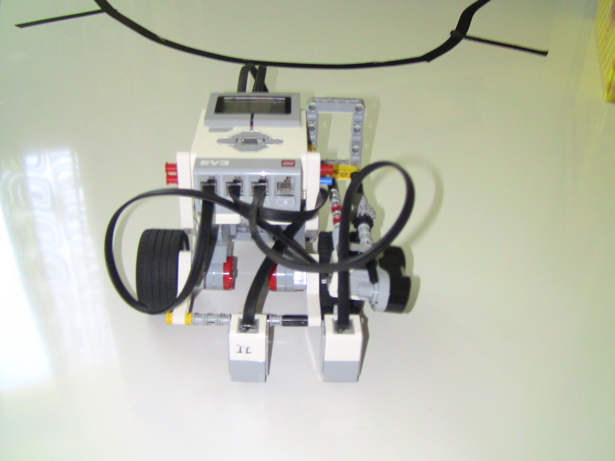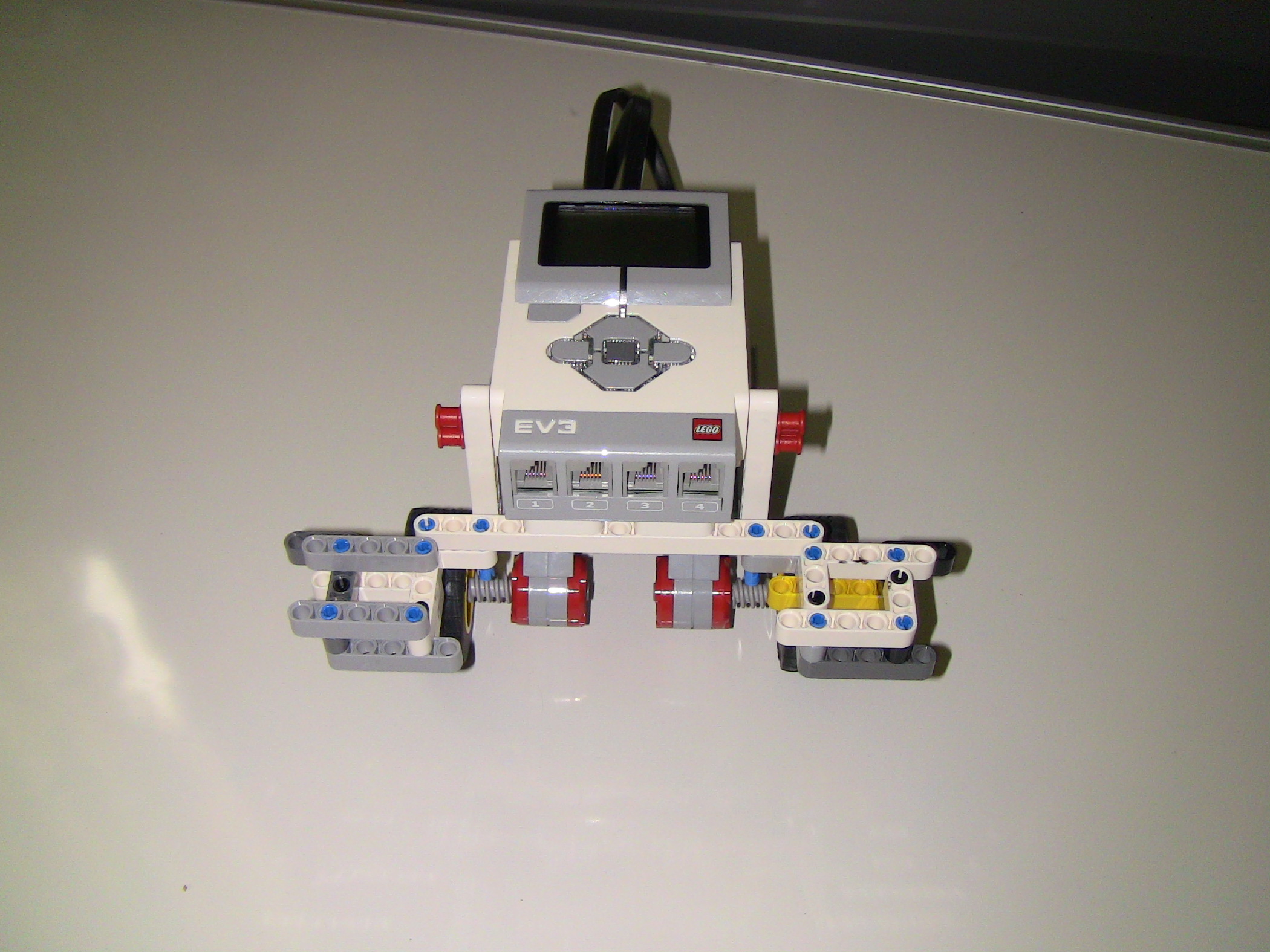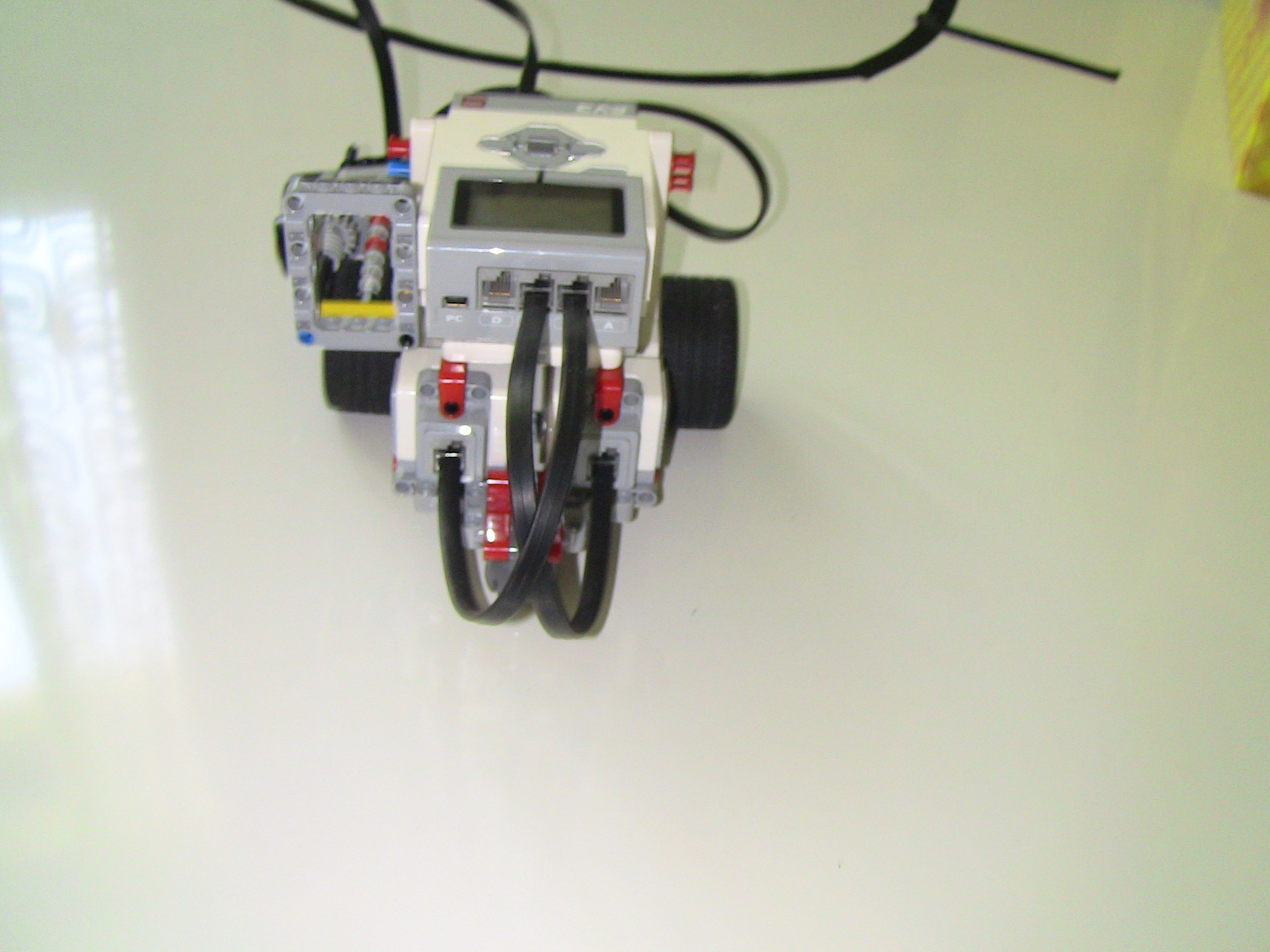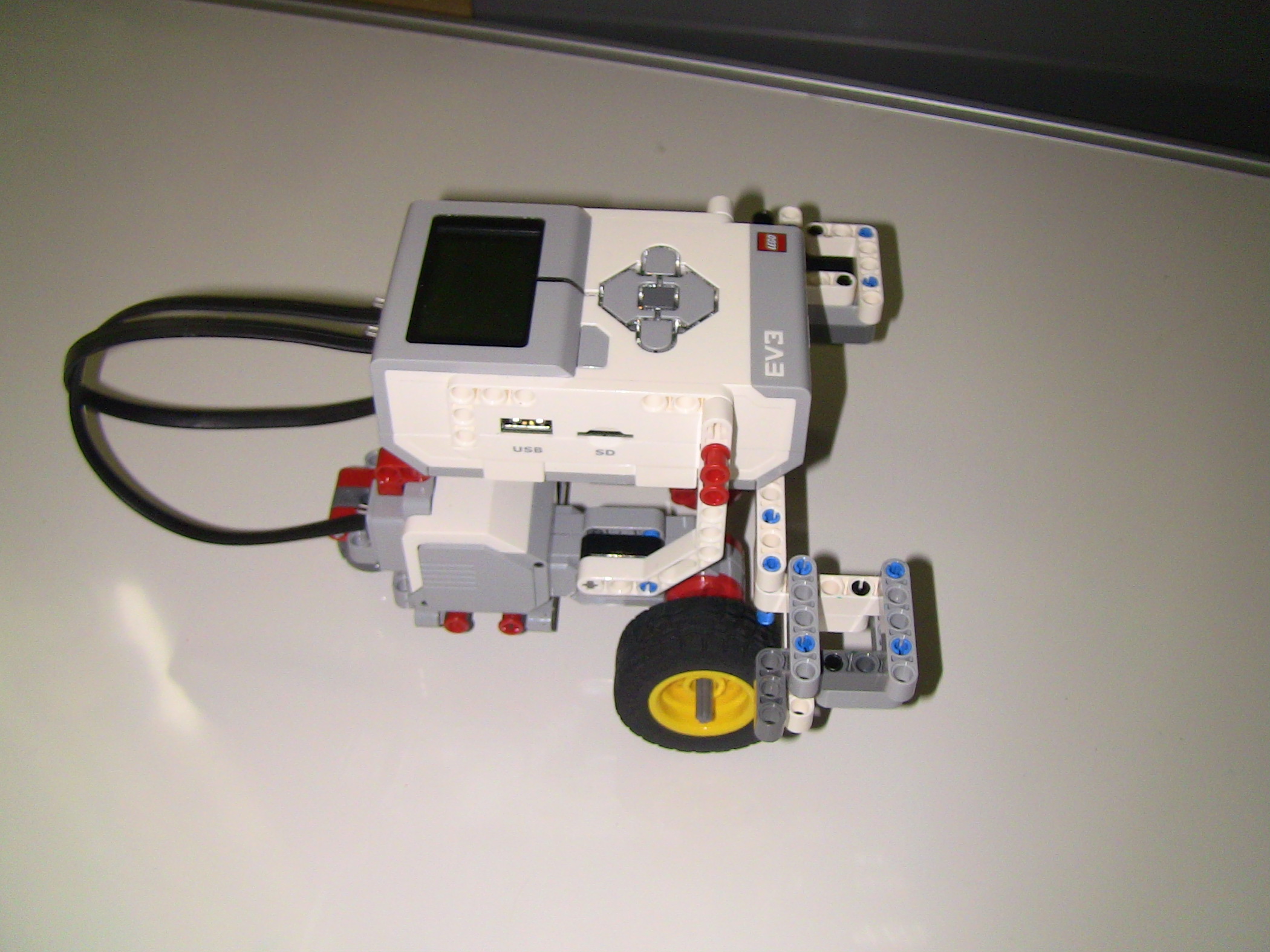 Na splnenie ulohy sme si postavili jednoducheho rovera a pridali v predu dva svetelne sensory a na bok jeden ultrazvuk.