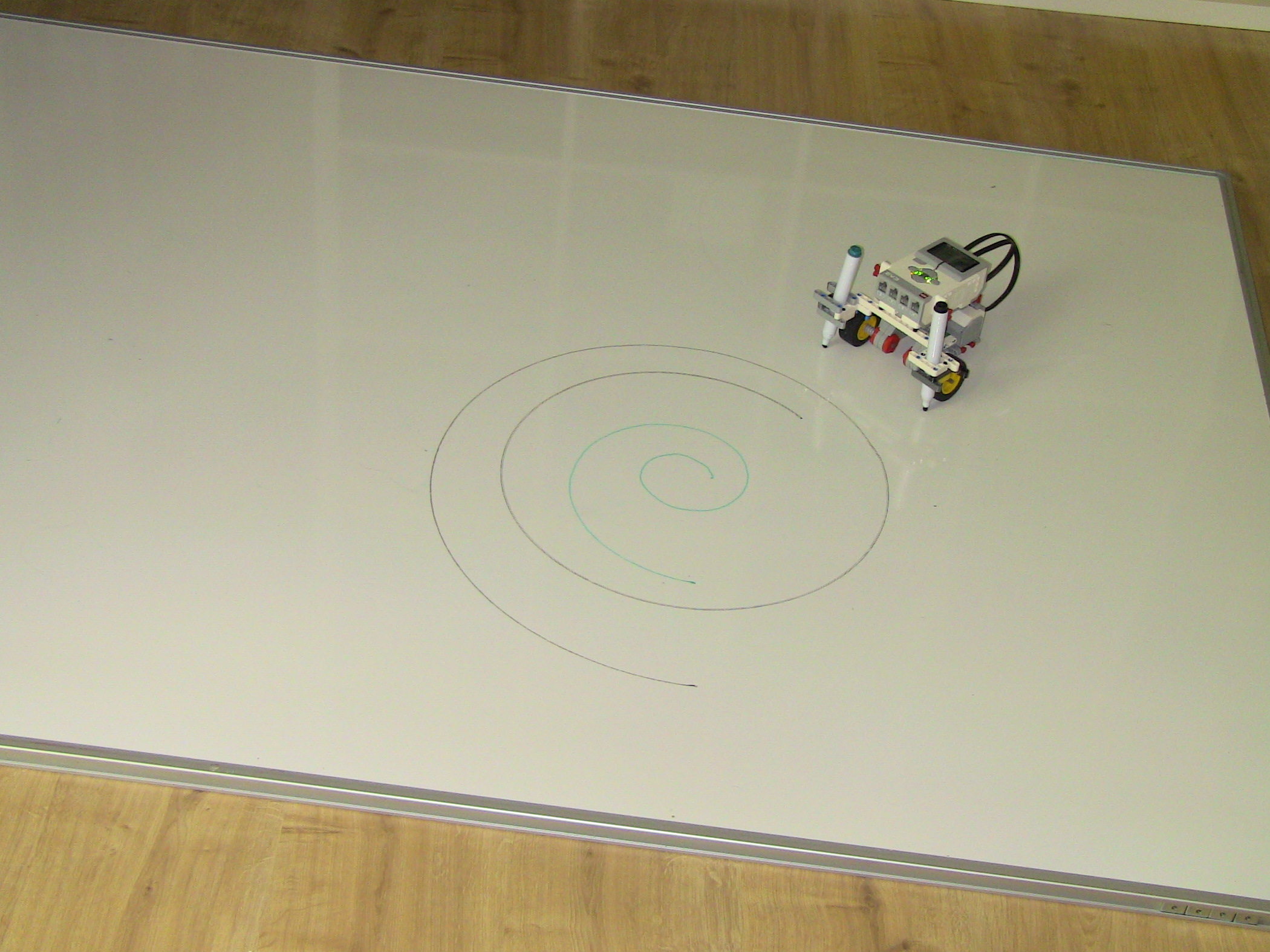 1. Za úlohu kreslenie špirály získavate 3b. Popis, fotky, program aj video je OK. Odporúčala by som nechať robota dlhšie spusteného nech je vidieť špirálu s viacerými závitmi. 2. Jednoduché a účinné. Ale mohli ste nakresliť aj viac ako jednu... 3. Zaujímavé, kresliť dve rôzne veľké špirály naraz. Podľa zadania mala mať špirála viac záhybov. Tešíme sa na vaše ďalšie riešenia :) 4. Pekne spravené. Polomer špirály sa pekne zmenšuje.