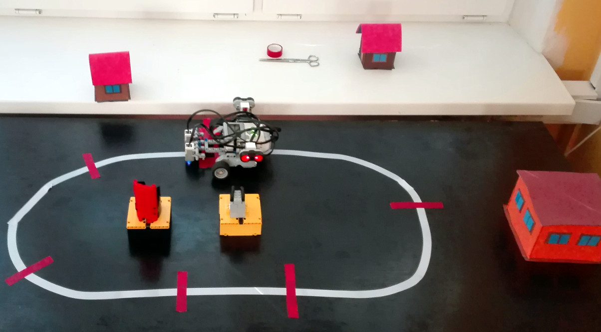 V prvej jazde si robot zapamätá či na označených miestach má predmet vľavo aj vpravo. Pri druhej jazde zašteká pes, ak niečo zmizlo.