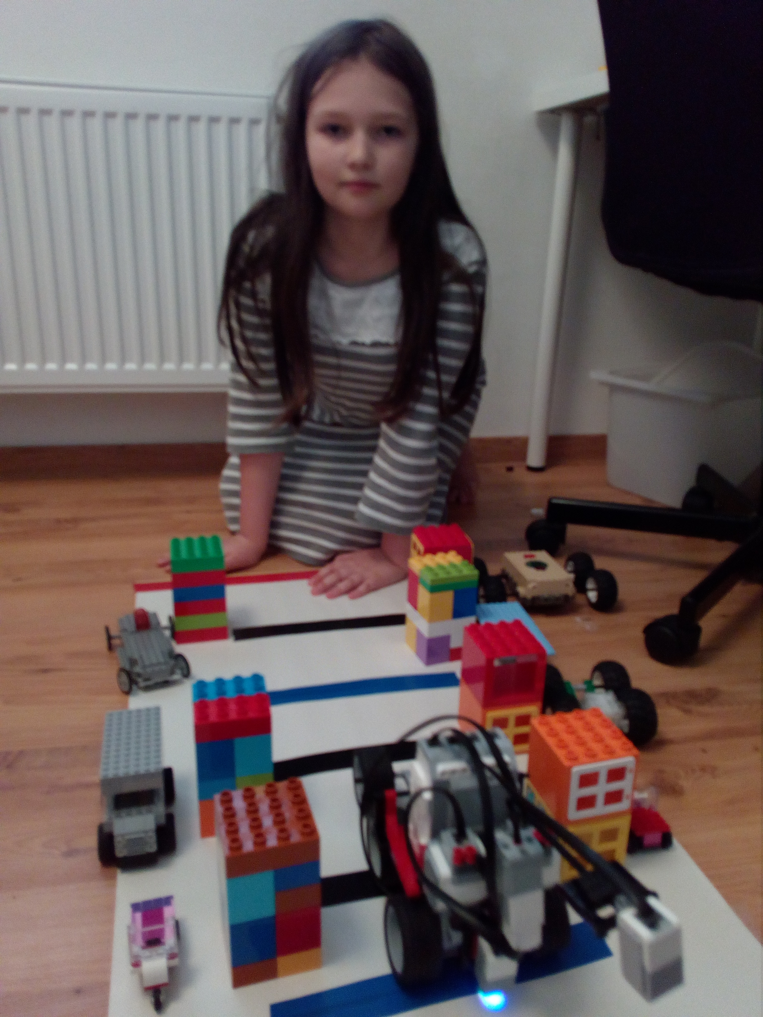 1. Za úlohu strážca múzea získavate 2,2b. Popis je podrobný, fotky sú dostatočné a program je tiež OK, ale riešenie nie je v súlade so zadaním napr. robot sa nepohybuje po uzavretom okruhu. 2. V zadaní bolo celkom jasne napísané, že robot sa má pohybovať po nejakom okruhu. Dobre, zjednodušili ste si to. Ale nerozumiem celkom správaniu robota. Na prvom videu som celkom nepochopil, prečo ste zobrali skoro všetky exponáty preč. Zrejme tam chýba nakrútená časť, kde sa robot učí. Na druhom videu vydáva rozličné zvuky, pričom zvukov je viac ako exponátov. Niektoré cenné exponáty dokonca rozbije! Posledné dva exponáty zabudol skontrolovať. Myslím, že hoci ste podstatu úlohy pochopili, ešte bolo treba trocha popracovať na jej zdokonalení a na tom, aby bolo riešenie aj spoľahlivé. 3. Robot sa má v prvom rade pohybovať po uzavretej čiare, teda po čiare, čo vo vašom prípade nie je veľmi splnené. V druhom rade som asi celkom nezachytila na videu, kedy robot spúšťa alarm. Možno by to celé trvalo kratšie, ak by robot už počas jednej cesty kontroloval objekty na jednej aj na druhej strane. 4. Pekne spravené, ale robot sa mal pohybovať po uzavretej čiare.