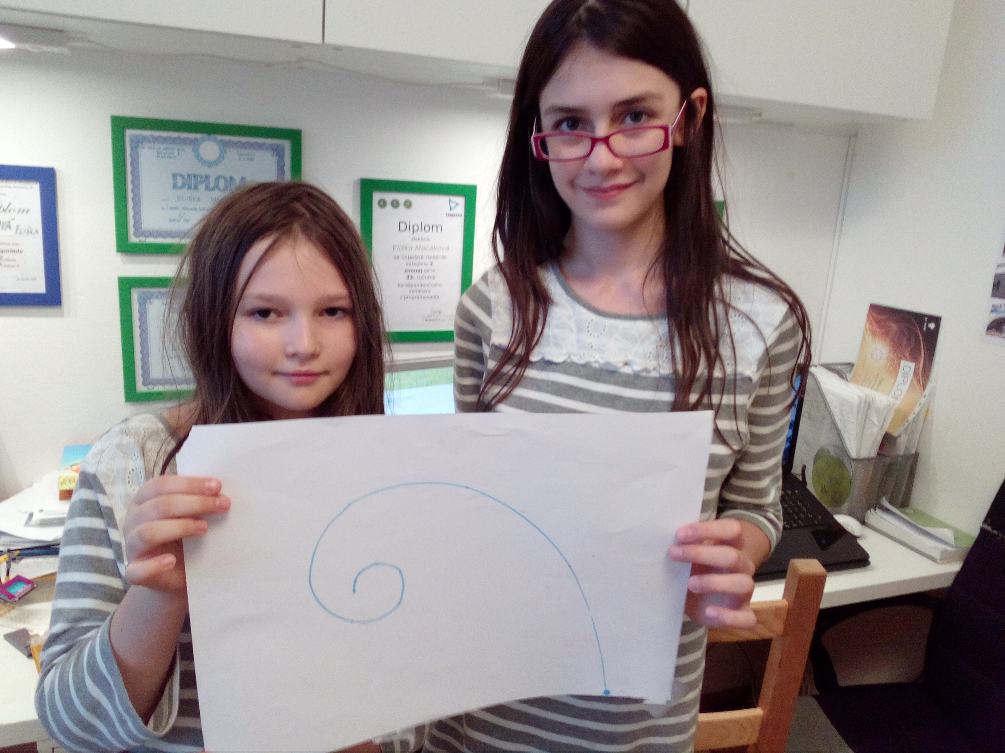 1. Za úlohu kreslenie špirály získavate 3b. Špirála je po estetickej stránke dokonalá. 2. Robot je síce jednoduchý, ale spoľahlivo kreslí, je to pekné riešenie. Jediná malá vada na kráse je, že v zadaní bolo niekoľko závitov, pričom 1,5 závitu je predsa len trocha málo. 3. Škoda, že ste pri prvom pokuse nezdvihli robota, nebolo vidno poriadne špirálu. Robot vyzerá byť jednoduchý, ale funkčný. 4. Dobrá práca.