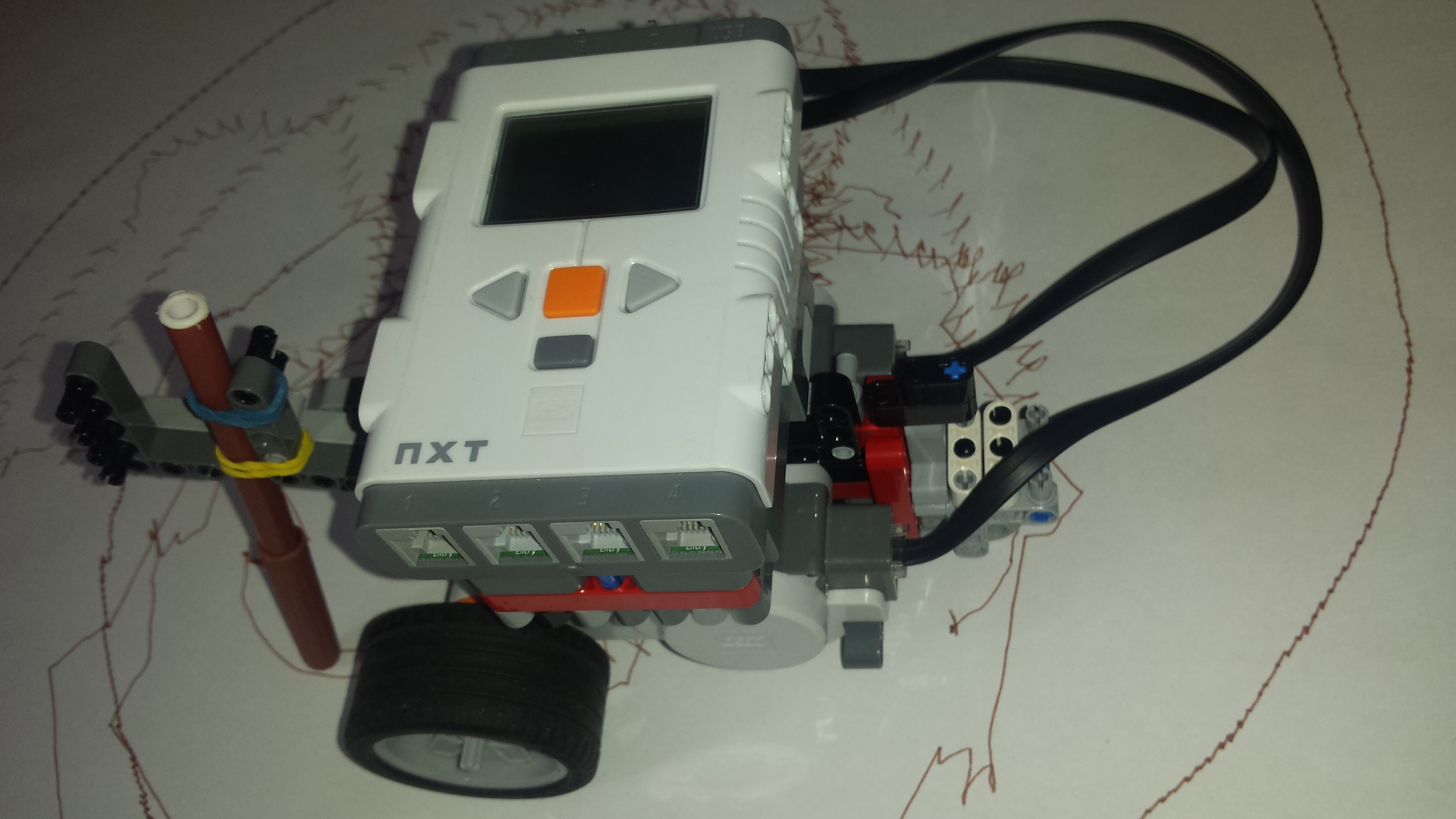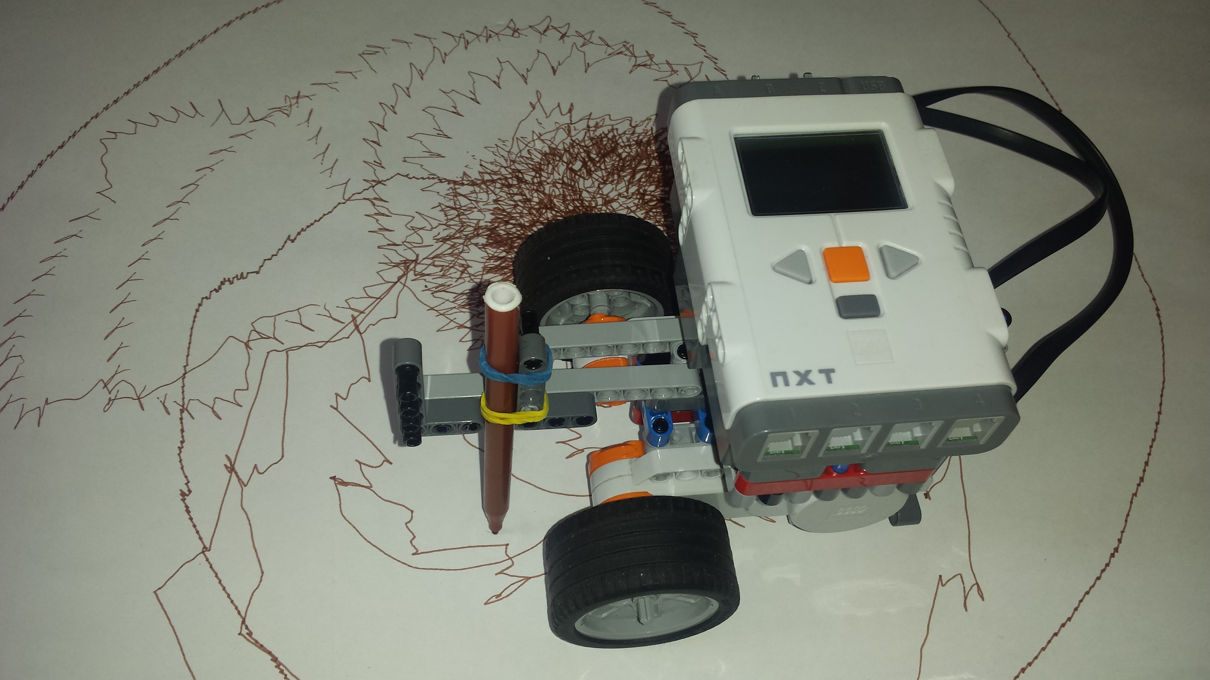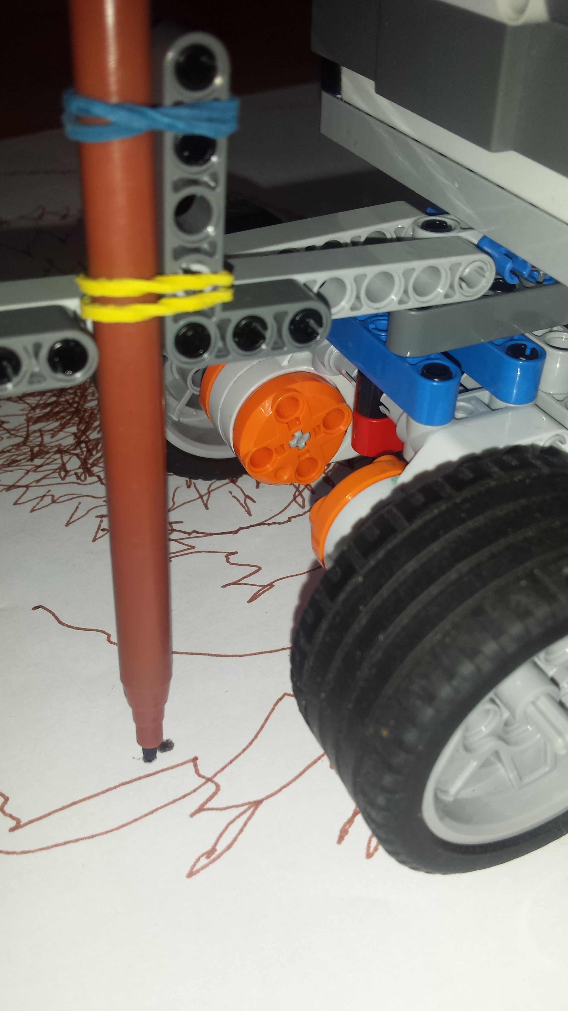 robot sa skladá z dvoch veľkých motorov a z riadiacej jednotky NXT. Ďalej má kyvné rameno, na ktorom je prigumičkovaná fixka, ktorá sa na papier zľahka pritláča vlastnou váhou.