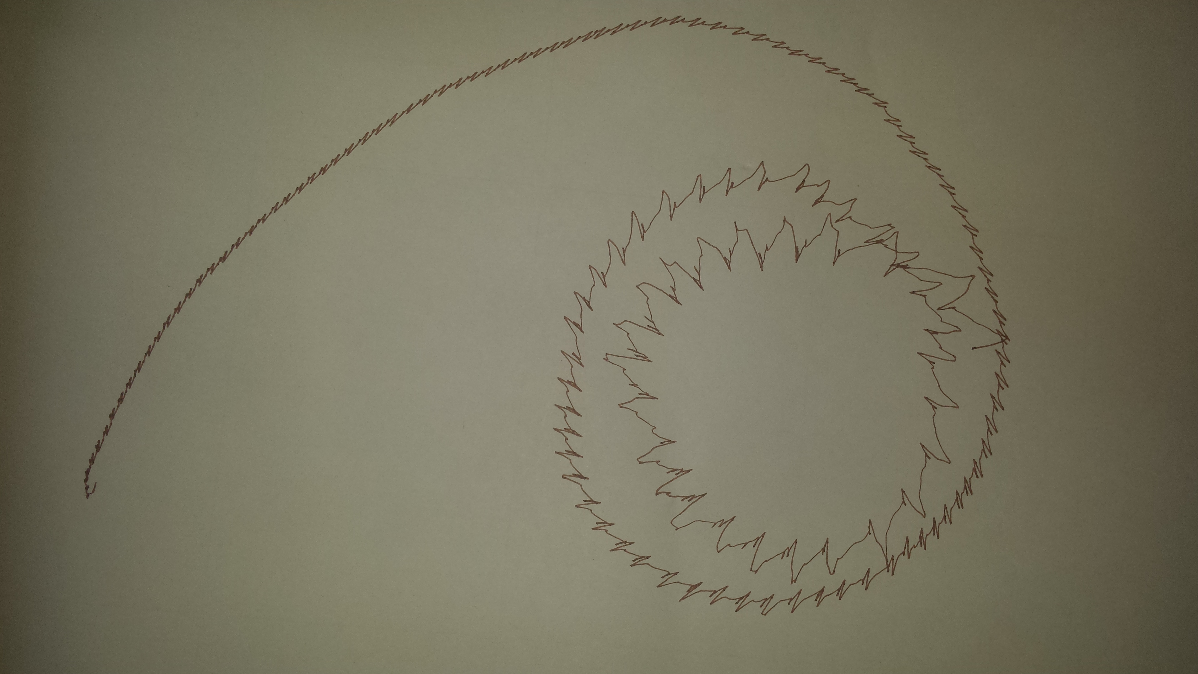 1. Za úlohu kreslenie špirály získavate 2,2b. Popis aj fotky sú v poriadku, ale riešenie nespĺňa zadanie úplne, predsa len je tam napísané "Špirála by mala mať niekoľko závitov". 2. Zubaté špirály vyzerajú naozaj zaujímavo. 3. Medzi obrázkami máte nahraný jeden obrázok, na ktorom je takmer špirála, ak odhliadnem od toho, že je celá "zúbkovaná" a na konci vybieha z dráhy .... tak by sa aj dala uznať, avšak na videu nie zaznamenané, ako ju váš robot nakreslil. Na videu nemáte žiaľ ani jednu dokončenú, či s viac závitami, čo bola podmienka v zadaní. Sú tam len akoby zákruty, podľa zadania však mala mať špirála aspoň niekoľko závitov. 4. Pekne spravené. Polomer kružnice by sa mohol zmenšovať rýchlejšie, napríklad vždy o polovicu.