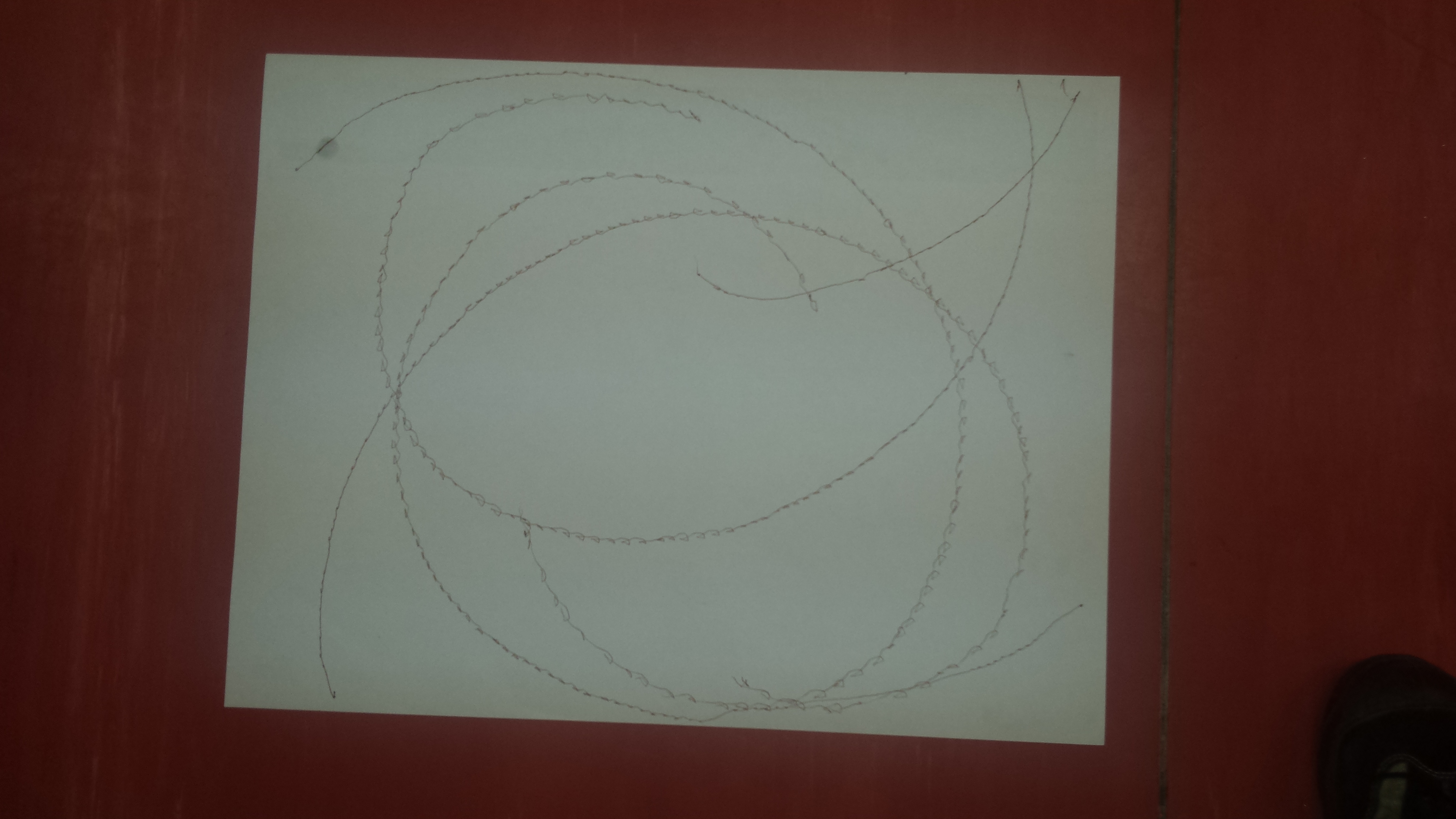 Robotovi pripravíme fixku na kreslenie, postavíme ho na papier a odštartujeme ho. Robot prejde po predprogramovanej trase. Niektoré tvary špirály vznikajú poskakovaním robota pri dobrzďovaní, pretože je vysoký. Robota sme ale ani neprestavali, ani nespomalili, lebo sa nám to páčilo a tak sme túto vlastnosť robota využili v náš prospech.