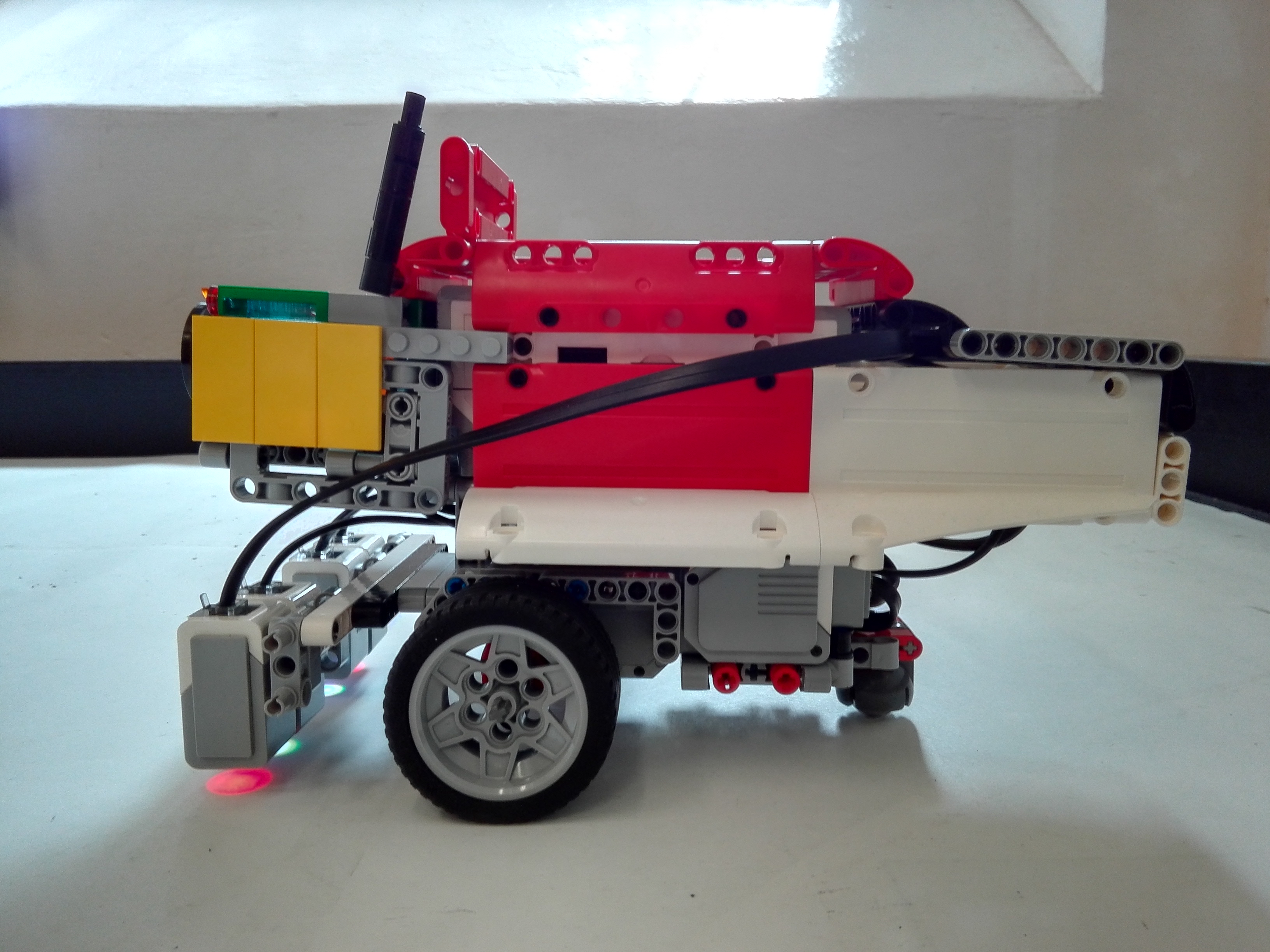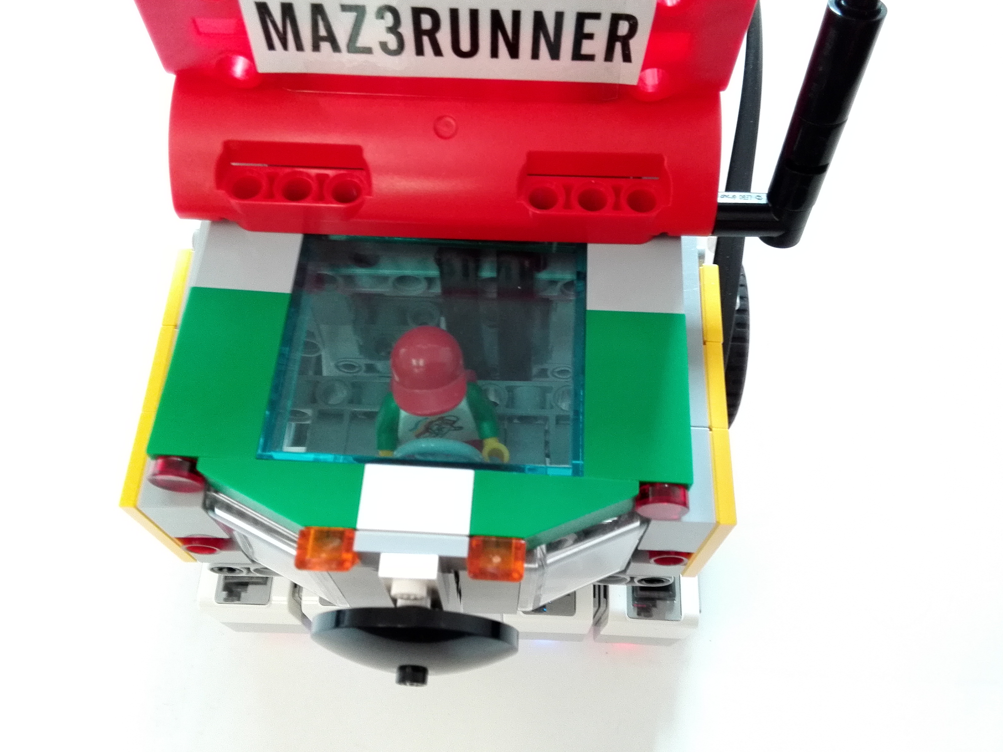 Konštrukcia robota: Robot MAZ3RUNNER má 2 motory a 4 senzory. Dva motory slúžia na pohon predných kolies, robot má vzadu ešte kovovú guličku. Vpredu má 4 senzory, umiestnené vedľa seba, ktoré snímajú farebnú pásku. Dva vnútorné sledujú čiaru a hľadajú v bludisku cieľ, 2 vonkajšie identifikujú a rozlišujú križovatky a zákruty. A tak sa robot orientuje v bludisku. Robot je ešte dekoratívne obrnený a vpredu má presklenú kabínu, pričom vnútri je náš šofér Joey s volantom a stoličkou. Joey má vpredu imaginárny počítač ako v tanku a tak vidí pred seba. Na streche je výfuk a nápis MAZ3RUNNER :-)