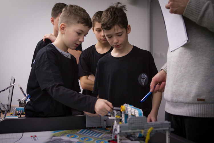 Spoločné poznámky pre všetkých: viacerí si neprečítali zadanie poriadne: robot mal vojsť do štvorca so stranou 25cm a ihrisko nemalo byť ohraničené čiernou ani inou čiarou - ak ste ju použili iba na znázornenie okrajov, tak fajn, ale nemala byť použitá na detekciu okraja. Áaa, biela plocha mala byť na podlahe, ale to nie je také podstatné. :-) Lazy Robots: Tá hudba je zlatá i celé Vaše riešenie je dobrý kus práce. S takým zanieteným tímom, ako máte Vy, musí byť radosť pracovať. Dúfam, že sa zasa čoskoro stretneme na nejakom ďalšom podujatí. Vydržte naďalej, vidím vo Vás velký potenciál. :) Rozhodcovia Vaše riešenie ohodnotili takto: 1. Za úlohu Minesweeper získavate 2,9b, pretože vo videu je hlasný podmas a nie je jednoduché zachytiť zvuk pri nájdení míny. Robot pracuje podla zadania takže pri nájdení míny sa viditeľne zastaví a vydá zvukový signál. 2. Úplne na okraji plochy ste hneď na začiatku nechali asi 3cm nepreskúmaný pásik. Pri otáčaní na konci riadku by vám robot asi vybuchol, musíte si skontrolovať aj plochu na ktorej sa otáčate, alebo sa ísť otočit von. Na videu to nie je celkom dobre vidno, ale zdá sa mi, že máte kolieska širšie ako je záber senzora, takže by robot vybuchol aj keby bola mína tesne vedľa senzora. Škoda, že sme na videu nevideli, či robot naozaj preskúma úplne celú plochu. 3. Super, že video zachytáva presun po takmer celej ploche. Zvučka v pozadí je impozantná, ale takmer úplne znemožňuje počuť, kedy robot pípol. Ešte že bliká. Problém by mohol nastať pre robota aj vtedy, keby na území poľa, kde sa otáča bola mína … Veľa zdaru do ďalších kôl!