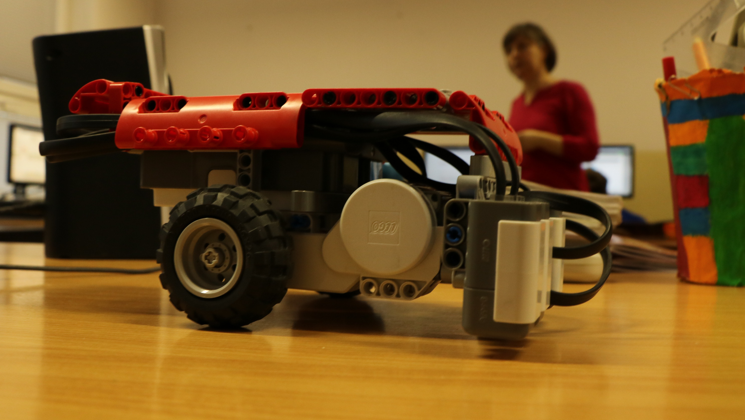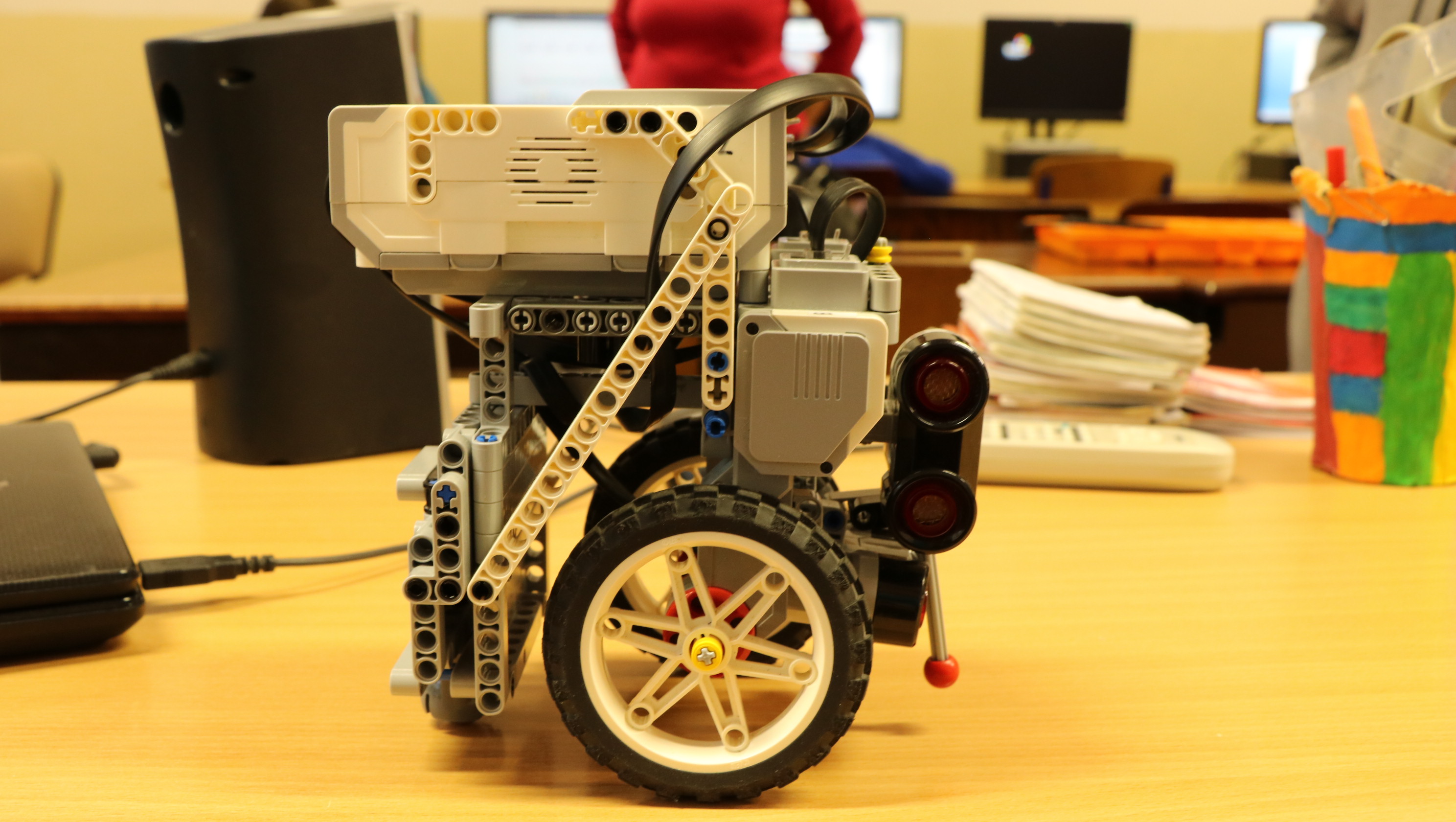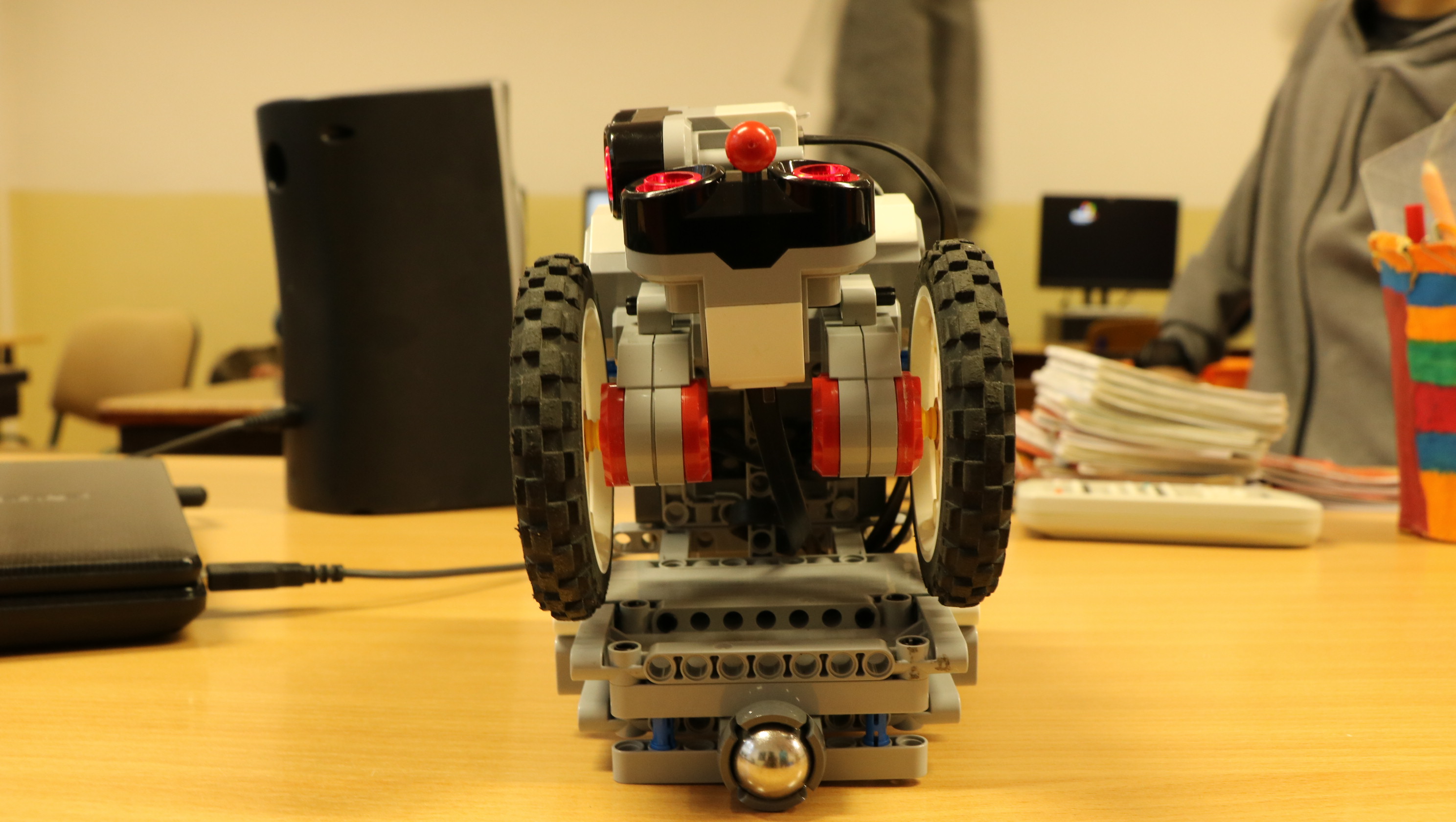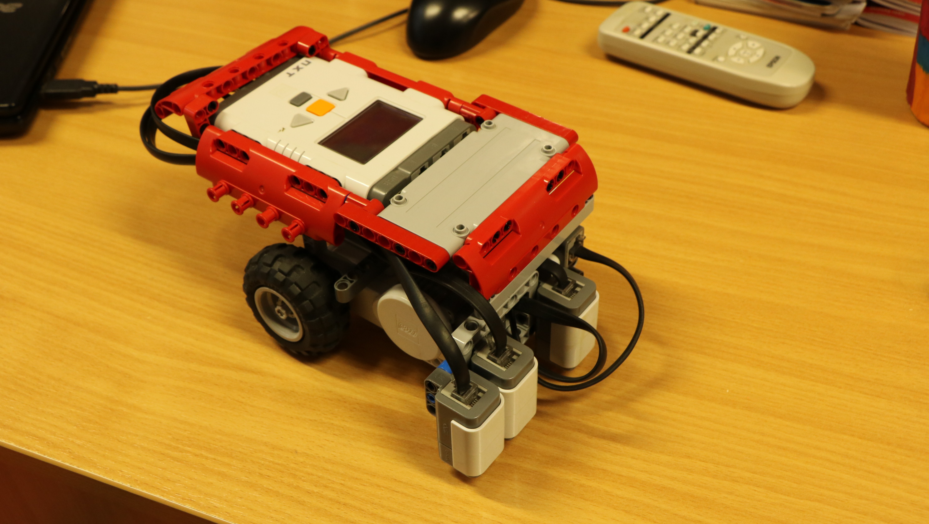 - je jednoduchej konštrukcie, ma dvojkolesový pohon so šmýkačom pri senzoroch, riadiaca jednotka NXT