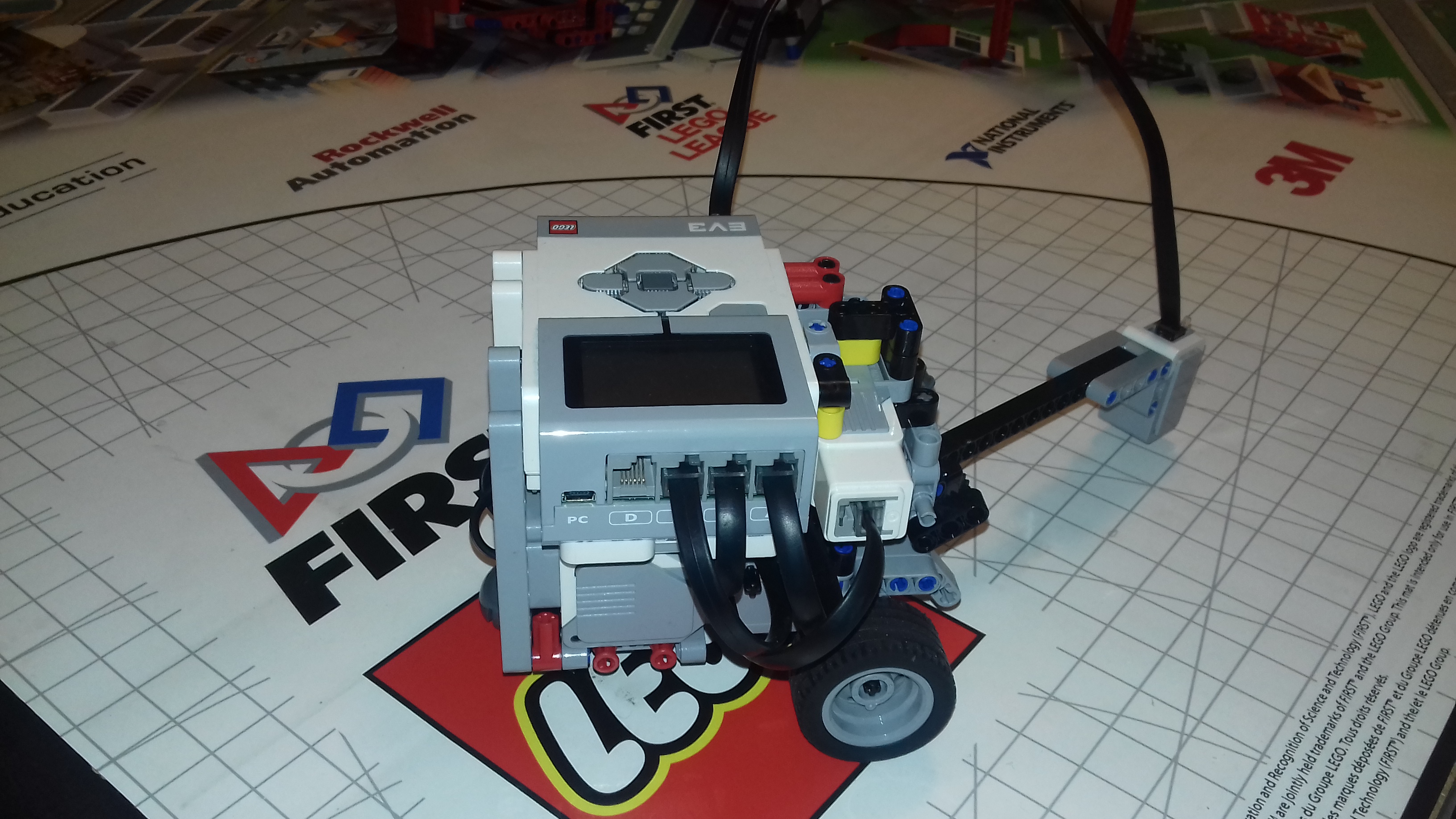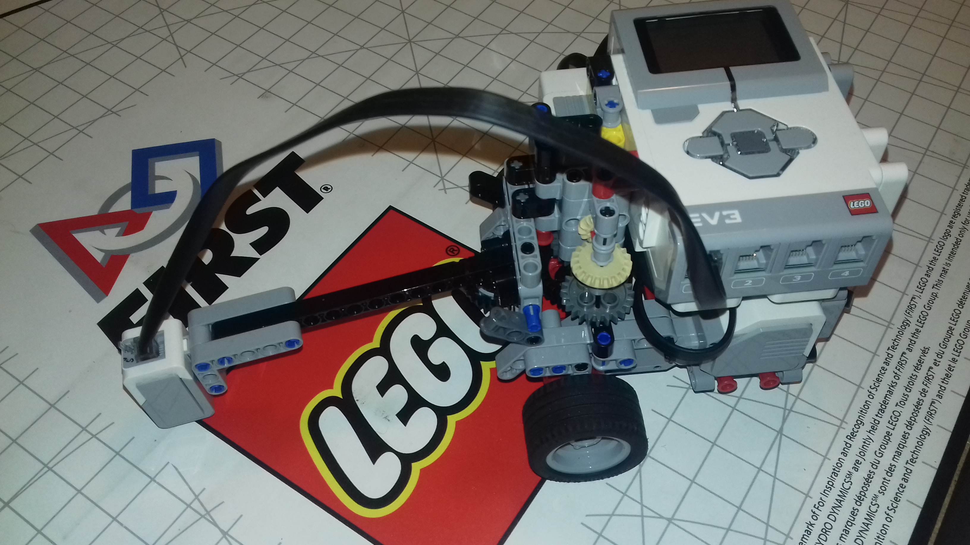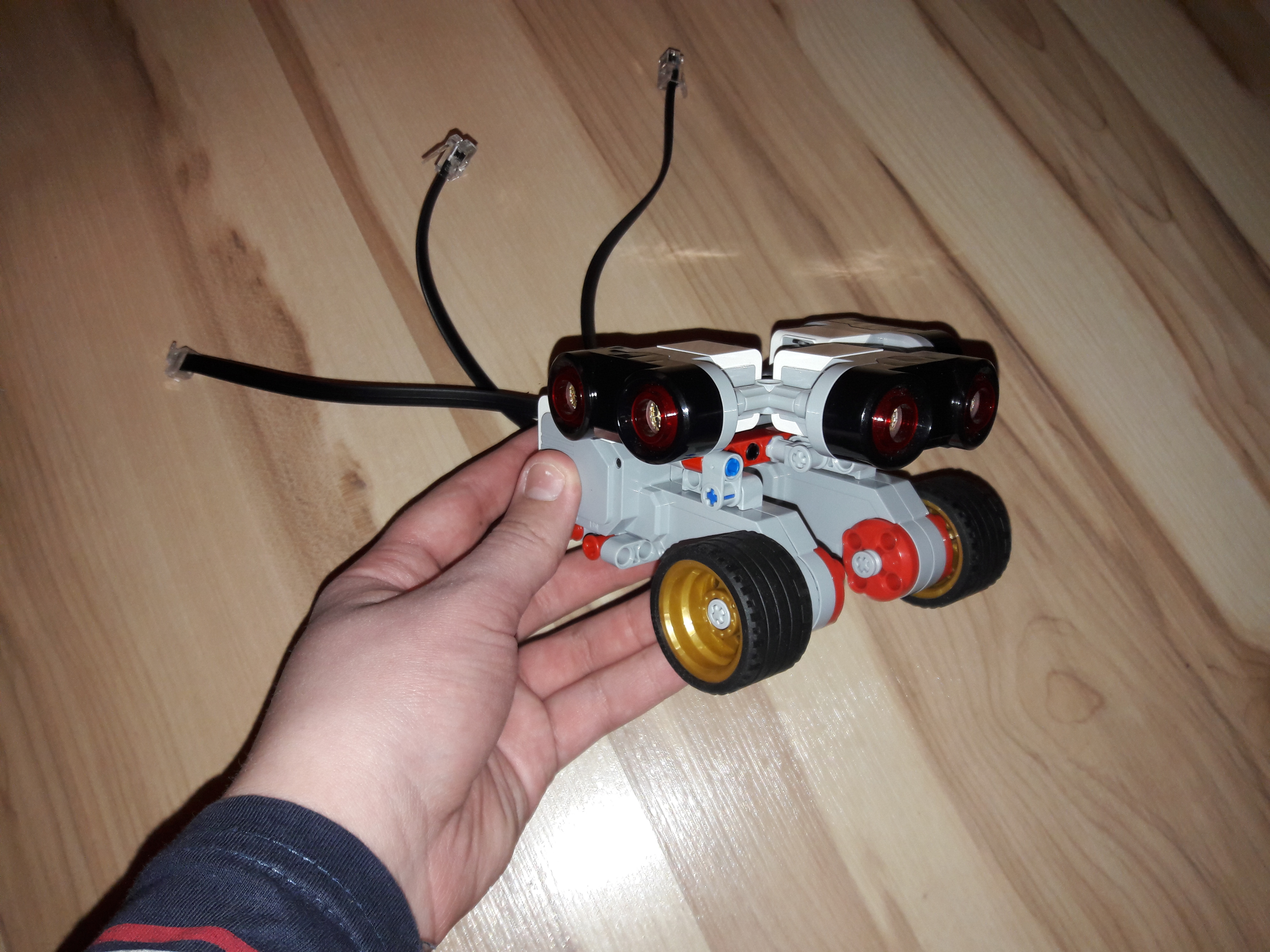 Náš robot na prehľadávanie mínového poľa, je čo najužší základný robot (dva large motory a guľôčka) s jedným ramenom,ktoré sa hýbe v polkruhu a vykonáva hľadanie. Toto rameno je pohánané cez prevod jedným meduim motorom.