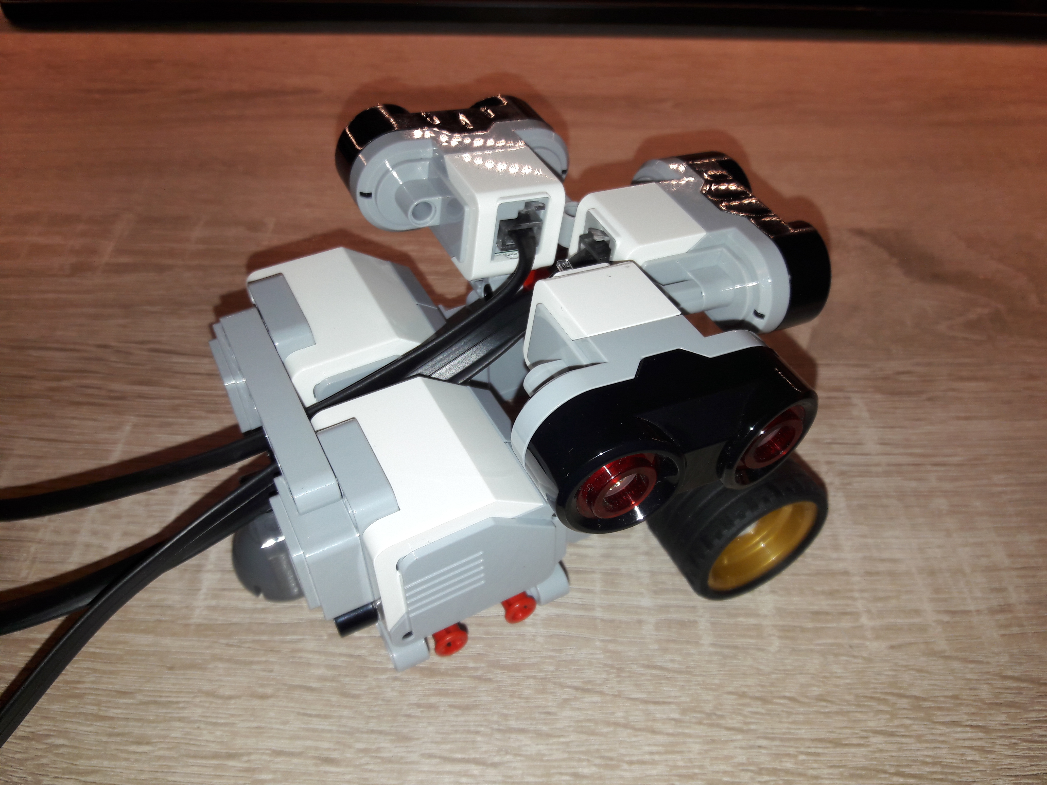 Táto úloha nás celkom zabavila.Robota sme vybavili troma ultrazvukovými sensormi. Každý je nasmerovaný na jednu stranu- doprava - rovno - doľava.Pre otáčanie sme používali gyrosensor.