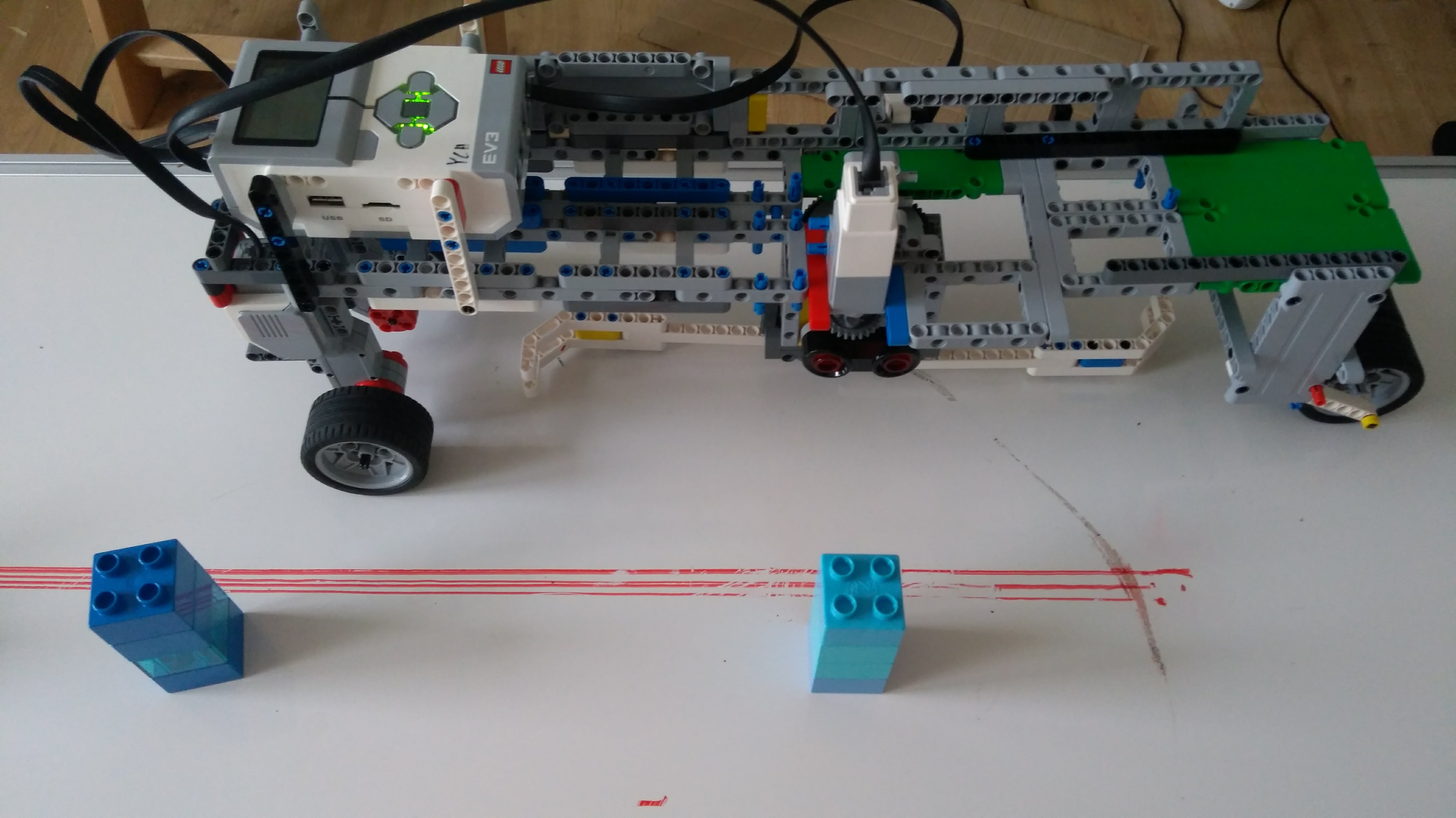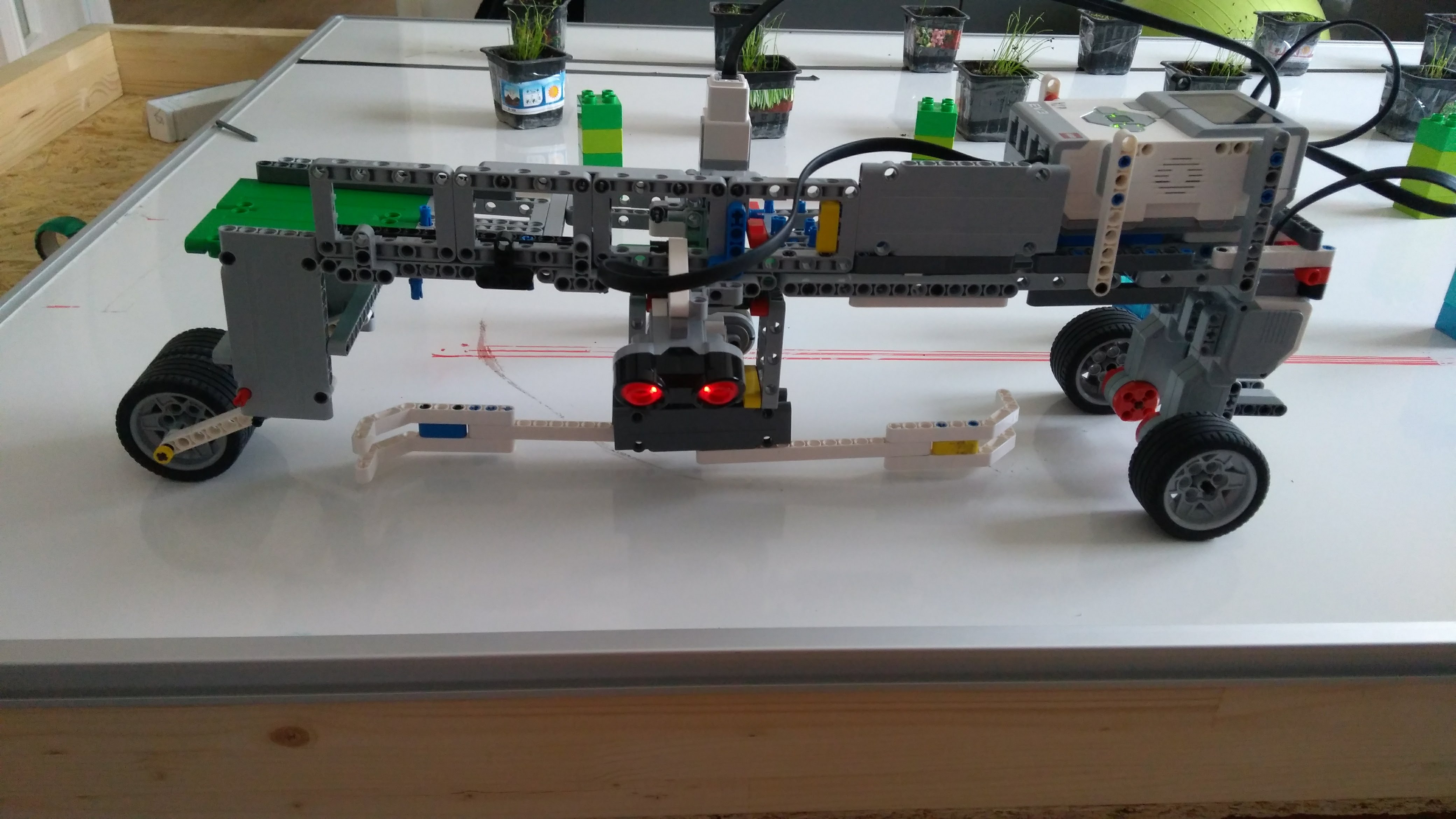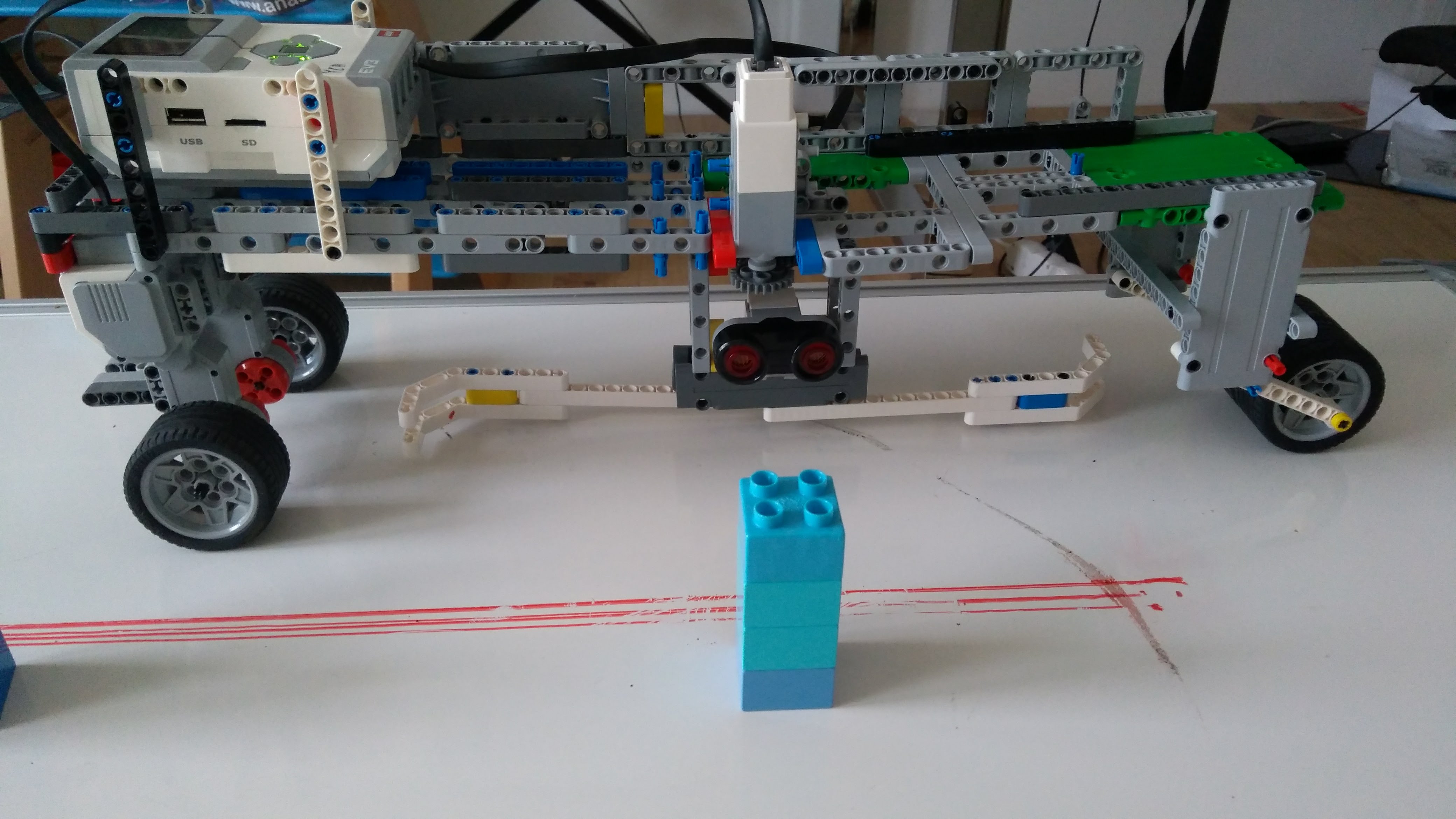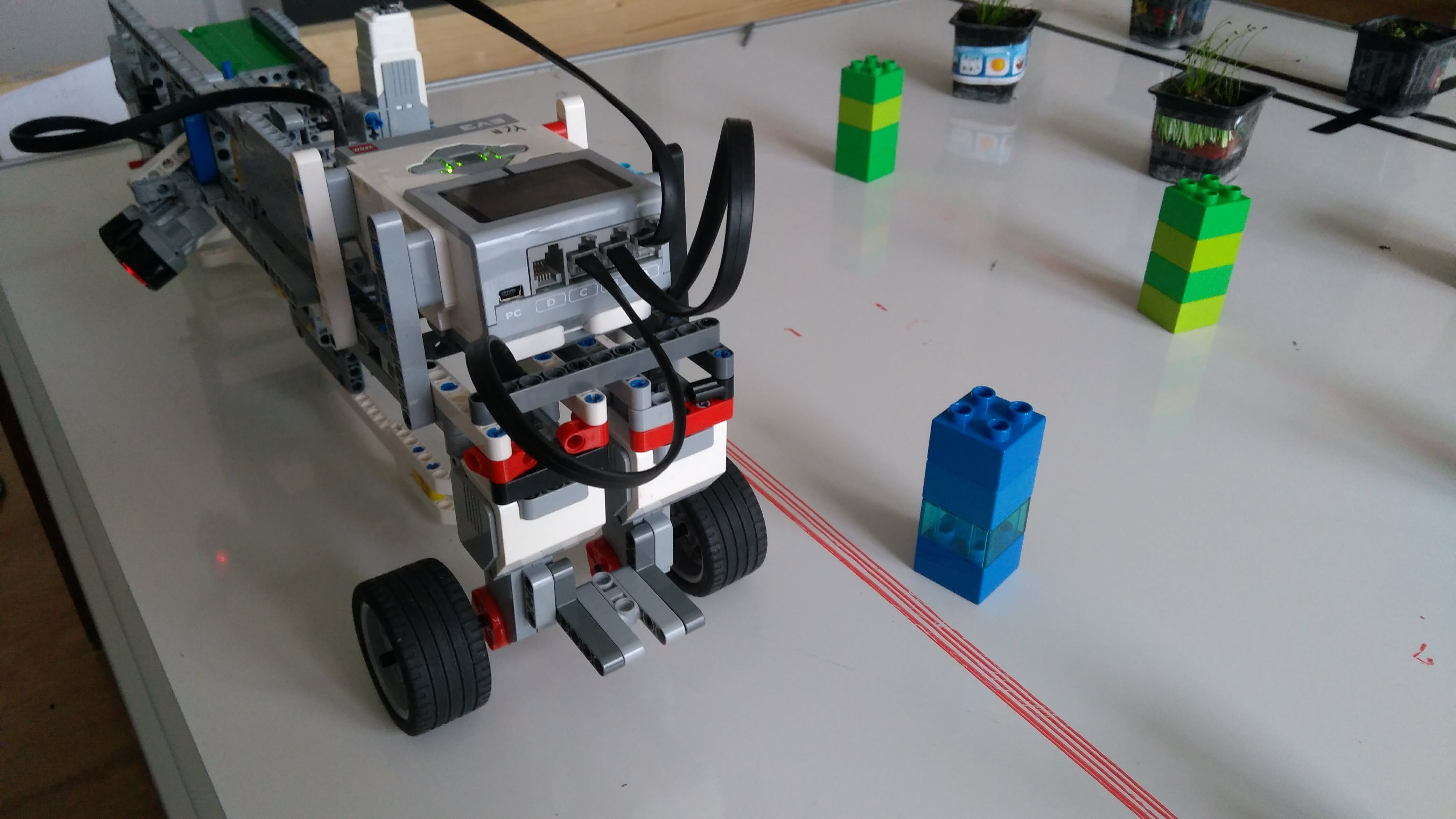 Je to jednoduchy Robot ktorého sme stihli postaviť a naprogramovať veľmi neskoro, ale nakoniec funguje!