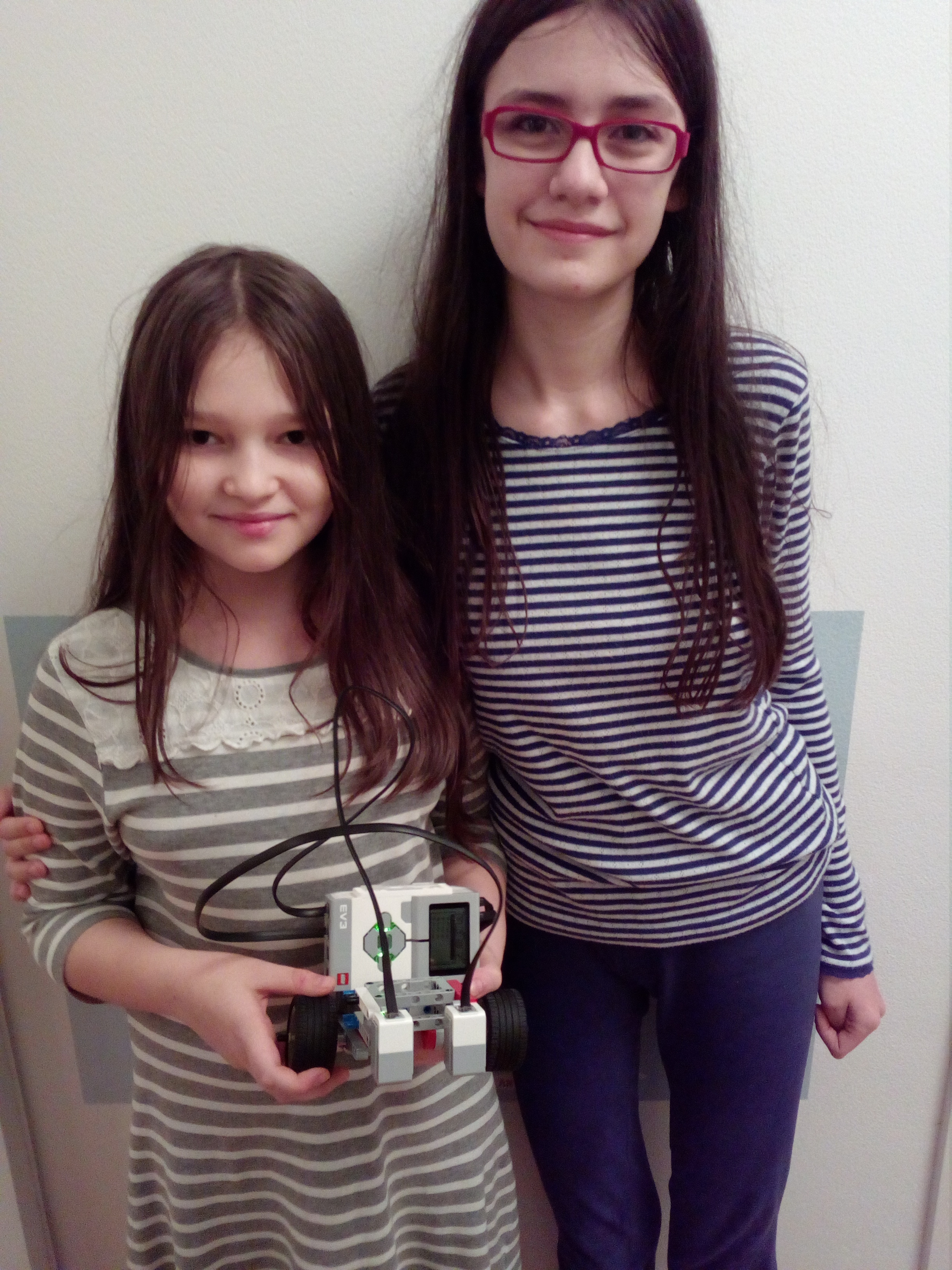 2sestry Na Vašom riešení medzi riadkami pozorujem, že niekedy dostaneme jeden nápad, ale keď sa s ním pohráme a niekoľkokrát ho ešte upravíme, tak riešenie môžeme vylepšiť k dokonalosti, hoci niekedy to na konci ten pôvodný nápad už skoro nepripomína. Možno by riešenie zvládalo nábeh aj zo šikma, ak by sa pri prvom zosnímaní čiary robot otáčal, až kým by nemal na čiare oba senzory - pritom by si ale mohol zapamätať, o aký uhol sa otočil, aby sa v prípade štvorca mohol vrátiť na rovnaké miesto, otočiť znovu do pôvodného smeru a hľadať trojuholník za štvorcom. Ďakujeme za pekné riešenie! Rozhodcovia napísali toto: 1. Za úlohu Geotermálna energia získavate 2,8b. Páči sa mi spísaný rozsiahly popis riešenia aj samotný spôsob riešenia je nezvyčajný, ale korektný. Vo videu mi chýba, čo sa stane, keď robot narazí na trojuholník napr. v uhle. 2. Vaše riešenie je trocha nejasné, ale myslím, že ste to zvládli dobre. Páči sa mi ako pekne robot zaparkuje presne do stredu, hoci by mohol byť aj rýchlejší a niektoré pohyby ste mohli vynechať. 3. Oceňujem podrobný písomný popis riešenia úlohy. Vzhľadom na trošku prispôsobené riešenie je úloha splnená do určitej miery ok.