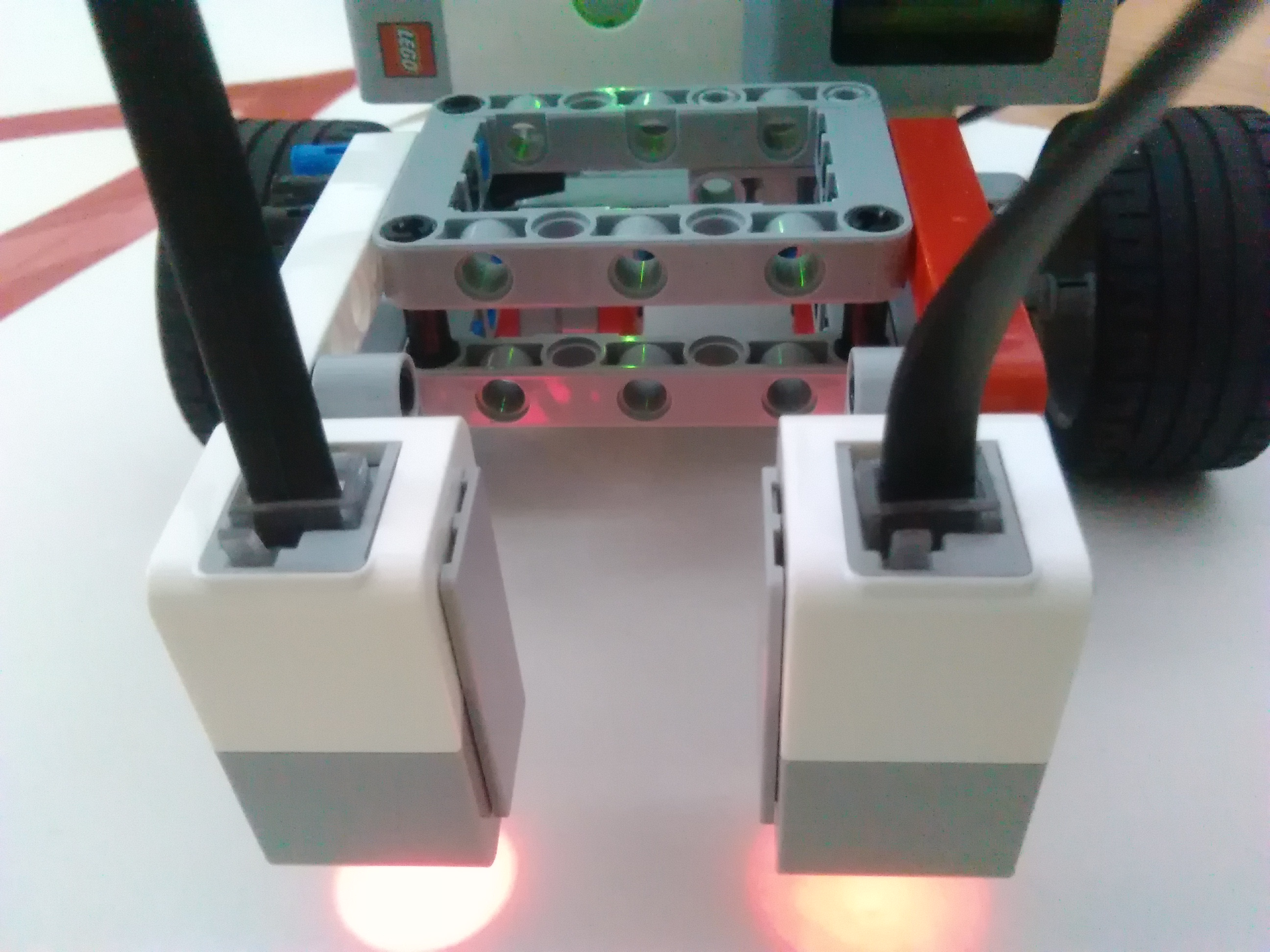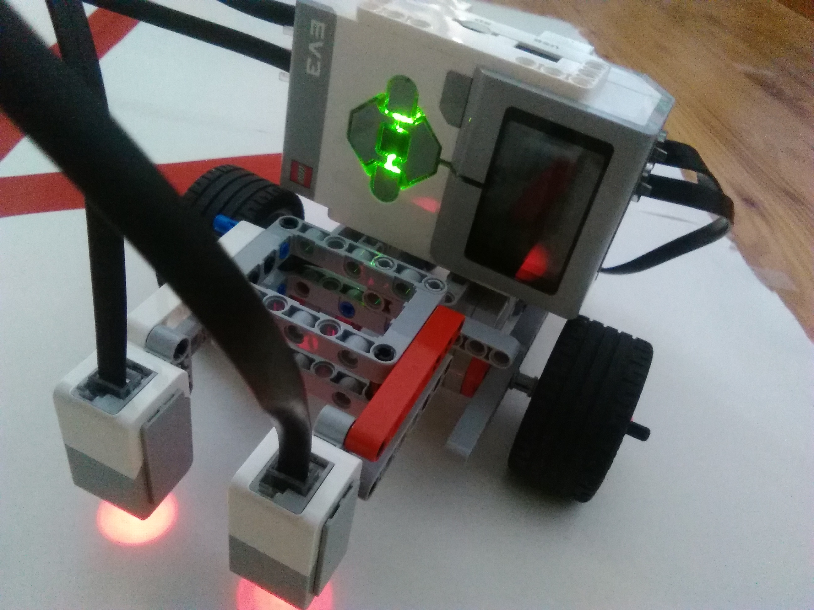 2. Mame dva color senzory, ale jeden z nich uz svieti slabsie (je starsi) a dava trochu ine hodnoty ako ten druhy - preto na rozlisenie farby povrchu pouzivame v programe inu hodnotu pri kazdom color senzore.