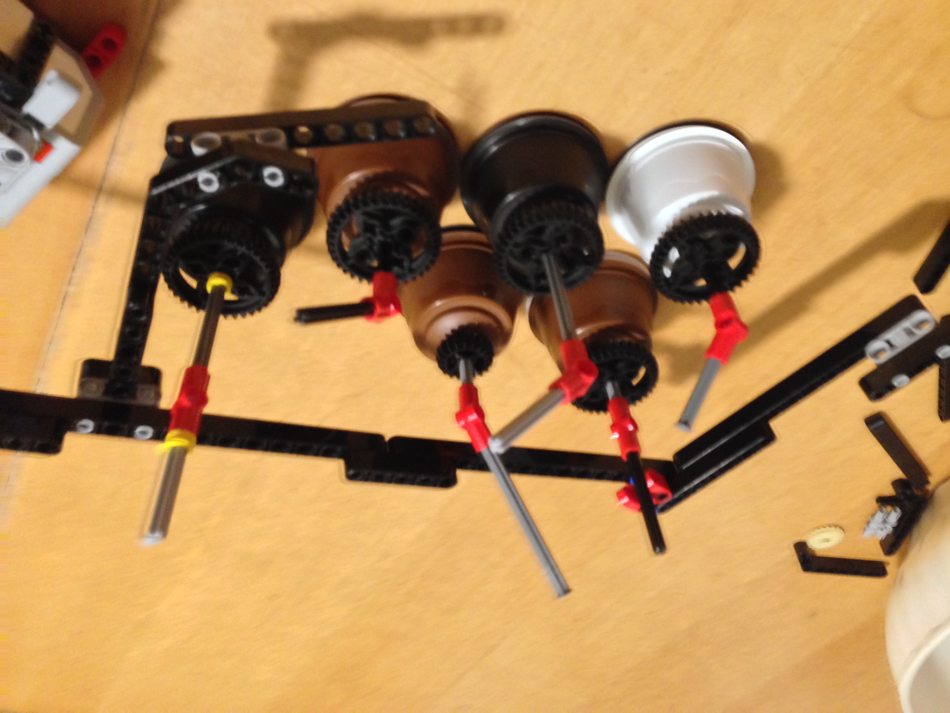 Kvetináče sú staré kapsule do kávovaru prepichnuté tičkou a na spodku podopreté veľkým kolesom pre stabilitu. Aj napriek tomu sme stabilitu kvetináčov nedosiahli.