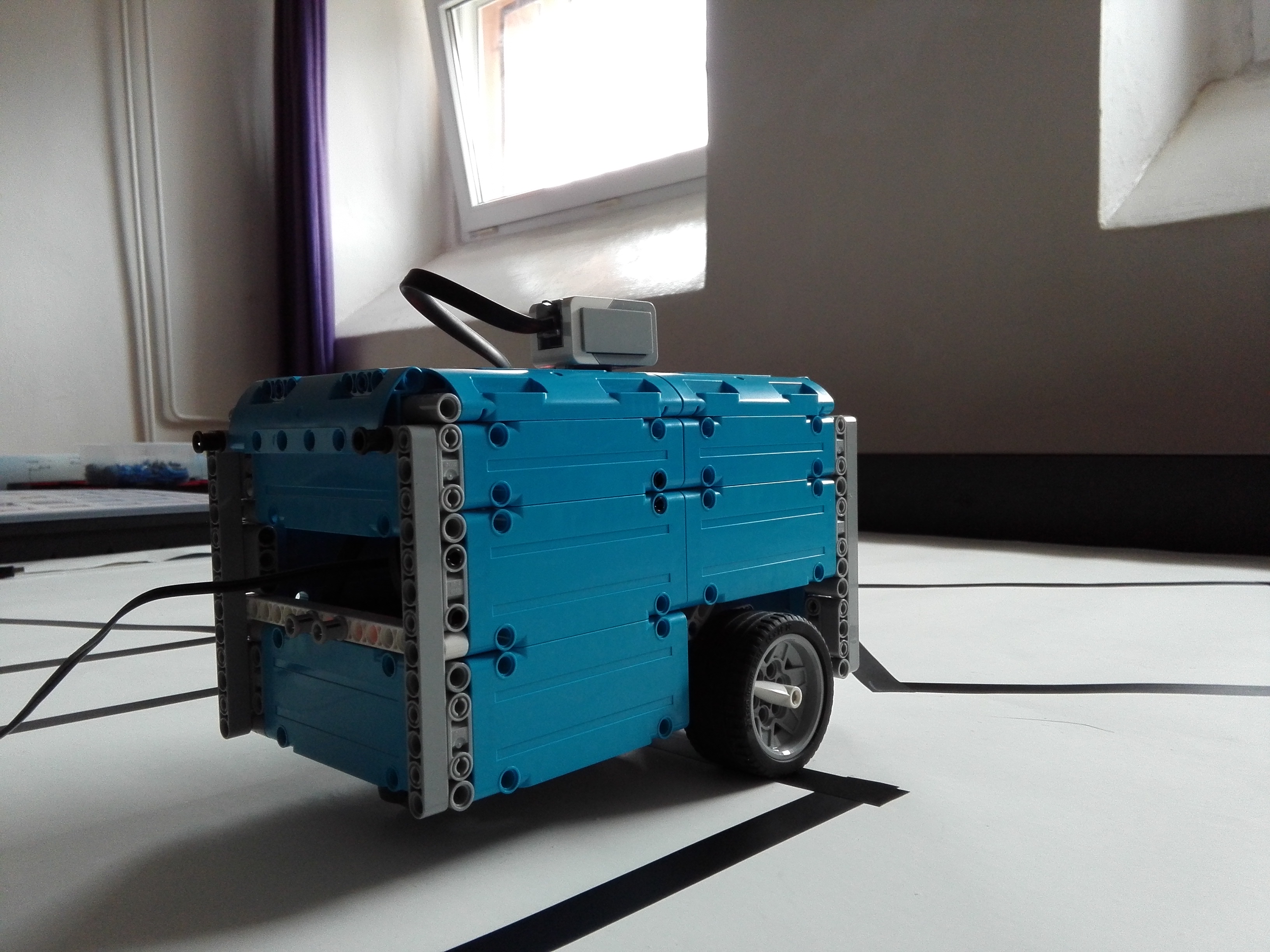 Toto je rozhodne kvalitné riešenie. Čisté sledovanie čiary, pekne poskladaný robot, dokonca aj farebne zladený a s využitím výpočtov na presné napolohovanie robota. Nie je síce celkom dokonalé, ale aj tak nás veľmi potešilo! Ďakujeme a pozdravujeme. Tu sú komentáre od rozhodcov: 1. Za úlohu Geotermálna energia získavate 2,8b. Páči sa mi spísaný popis riešenia. Vo videu mi chýba, čo sa stane, keď robot narazí najprv na pootočený štvorec a následne až na trojuholník. 2. Nerozumiem, prečo musíte robota držať na vodítku (dva vodiče). Úloha sa zdá byť splnená, ale myslím že pri trocha inom postavení by váš robot úlohu nesplnil. Asi by ste sa nemali spoliehať na to, že pozdĺž hrany štvorca prídete až k trojuholníku, mohli by ste ho ľahko minúť. 3. Pekné riešenie úlohy s dobrým spracovaním i na videu s veľmi chytľavou a príjemnou melódiou.