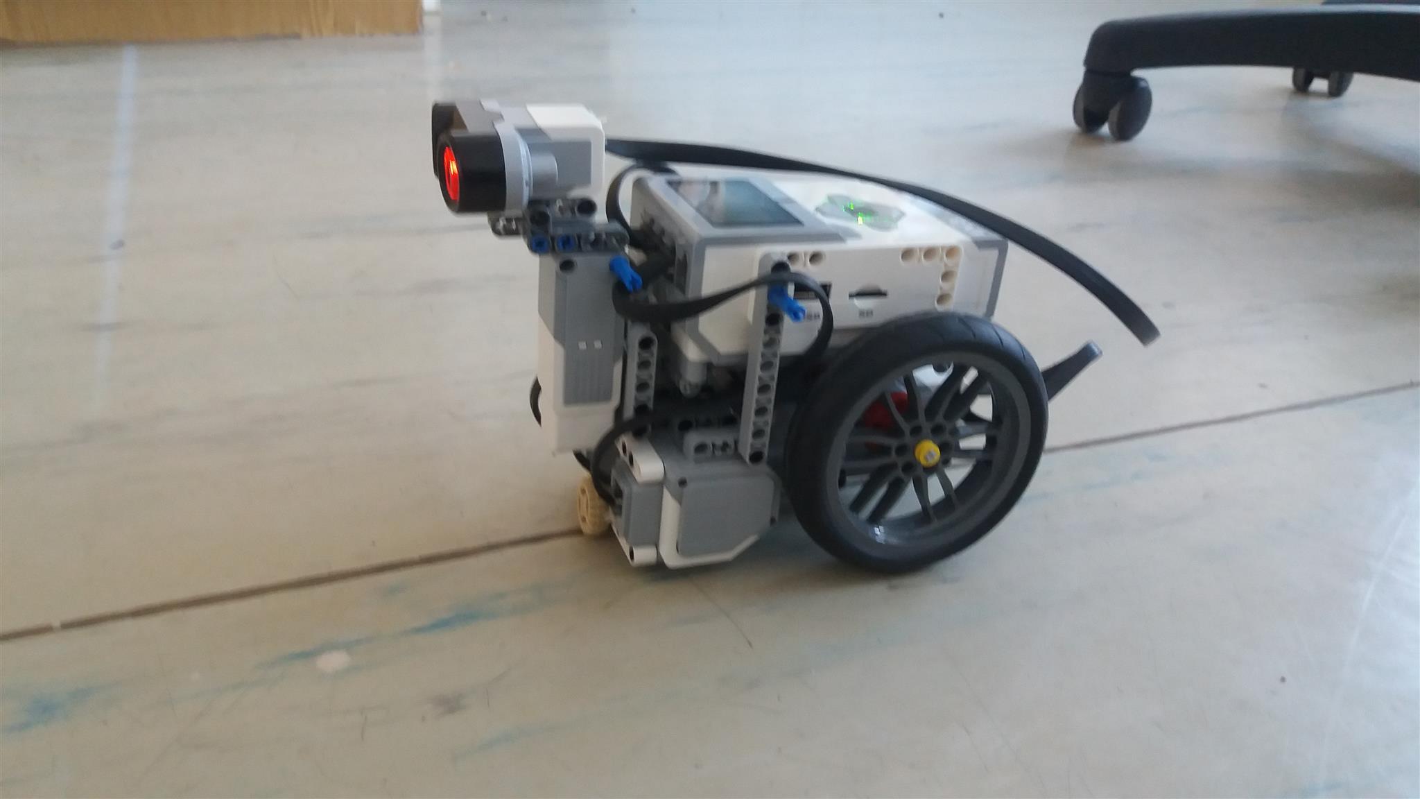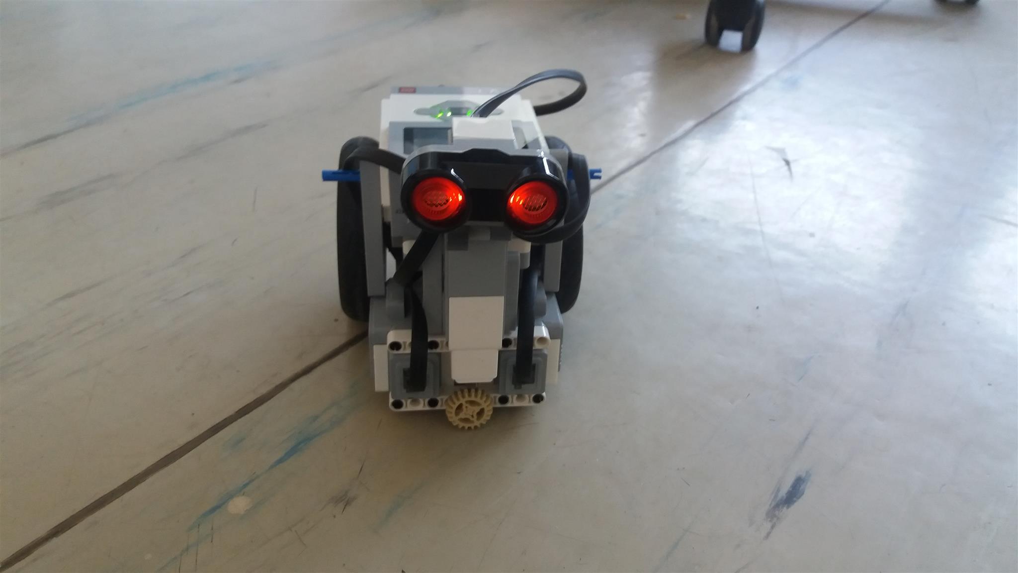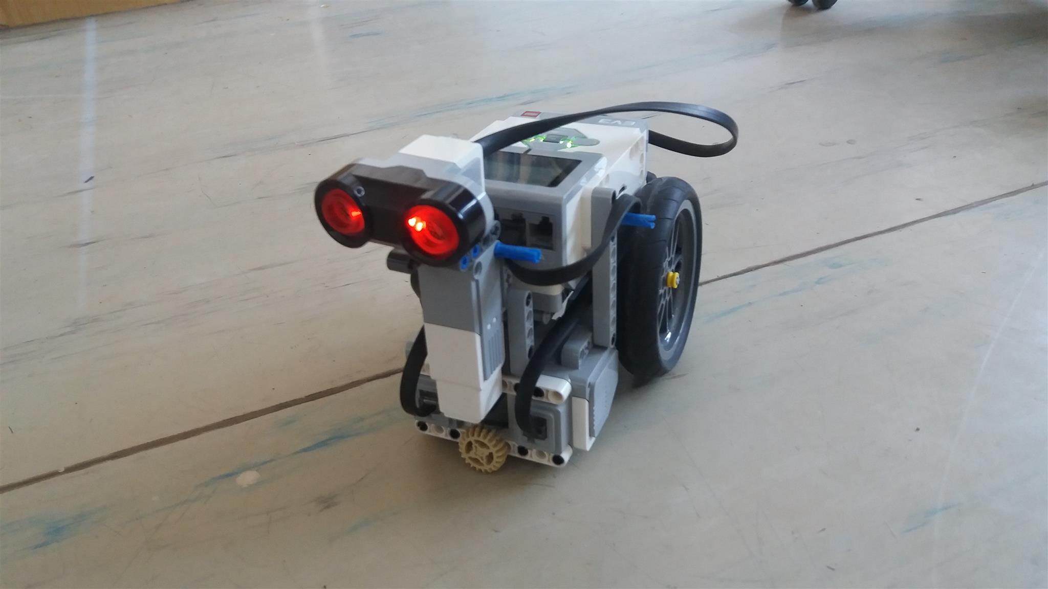 náš robot je vybavený jedným ultrasonickým senzorom, ktorý sa môže otáčať.