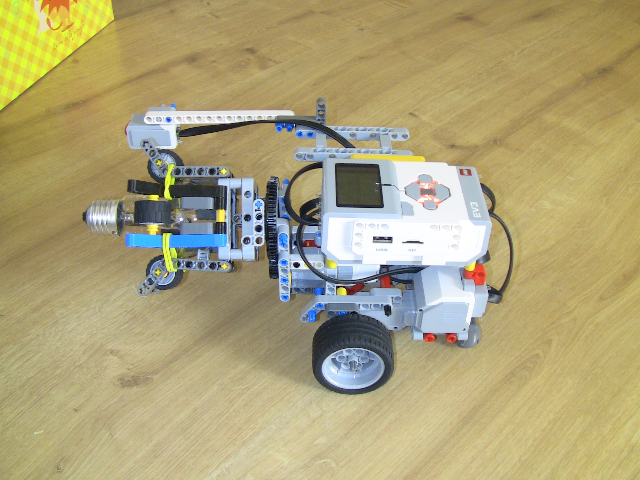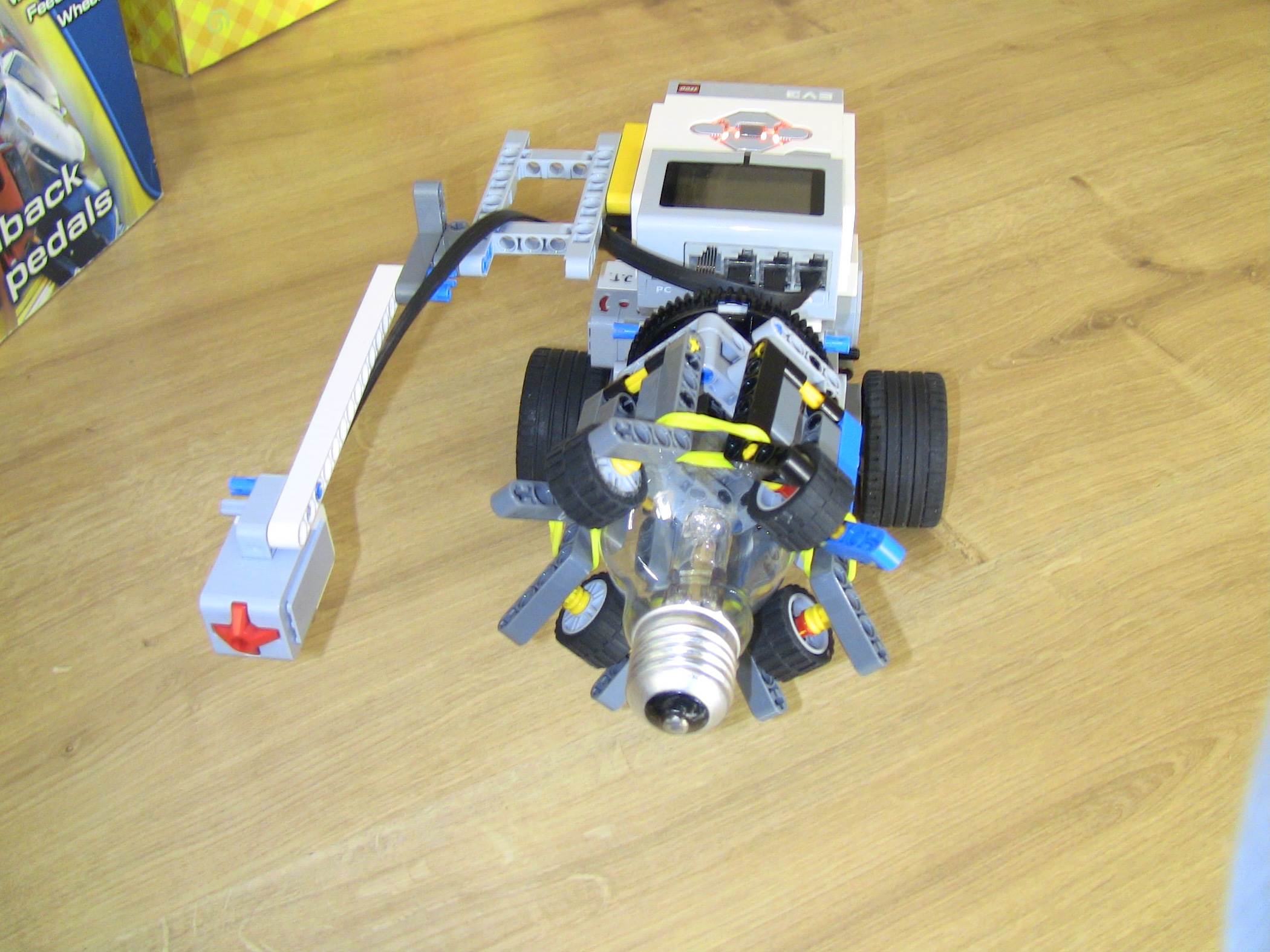 Spoločné poznámky: Viacerí sa tento raz chystali na Istrobot a tak mali časové obmedzenia ešte väčšie ako bežne. To nevadí, my sme iba liga a hodnotíme a máme radosť i z čiastočných riešení. :-) Úloha bola náročná, ale taká zo života. Myslím, že má veľký potenciál a dúfam, že sa k nej aspoň niektorí ešte vrátite, keď budete mať viac času. Ja určite áno, robot by mohol vedieť robiť rôzne veci - vymieňať žiarovky, skrutkovať, vŕtať, keď mu do ruky dáte vŕtačku, pečiatkovať a ktovie čo ešte. Už si predstavujem také jedno kolo FLL, ktoré by bolo celkom iné ako ostatné, kde by súťažiaci na svojho robota dávali nielen LEGO-vé doplnky, ale ešte by mu dali aj nejaký pracovný nástroj a robot by vyštartoval po stole a riešil by rozličné úlohy - tu niečo vyvŕtať, tu vymeniť skrutku, tam vymeniť žiarovku, prepnúť istič, ktorý vyletel, niekde prepojiť káble a podobne... To by bolo! :-) Trochu sa to podobá na kategóriu RoboCup@Work. YourChoice: Ďakujeme, chápadlo je skvelé, senzory máme radi! Rozhodcovia: 1. Za úlohu Výmena žiarovky získavate 2,1b. Páči sa mi, že ste boli kreatívni a vymysleli bočné uchytenie žiarovky. Robot bez problémov uchytil žiarovku a vyskrutkoval. Škoda, že ste nemali čas aj na zvyšok riešenia. 2. Je to také nedokončené riešenie, mali ste tú žiarovku aj zaskrutkovať, nielen vybrať. 3. Nevadí, ak je program jednoduchý, menší problém vidím skôr v tom, že ste žiarovku len vyšraubovali, ale nenašraubovali naspäť.