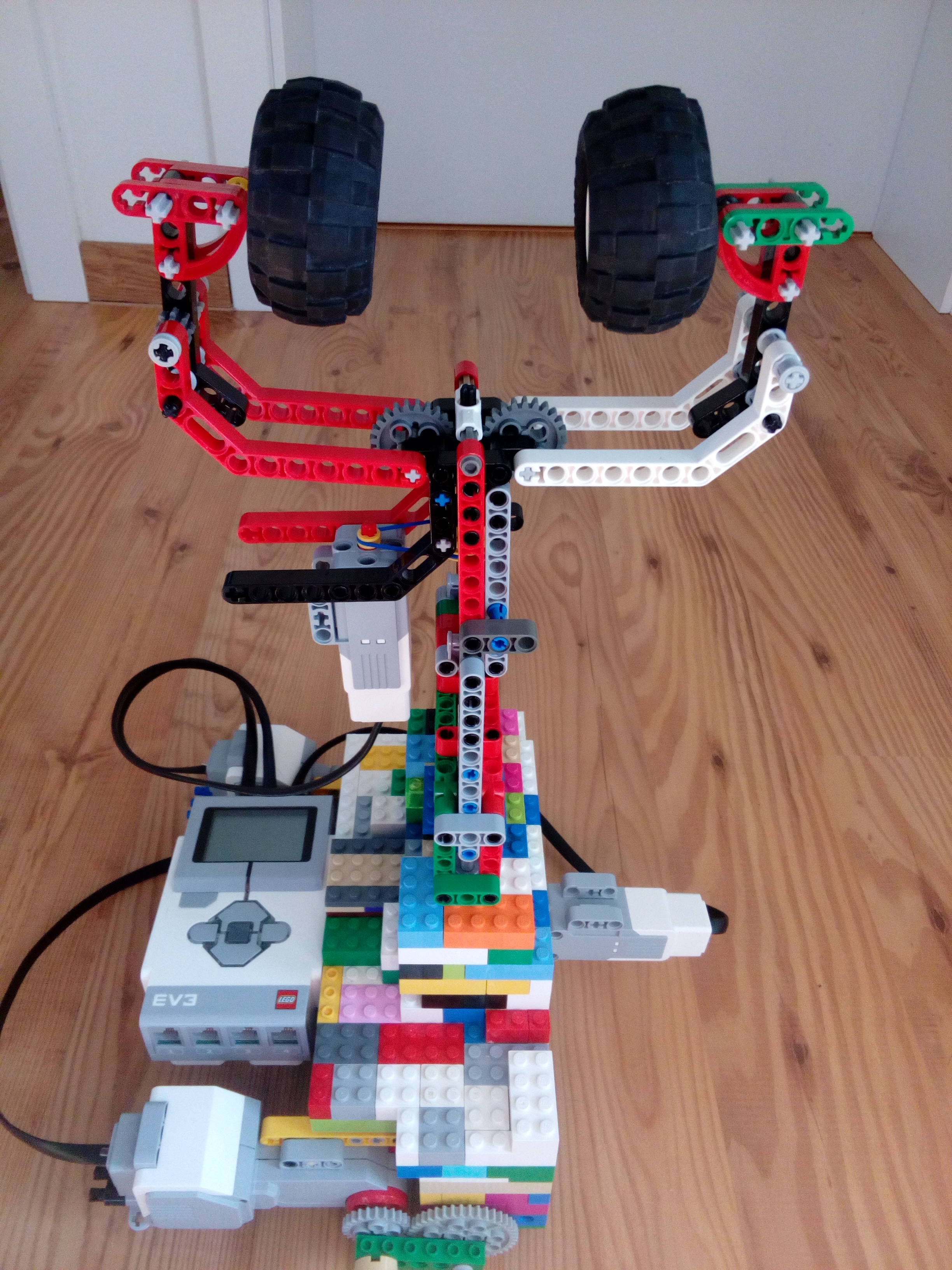 tento robot je postaveny z lego power functions setu a ovladany SBrick kockou koli nedostatku Eve3 suprav.