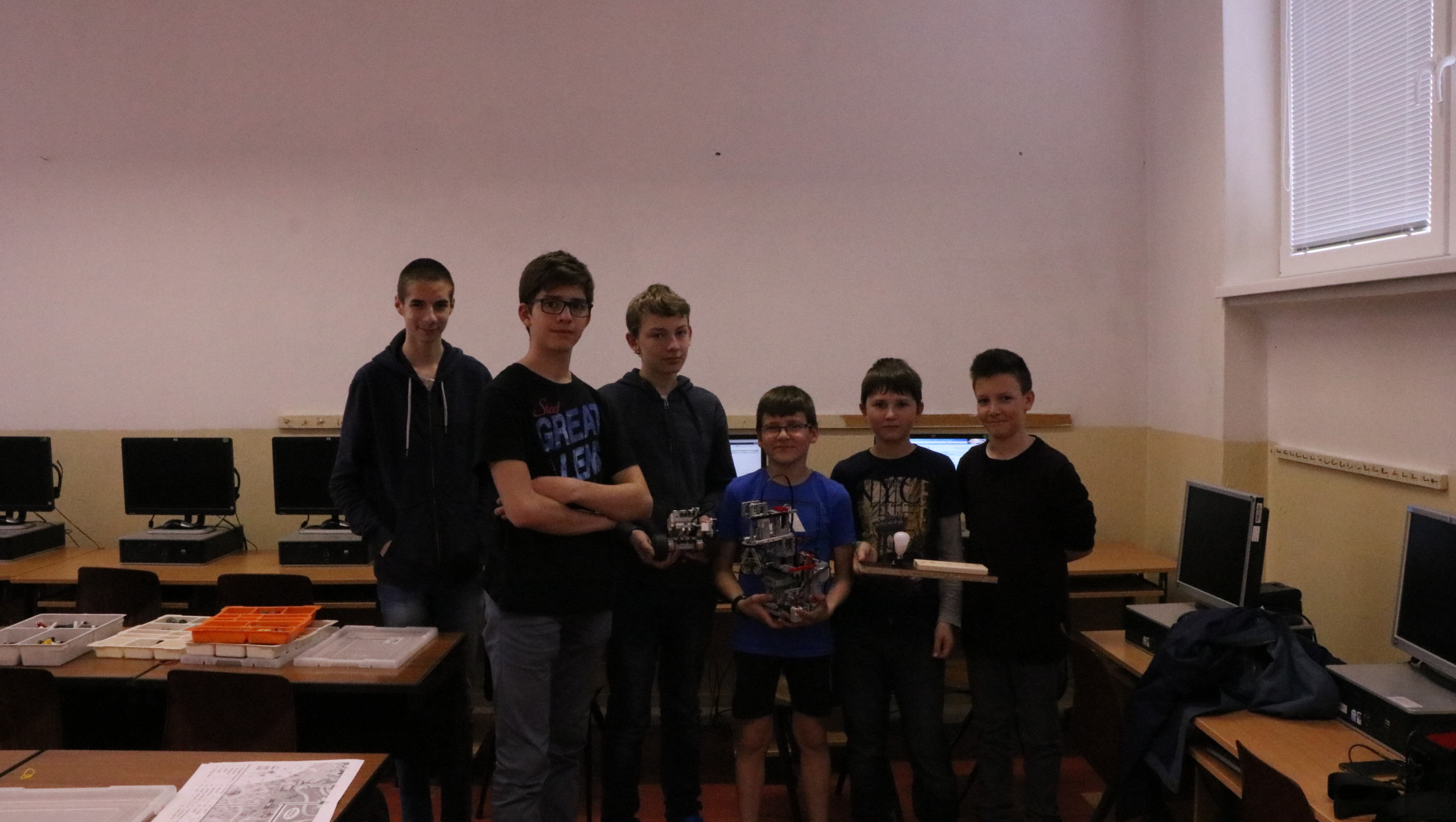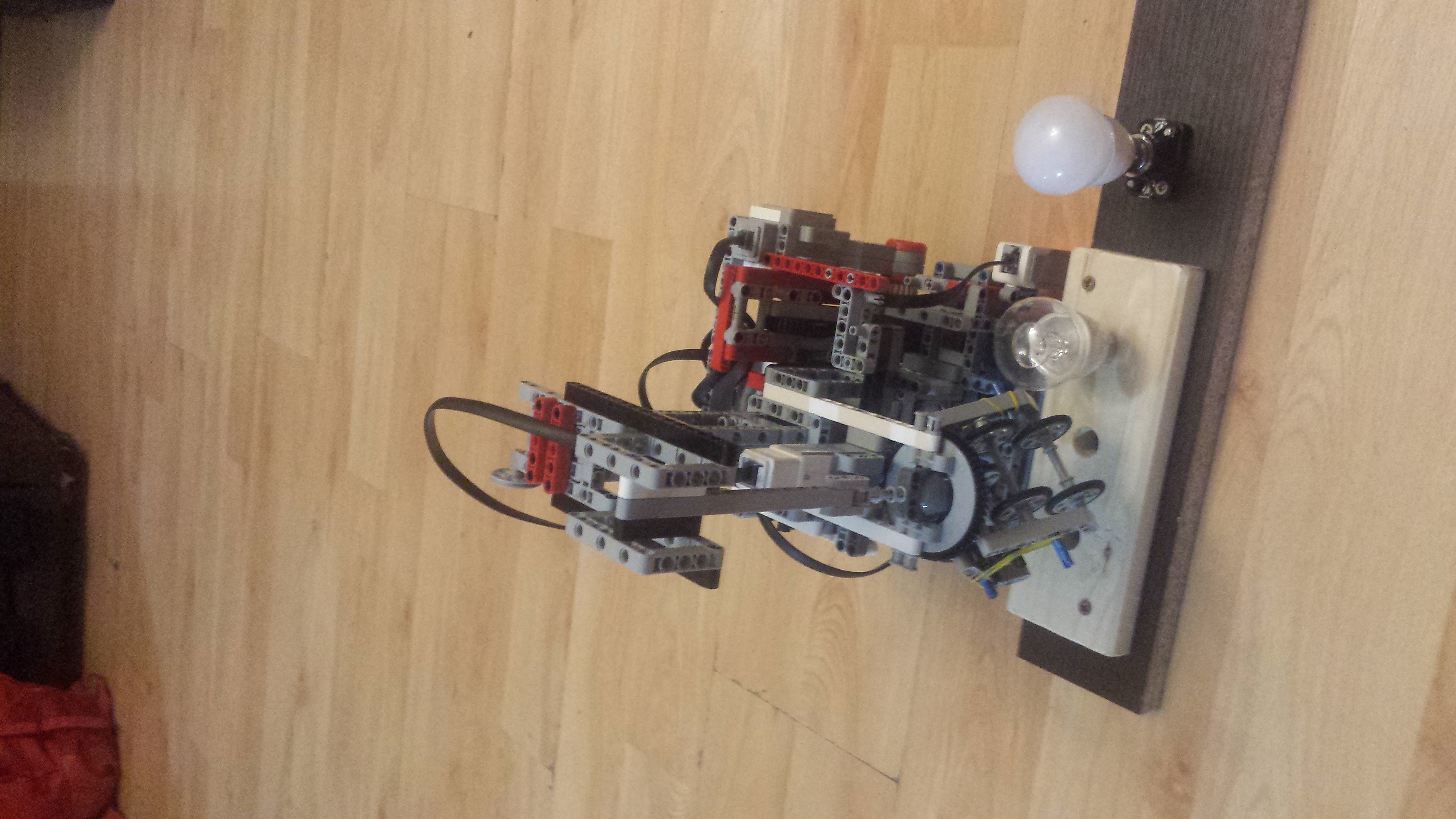 Spoločné poznámky: Viacerí sa tento raz chystali na Istrobot a tak mali časové obmedzenia ešte väčšie ako bežne. To nevadí, my sme iba liga a hodnotíme a máme radosť i z čiastočných riešení. :-) Úloha bola náročná, ale taká zo života. Myslím, že má veľký potenciál a dúfam, že sa k nej aspoň niektorí ešte vrátite, keď budete mať viac času. Ja určite áno, robot by mohol vedieť robiť rôzne veci - vymieňať žiarovky, skrutkovať, vŕtať, keď mu do ruky dáte vŕtačku, pečiatkovať a ktovie čo ešte. Už si predstavujem také jedno kolo FLL, ktoré by bolo celkom iné ako ostatné, kde by súťažiaci na svojho robota dávali nielen LEGO-vé doplnky, ale ešte by mu dali aj nejaký pracovný nástroj a robot by vyštartoval po stole a riešil by rozličné úlohy - tu niečo vyvŕtať, tu vymeniť skrutku, tam vymeniť žiarovku, prepnúť istič, ktorý vyletel, niekde prepojiť káble a podobne... To by bolo! :-) Trochu sa to podobá na kategóriu RoboCup@Work. LEGOLAS: milí súťažiaci, Vy definujete nový štandard. Zatiaľ každé kolo profesionálne zvládnuté. Napriek tomu si neodpustím zamyslenie, či u toho prezidenta je všetko falošné, keď aj lampu má falošnú :-). No, aby sme si rozumeli, tým som samozrejme nechcel povedať, že by ste to svojím riešením nejak naznačovali. :-) Tak, či onak, Vaše riešenie sa rozhodcom páčilo takto: 1. Za úlohu Výmena žiarovky získavate 3b. Je vidieť, že na úlohe ste si dali záležať. Vyrobili ste si držiak na žiarovky a úlohu ste dokonale premysleli a vyriešili. 2. Veľmi sa mi páči vaše riešenie, pretože ste naozaj celý problém vyriešili komplexne, vrátane skutočnej výmeny žiarovky, hoci ste si aj pomohli zásobníkom. Takto by to naozaj mohlo fungovať, páči sa mi aj chápadlo na žiarovku. 3. Super konštrukcia, aj prevedenie bez potreby ľudského zasahovania. Chválim.