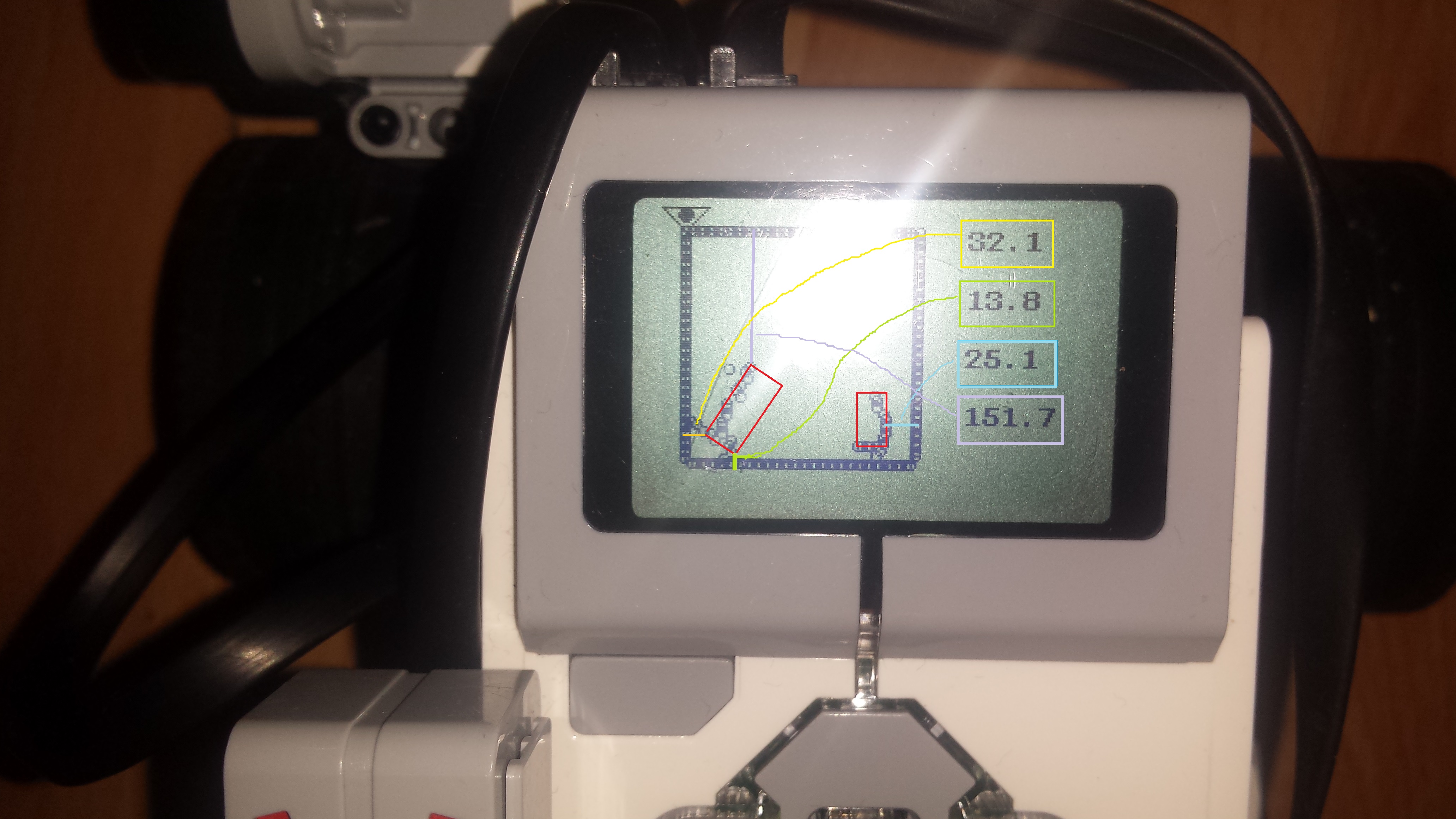 - najprv si skontrolujeme gyro (ak drži nulovú hodnotu je všetko ok. inak robota stopneme)