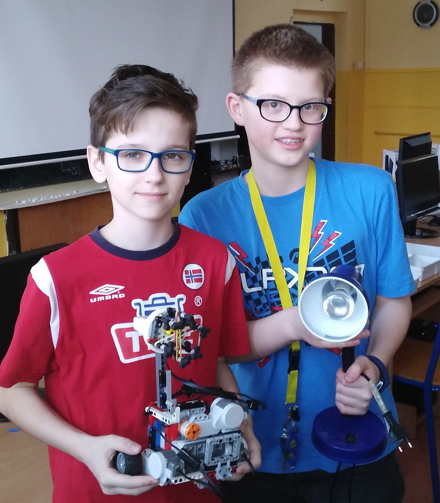 Spoločné poznámky: Viacerí sa tento raz chystali na Istrobot a tak mali časové obmedzenia ešte väčšie ako bežne. To nevadí, my sme iba liga a hodnotíme a máme radosť i z čiastočných riešení. :-) Úloha bola náročná, ale taká zo života. Myslím, že má veľký potenciál a dúfam, že sa k nej aspoň niektorí ešte vrátite, keď budete mať viac času. Ja určite áno, robot by mohol vedieť robiť rôzne veci - vymieňať žiarovky, skrutkovať, vŕtať, keď mu do ruky dáte vŕtačku, pečiatkovať a ktovie čo ešte. Už si predstavujem také jedno kolo FLL, ktoré by bolo celkom iné ako ostatné, kde by súťažiaci na svojho robota dávali nielen LEGO-vé doplnky, ale ešte by mu dali aj nejaký pracovný nástroj a robot by vyštartoval po stole a riešil by rozličné úlohy - tu niečo vyvŕtať, tu vymeniť skrutku, tam vymeniť žiarovku, prepnúť istič, ktorý vyletel, niekde prepojiť káble a podobne... To by bolo! :-) Trochu sa to podobá na kategóriu RoboCup@Work. Šachisti: fajn. Nabudúce, keď budete natáčať video, tak snímajte prosím na šírku, nie na výšku a čo najmenej traste kamerou. :-) Pekne a kompaktne ste primontovali na robota tretí motor aj so spomaľovacím prevodom, aj keď takto asi nevidno veľmi dobre na displej a ťažko sa dostanete ku tlačidlam na riadiacej jednotke. Som rád, že ste sa s touto úlohou takto popasovali. Tu sú hodnotenia rozhodcov: 1. Za úlohu Výmena žiarovky získavate 3b. Riešenie síce nie je najdokonalejšie, ale účel je splnený. Robot nemá problém prísť k lampe, odmontovať si žiarovku a namontovať druhú. Páči sa mi aj hudobný podmas vo videu :) 2. Ste jeden z mála tímov, ktorí aj vyskúšali, či robot žiarovku vymenil správne. K dokonalosti mi chýba len to, aby po výmene aj odjachal a neostal prisatý na žiarovku. 3. Super, že ste zaznamenali niekoľko rozdielnych pokusov. Nabudúce skúste o niečo menej hýbať kamerou, obraz tak bude menej roztrasený. Výmena prebehla bez závažných komplikácií, avšak nebola tam robotom zrealizovaná úplná výmena žiarovky za novú, preto mierny bodový zraz.