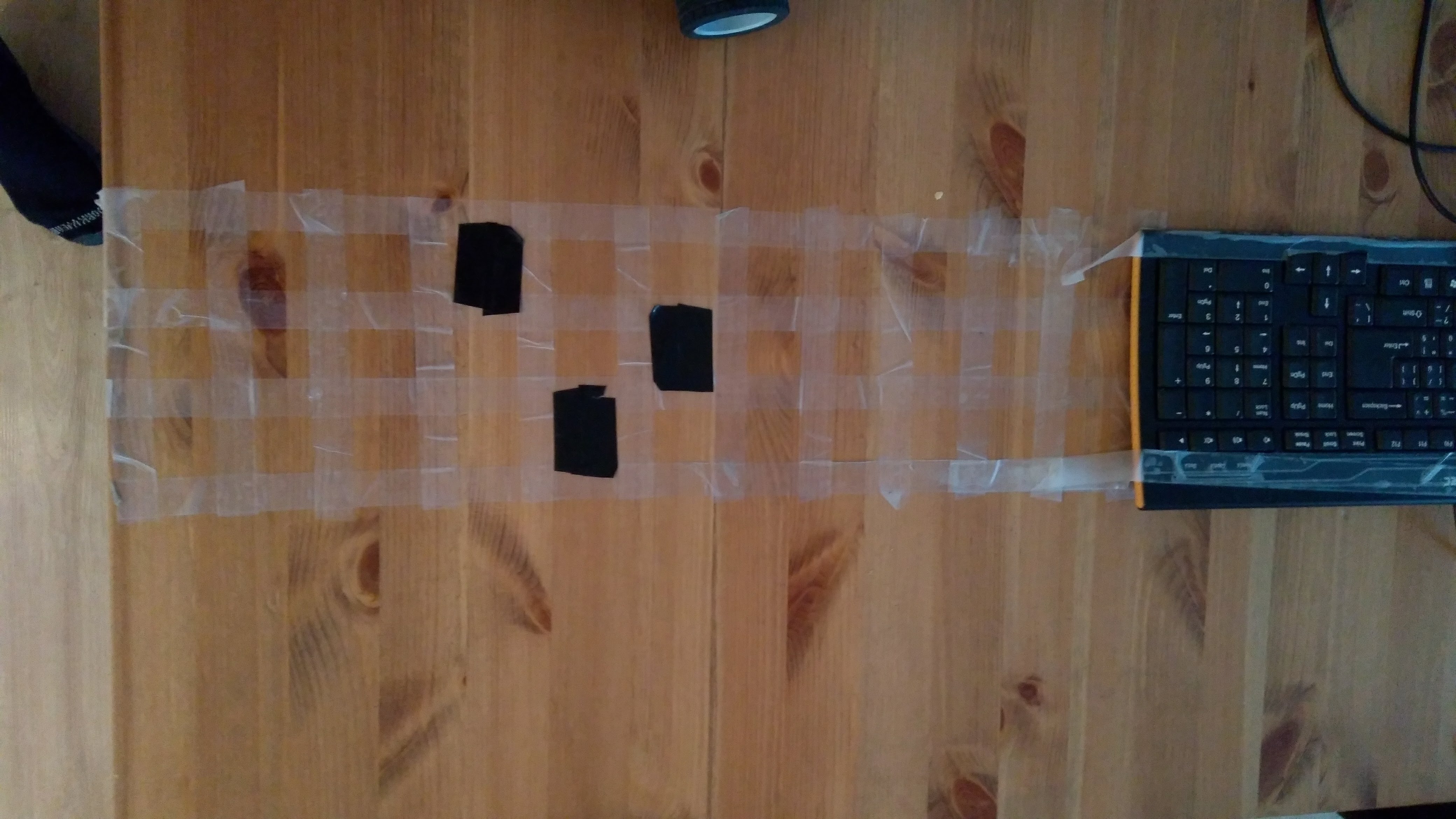Robot načítava čísla zakodované na stole, Pozícia čiernej pásky od štartu zodpovedá čislici. Tri stlpce reprezentuju 3 cifry, a miesta 0 az 9 znamenajú čislicu.