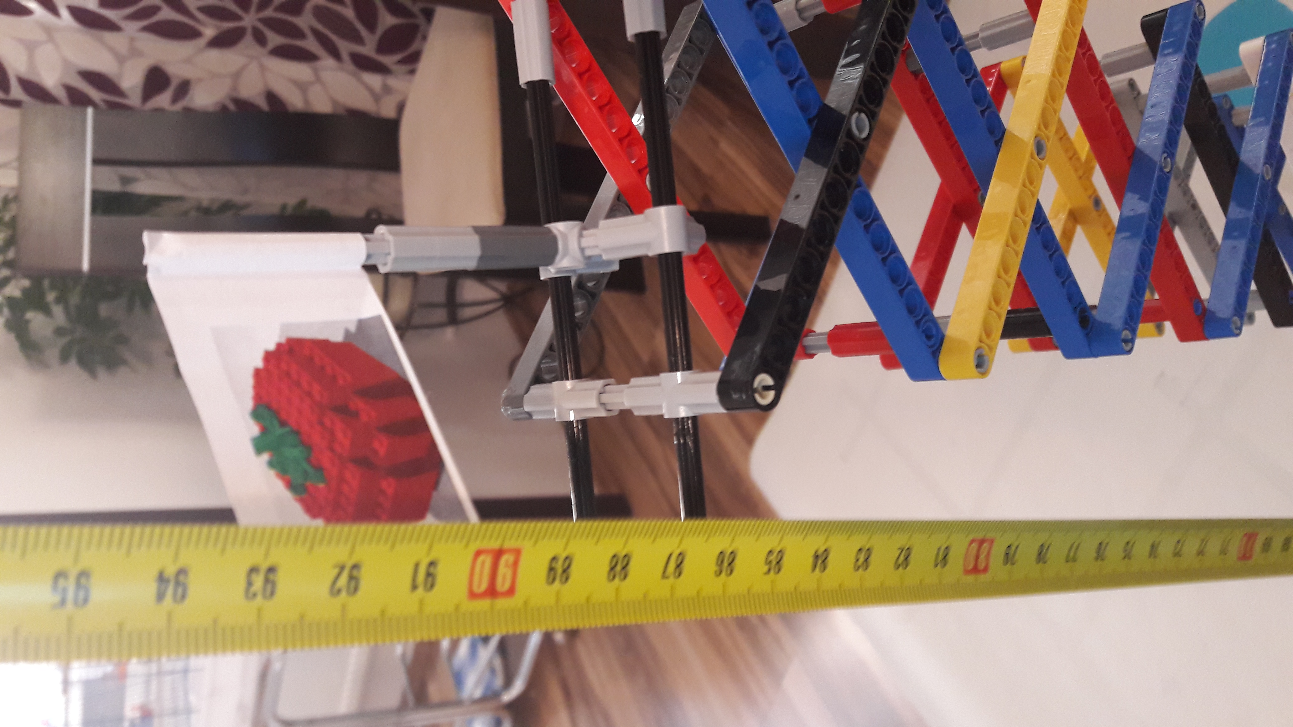 Naša vlajka je "LEGO-TOMATO". Výška, ktorú sme si doma pri skúšaní namerali je 93 cm.