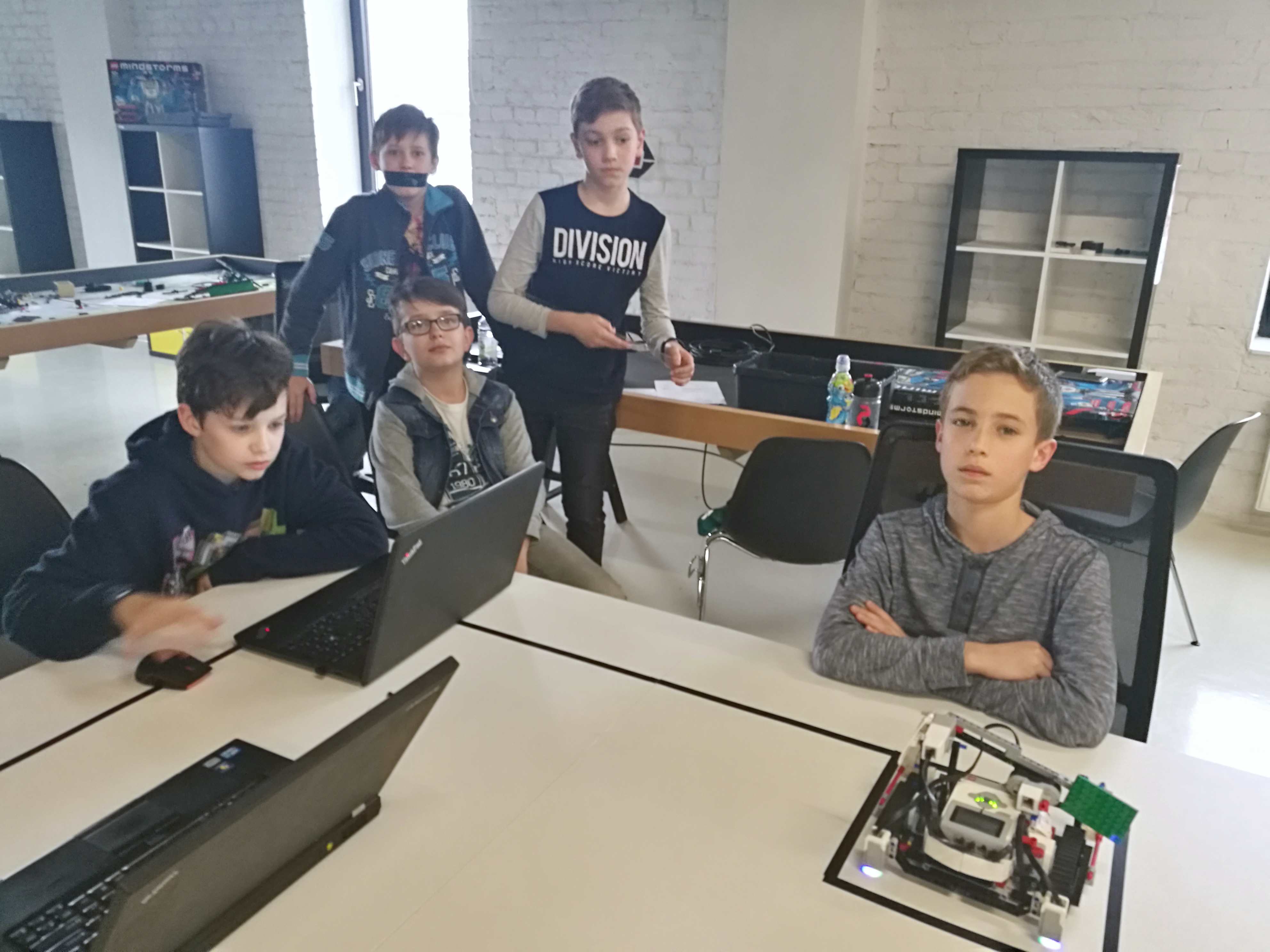 Robot chodí vo vesmíre , ktorý je ohraničený čiernou páskou. Ak zistí hranicu s niektorým farebným senzorom, otočí sa preč od tej hranice. Pokračuje ďalej pokiaľ nenájde červenú planétu Mars. Ak nájde Mars, trochu sa ešte pohne, aby bol na ňom celou plochou a potom vztýči vlajku. Výška našej vlajky je 31cm.